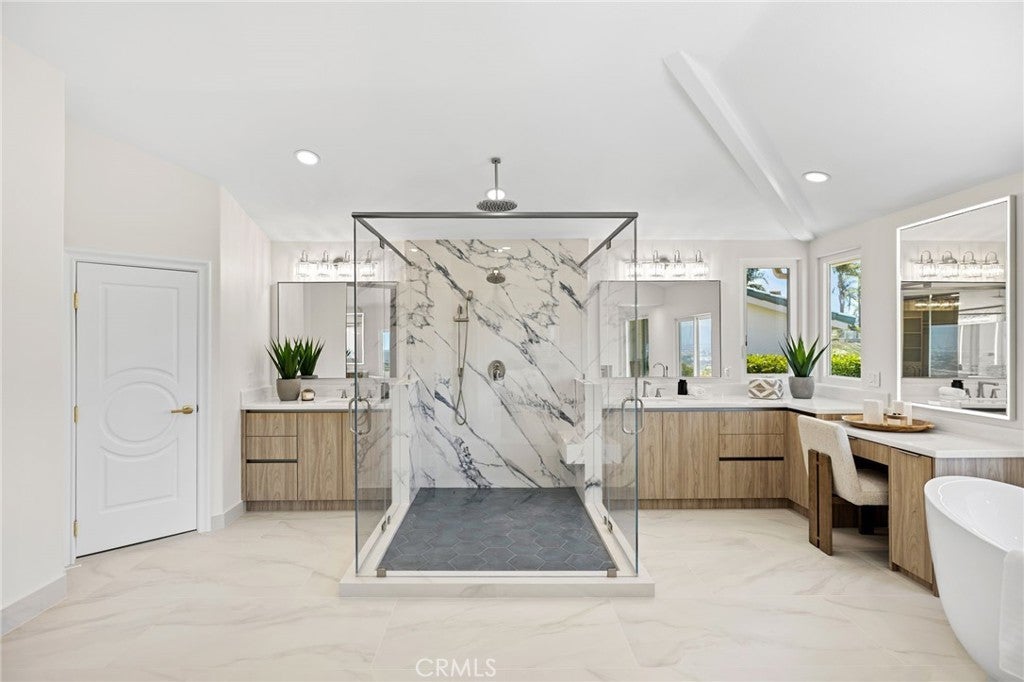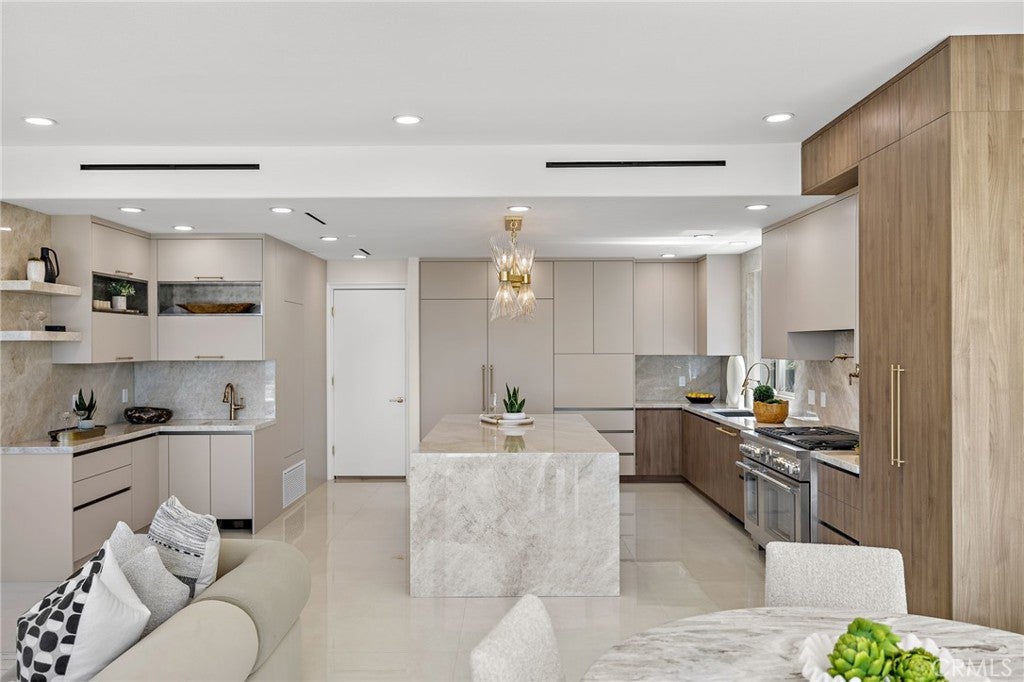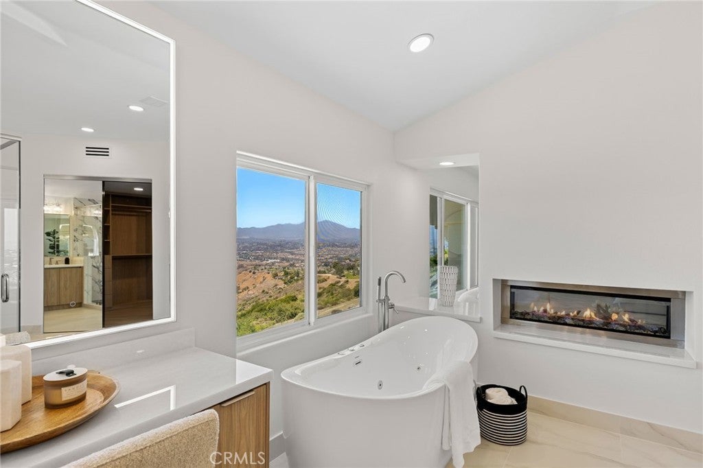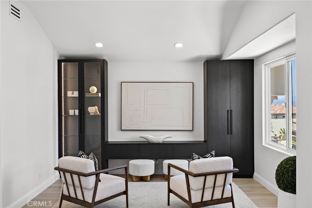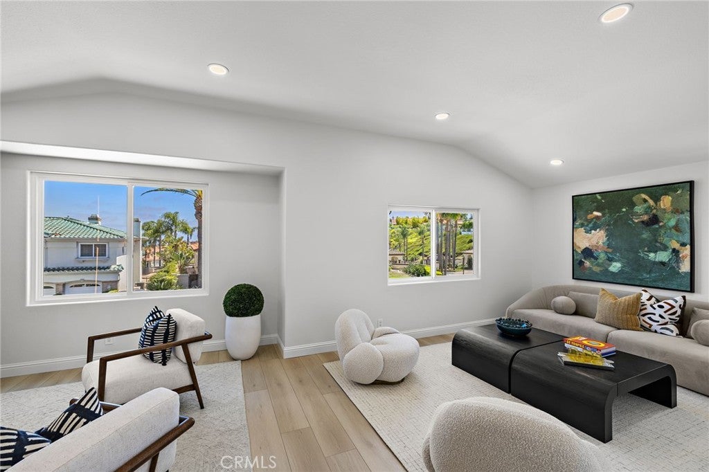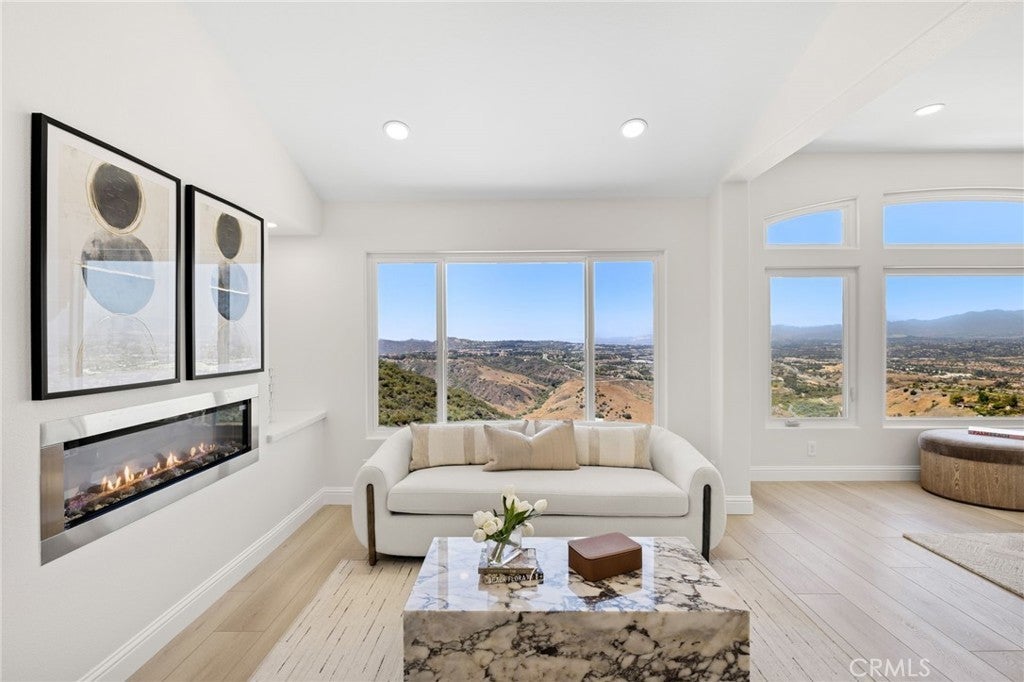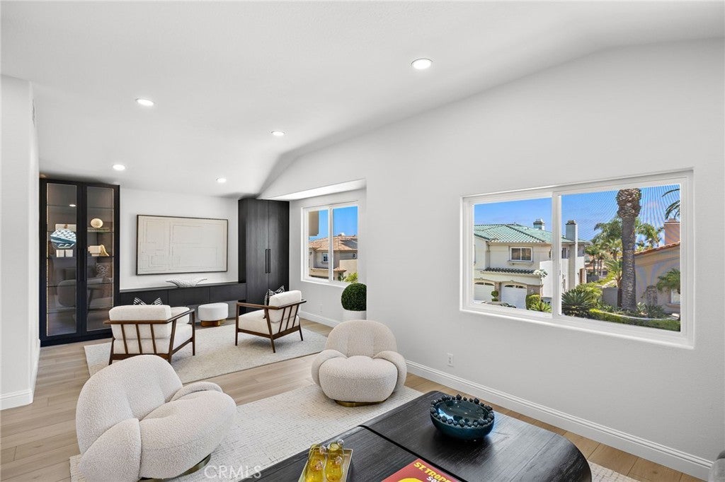 Refined Coastal Living in Guard-Gated Palmilla, Laguna Niguel Commanding a premier front-row position in the prestigious guard-gated enclave of Palmilla, this newly reimagined semi-custom estate offers a rare opportunity to experience elevated living in the coveted heights of Niguel Summit. Encompassing approximately 4,431 square feet on a generous 8,500 square foot lot, this distinguished residence features 4 ensuite bedrooms, 4.5 baths, and sweeping panoramic views of Saddleback Mountain, enhanced by cool ocean breezes from nearby Laguna Beach. An impressive arrival begins at the 12-foot custom iron entry doors, opening into a voluminous interior defined by 18-foot ceilings, Spanish tile flooring, and dramatic floor-to-ceiling windows that flood the home with natural light while framing tranquil city and mountain vistas. The flowing floor plan connects formal and casual spaces with effortless elegance. Anchoring the main living area is a contemporary smart fireplace, seamlessly adjoining a designer chef’s kitchen appointed with bespoke Italian cabinetry, Taj Mahal quartz countertops, Thermador appliances, and Italian lighting. Wellness and function converge at the sink with an instant hot water tap and reverse osmosis filtration system. A full ensuite bedroom on the main level offers ideal accommodations for guests or multi-generational living. French doors invite you outdoors to a private and professionally landscaped backyard, thoughtfully enhanced with new pavers and abundant space for alfresco dining and entertaining. Ascending a staircase finished in custom redwood, the upper level reveals three additional ensuite bedrooms and a versatile bonus room, ideal as a home office, media lounge, or fitness studio. The expansive primary suite captures dazzling city light views and features a serene sitting area with a dual-sided smart fireplace, shared with the spa-inspired primary bath—complete with heated porcelain floors, Italian cabinetry, designer lighting, and a custom built-in wardrobe. Additional enhancements include new HVAC systems, updated plumbing and electrical, dual-pane energy-efficient windows, epoxy-coated garage flooring, and smooth stucco exterior finish. Situated minutes from renowned beaches, scenic trails, top-tier schools, and upscale dining and boutiques, this exceptional residence combines the finest in luxury design, modern comfort, and coastal California living.