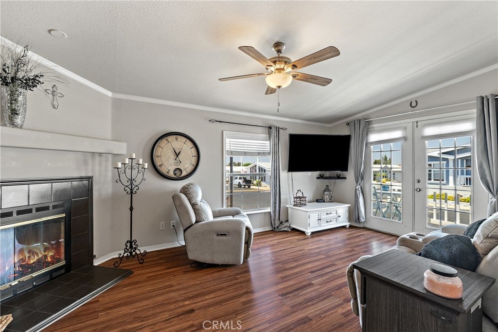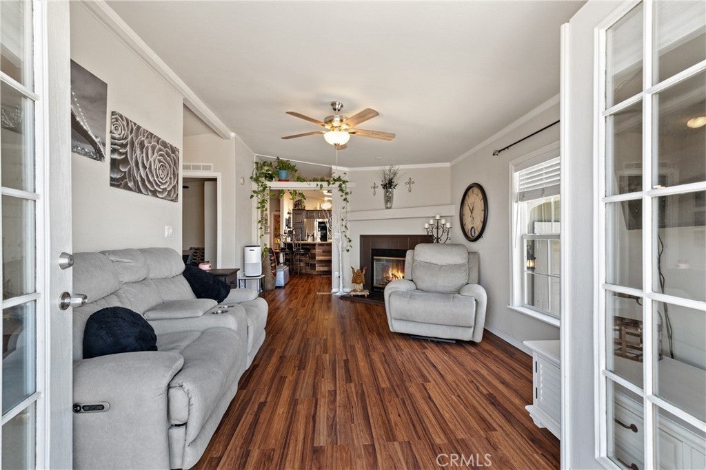 This beautiful home sits in one of the finest mobile home parks in the Beach Close Community of Laguna Hills-the highly desirable, Laguna Hills Estates. Upon entering you see the detailed attention, love and consideration the owners have given this home. 3 bedrooms, 2 bathrooms, 2 living areas, fireplace, fantastic kitchen, indoor laundry, and a large outside yard and entertaining space that has been upgraded to the hilt! Entering though the front beautiful double French doors you might need your sunglasses for all the light and brightness the windows pull in. This family area even has a fireplace. From there enter into the living-room with an open concept layout and see into the modern looking kitchen with freshly painted cabinetry, tiled backsplash and newer stainless appliances, including convection oven. Right off kitchen is space for dining table. Most ceiling fans are new throughout . Primary suite has a walk in closet and bathroom with a sunken soaking tub and separate shower with so much space! Most of the space in this fantastic home has been upgraded. Step outside and remember, you are NOT at a BEACH RESORT, just a great home in Laguna Hills whos' owners loved being and entertaining outside. Owners enclosed a large portion of the patio cover, installed an outdoor TV hookup, new outdoor lighting and lots of new landscaping. This is one of the few homes that has a TWO CAR GARAGE- not just a car port called a garage! An actual man-cave garage! Pet lovers? There is a pet park just across the street from the complex! Make an appointment to see this home ASAP! Buyer must be approved by park management- need $1950 x 3 with credit scoreof 650+ .