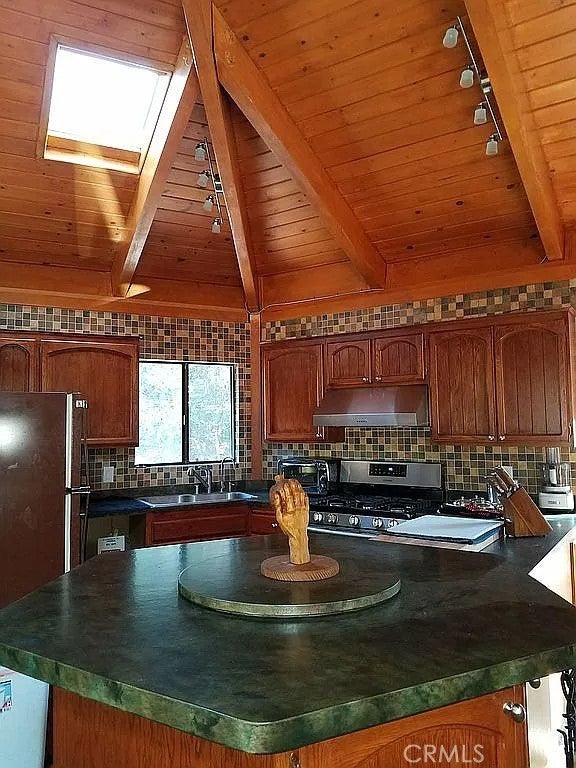 Beautiful hexagon chalet newly remodeled interior and exterior. A wonderful mountain cabin surrounded by old oaks and pines for privacy and shade. The great room is on the second floor to give you the feel of a tree house with bedrooms on the first floor. Free standing wood fireplace adds to the cabin's charm with the feel of a campfire. The lot is level. Lots of large and useable back and side yards. 800 Sq ft of decking around the home for lounging, BBQ'ing, entertaining. Over 200 Sq ft of fully enclosed, door locked storage space under the newly built deck on west side. Custom tile in bathrooms and kitchen. Tankless water heater installed. Water filtration system installed. Reverse osmosis water tap at kitchen sink. All new electrical switches and receptacles. 30 Amp plug for RV hook up under deck at driveway. Brand new roof, gutters and downspouts. Top of the line Owens Corning Premium Cool roof installation. Solar fan installed at the apex of the living room vault that sucks all the hot air out the roof, keeping the house cool during hot days. I've lived here for five years. The hexagon is nature's architectural masterpiece! The Bees know how to build!!! I've done a lot to make this place special for anyone who wants to make this mountain community their home. Absolutely no smoking allowed. Non-smokers only.