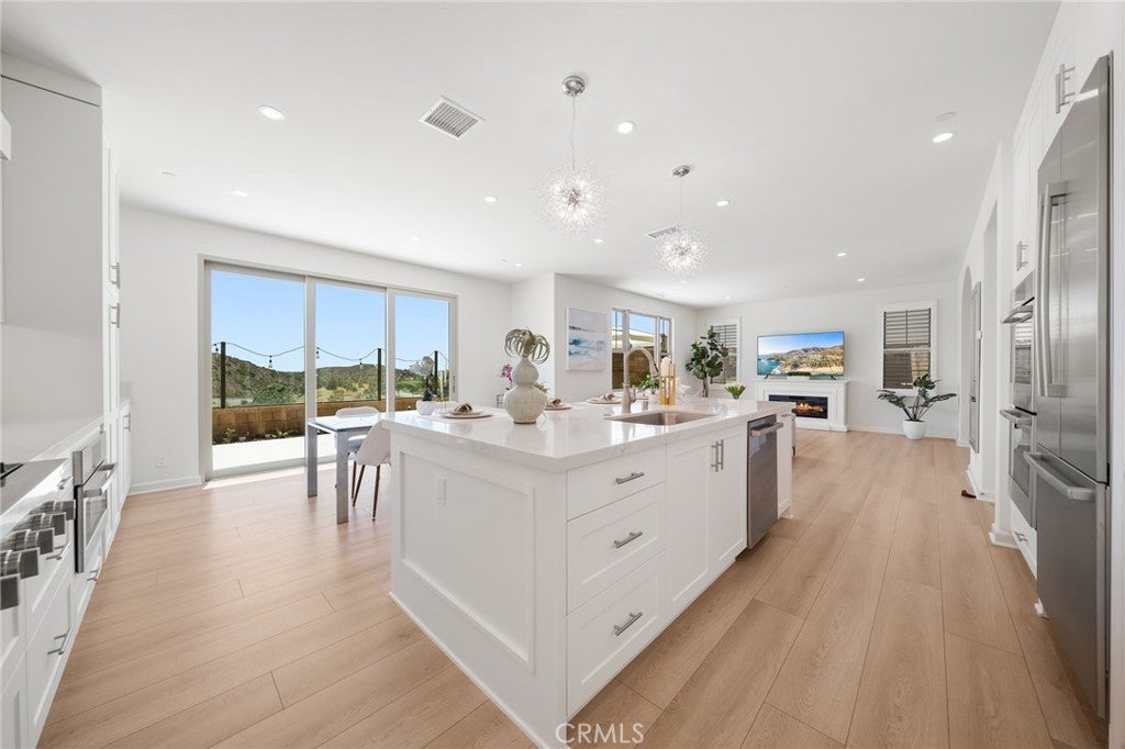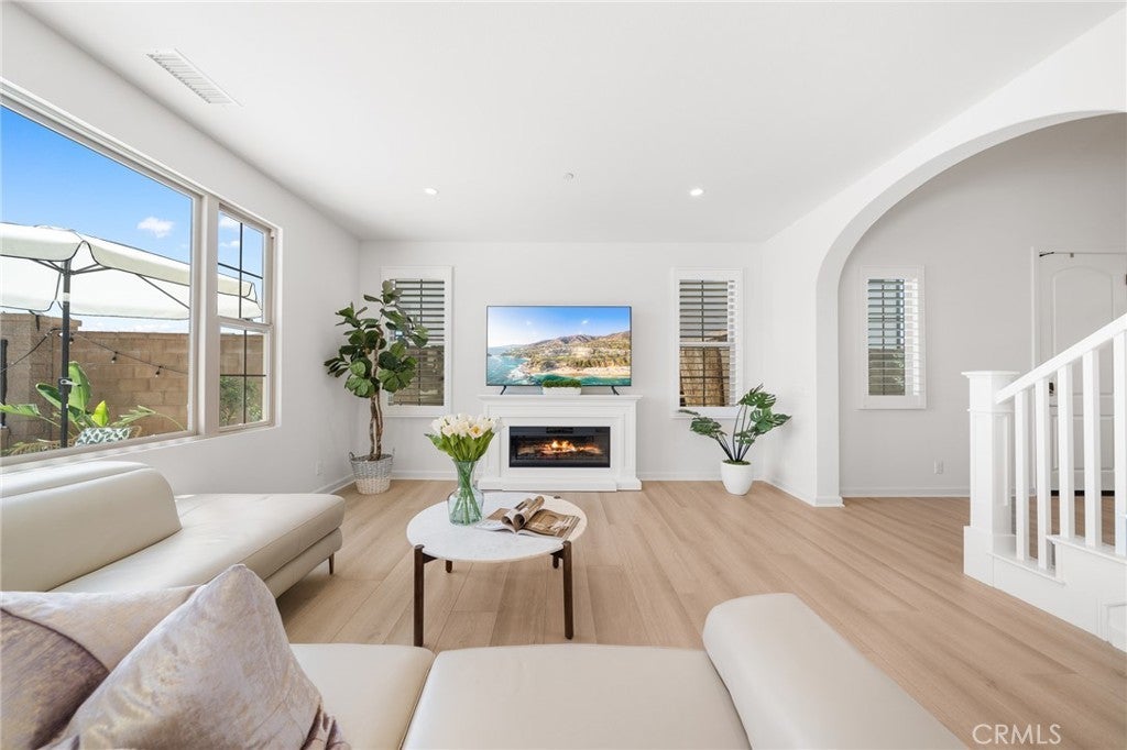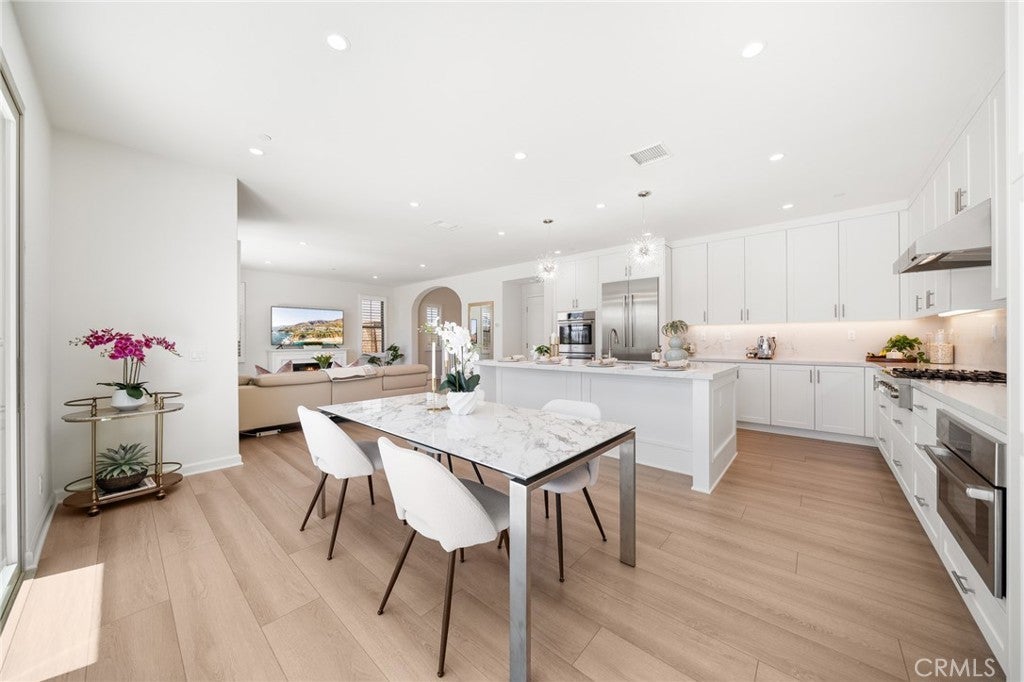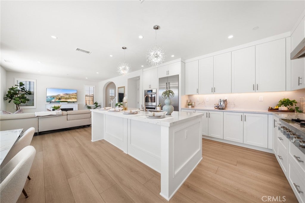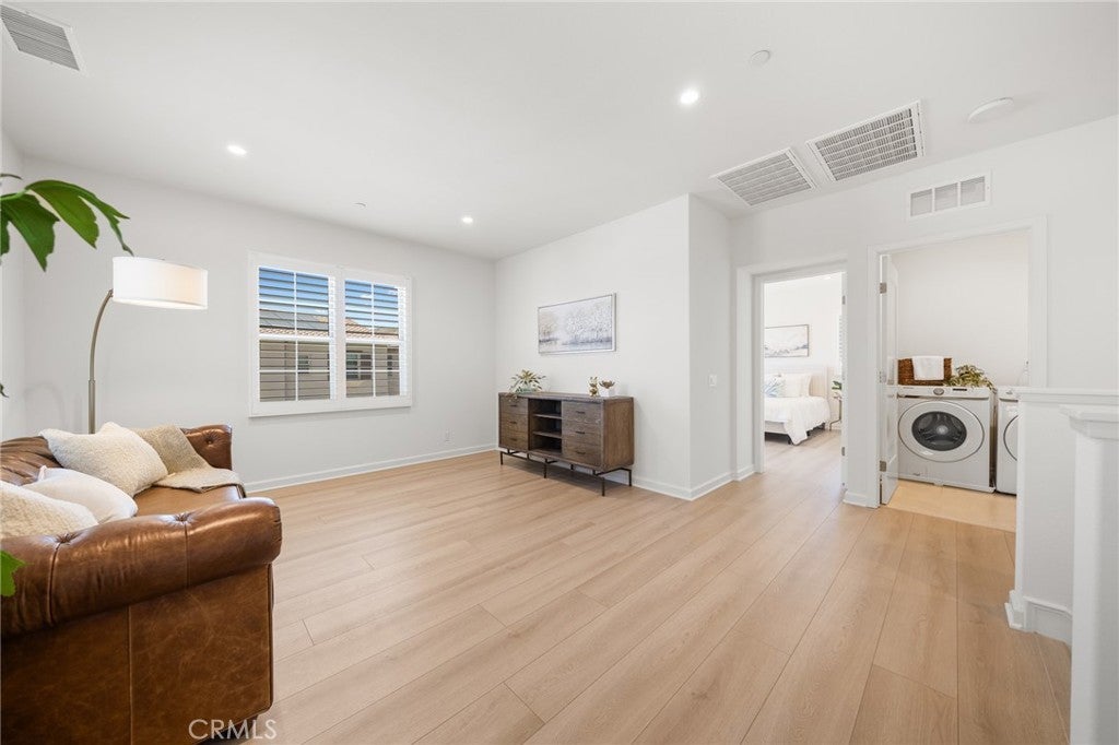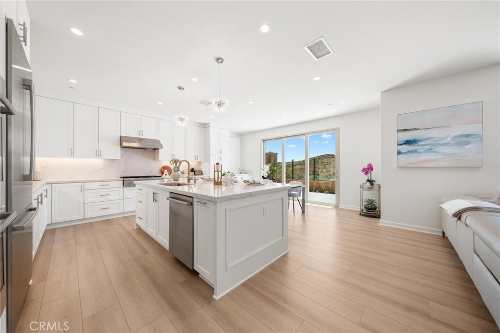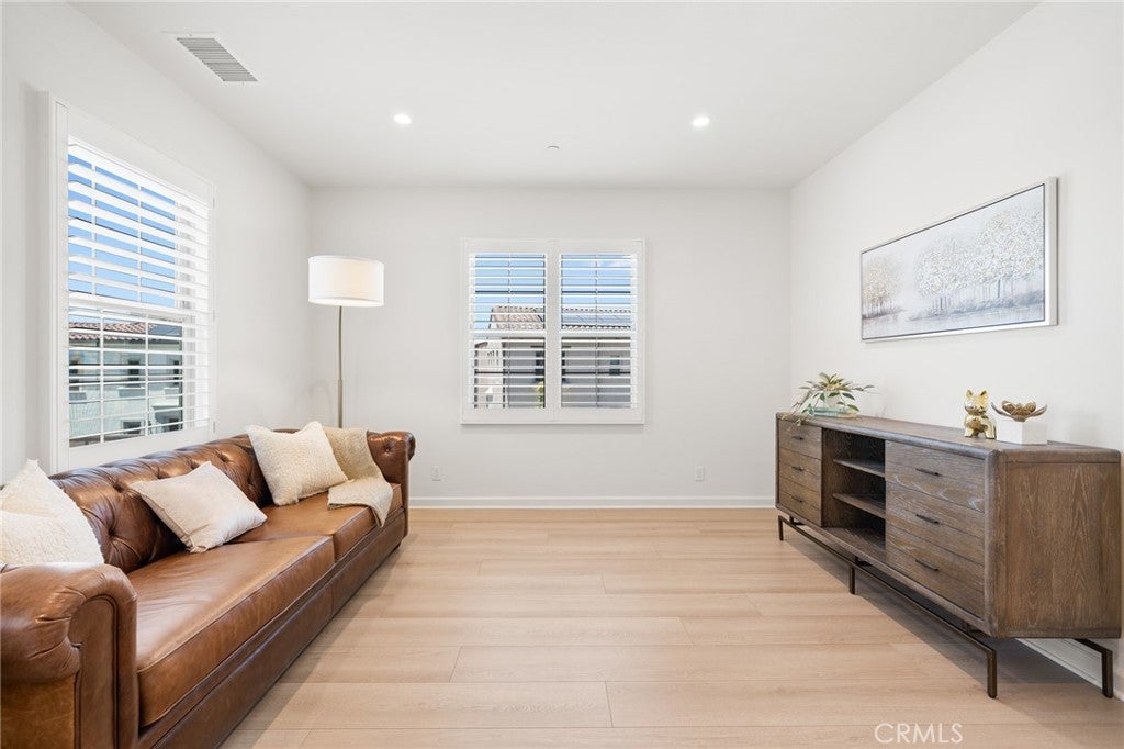 Step into luxury living in this beautifully upgraded 4-bedroom, 4-bathroom home located in the desirable Sierra neighborhood of Portola Springs, Irvine. Spanning approximately 2,524 sq. ft., this home has been thoughtfully enhanced with over $10,000 in premium upgrades for elevated style and comfort. The open-concept layout features real hardwood flooring throughout the entire home, creating a warm and cohesive flow. The chef’s kitchen includes ceiling-height custom cabinetry, upgraded built-in appliances including a premium refrigerator, and a full designer tile backsplash. The adjacent great room opens seamlessly to a private outdoor space, ideal for California indoor-outdoor living. The luxurious primary suite is complemented by an upgraded bath with a full-height accent wall, upgraded countertops, and elegant finishes. The first-floor bathroom has also been enhanced with a designer backsplash and premium surfaces. Additional upgrades include an epoxy-coated garage floor, adding both durability and style. Upstairs, a versatile loft and bonus room offer flexible living options—perfect for a home office, playroom, or guest space. Smart home features, solar panels, EV-ready garage, and energy-efficient construction round out this impressive home. Enjoy resort-style community amenities, scenic parks and trails, and access to award-winning Irvine Unified schools—all within minutes of shopping, dining, and major freeways.
