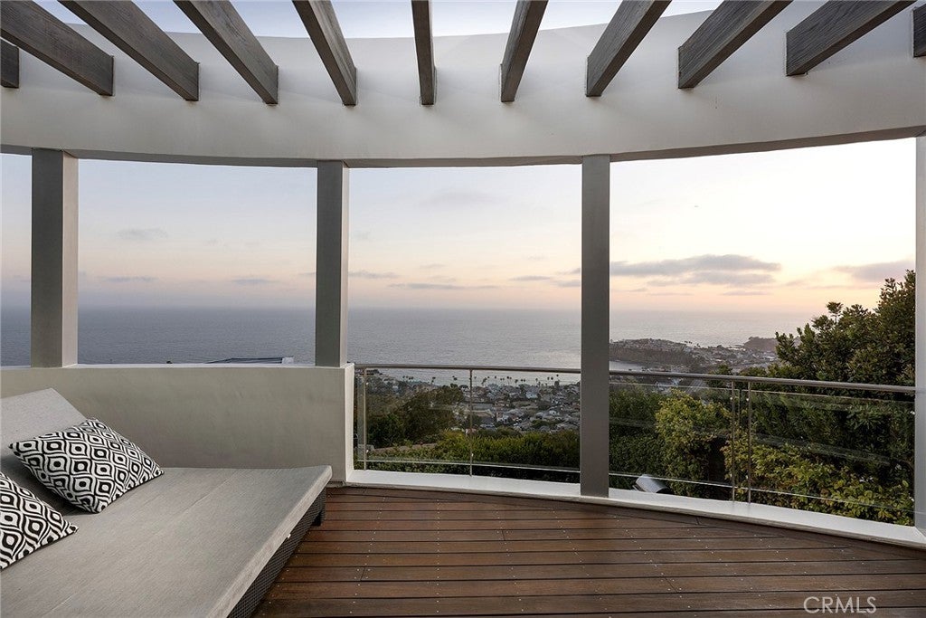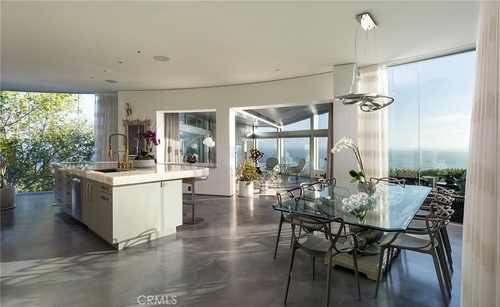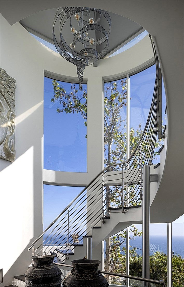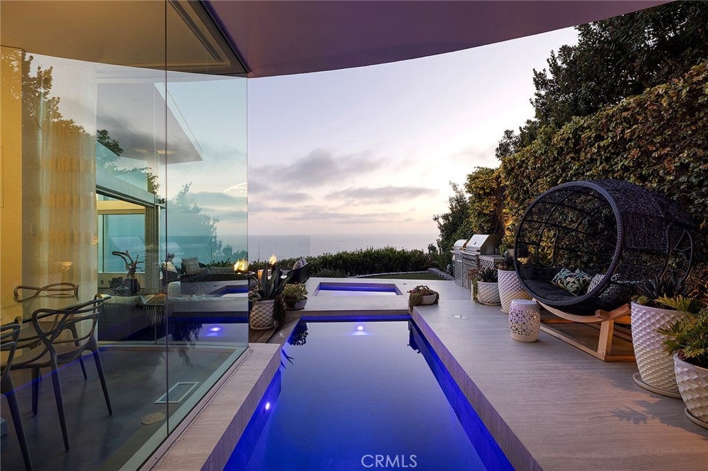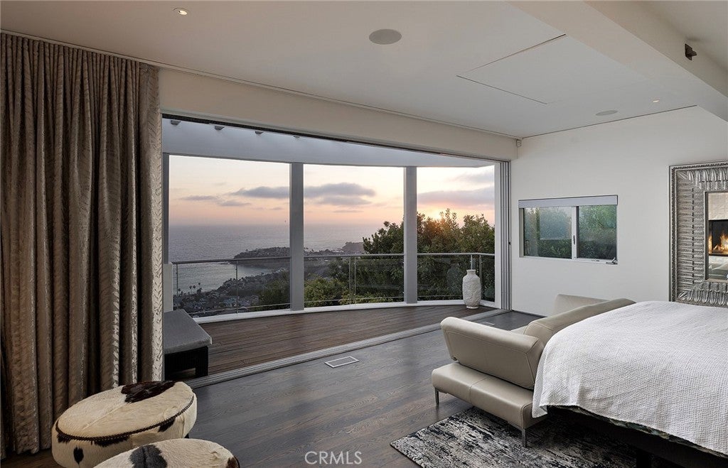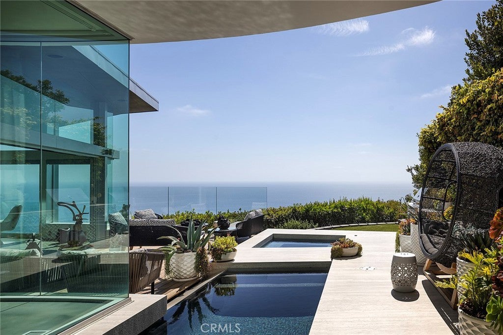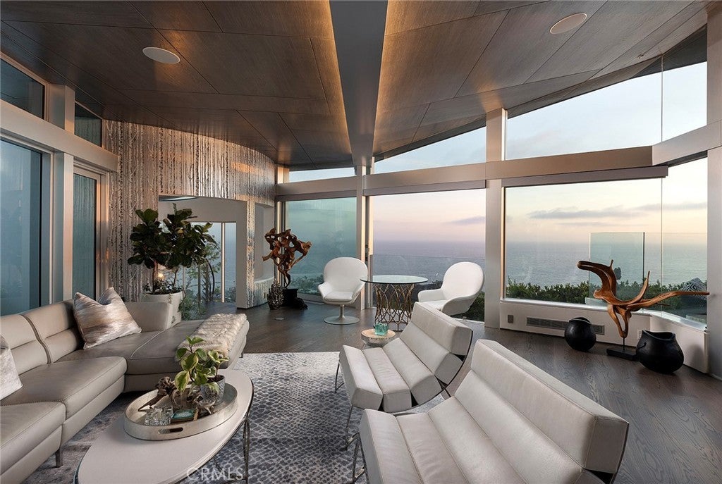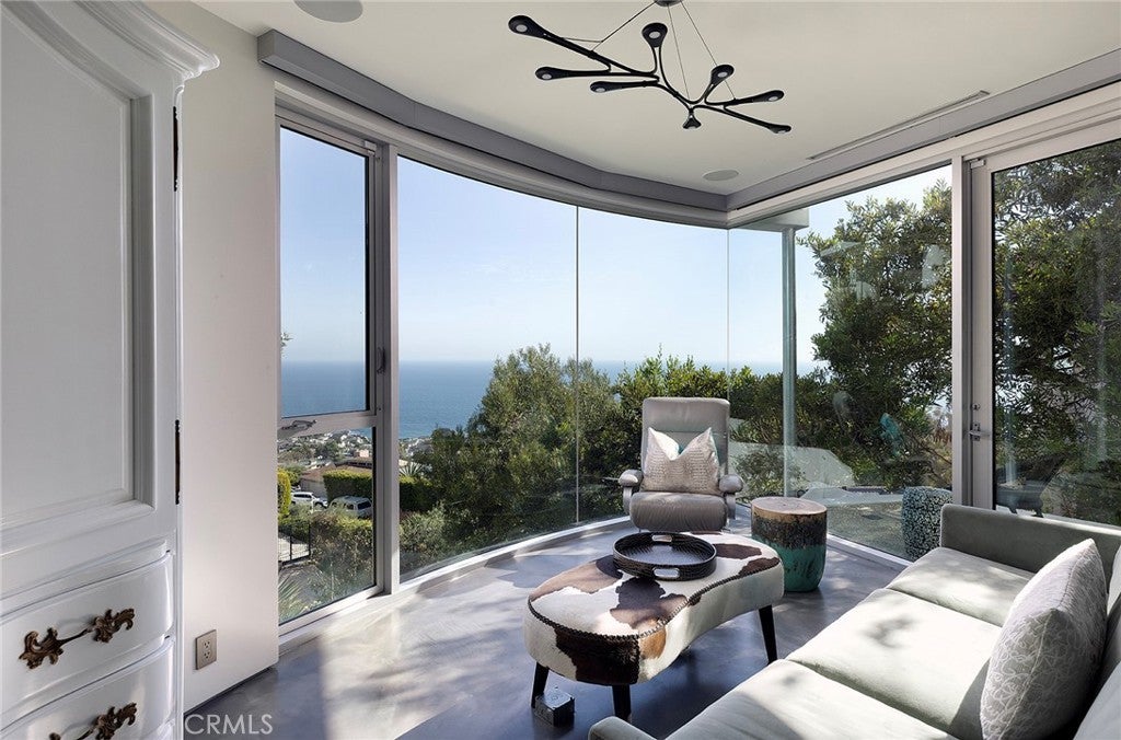 Architecturally Significant Ocean View Modern In the Sky – Laguna Beach Perched atop one of Laguna Beach’s most coveted vantage points, this architectural tour de force masterfully designed by acclaimed architects Horst Noppenberger and Paul McLean and built to exacting standards by Prestige Builders redefines coastal luxury living. Showcasing unparalleled 180-degree ocean views, this gated estate captures breathtaking vistas spanning the full coastline, both north and south arguably the finest in all of Laguna Beach. A bold expression of contemporary design, the residence rises nearly 60 feet from floor to rooftop, evoking a sense of floating above the ocean below while offering complete privacy and jaw-dropping views from every room. The dramatic entry sequence, defined by monumental vertical white concrete walls and a stone driveway that curves to a crescent-shaped entry, sets a striking tone of sophistication upon arrival. Designed to maximize the immersive ocean experience, the interior blends a refined material palette of custom hand-troweled epoxy flooring with hand-finished oak, creating a warm, minimalist interior that flows effortlessly throughout. Floor-to-ceiling glass and automated disappearing Fleetwood doors seamlessly connect expansive interiors with sun-soaked terraces and a negative-edge pool and spa framed in stone. Elevating the art of home entertainment, the residence features a state-of-the-art theater, full bar, and temperature-controlled wine cellar creating the ultimate environment for hosting friends and family. At the heart of the home, the gourmet kitchen features Poggenpohl cabinetry, a glowing Cristallo quartzite island, Miele and Gaggenau appliances, and a fully equipped butler’s kitchen blending function with refined design for both everyday living and elevated culinary experiences. Smart home technology powered by Control4, including automated lighting, climate control, and a comprehensive security system, enhances ease and peace of mind. Crowning the home, the penthouse-level primary suite spans the entire fourth floor, offering sweeping ocean views, dual walk-in closets, Poggenpohl cabinetry, and an oversized soaking tub for two. An oversized 3.5-car garage, private elevator, direct access to preserve trails, and proximity to Newport Coast, Fashion Island, and John Wayne Airport round out this exceptional offering.