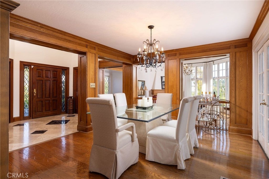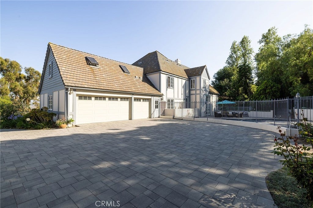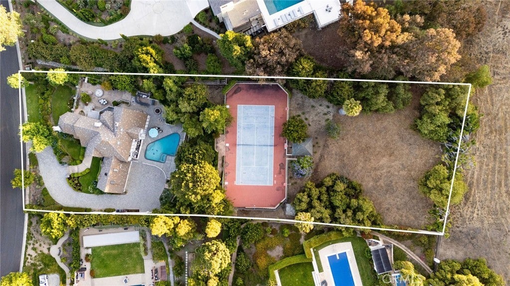 Located in prestigious Peppertree Bend, this beautiful, custom estate offers a serene lifestyle on 1.1 acres surrounded by lush greenery and privacy. A winding driveway leads through manicured grounds to a large motorcourt and 3-car garage. The home's Tudor-inspired storybook architecture and meticulous craftsmanship create a timeless appeal inside and out. The oversized entry opens into a formal foyer showcasing exquisite woodwork that continues in the formal dining room and executive office. French doors connect the indoor living spaces to extensive patios and beautifully landscaped surroundings, creating an ideal indoor-outdoor flow. The spacious bay-windowed living room features a fireplace and peaceful wooded views. The chef’s kitchen offers generous counter and storage space, a butcher-block island, and a casual eat-in dining area. Adjacent, the family room is warm and inviting with open beamed ceilings, a dramatic brick-hearth fireplace, built-in bar, and sunlit bay windows. Five spacious bedrooms include a versatile main-floor suite with a private full bath, plus a powder room for guests. Upstairs, the primary suite is its own private retreat, featuring a sitting room with fireplace, private balcony, spacious bedroom area, and primary bath. An additional en-suite bedroom upstairs, along with a contemporary hall bath featuring a rainfall shower, serve the remaining bedrooms. Outdoors, enjoy your private sanctuary with a pool and spa, fenced sundeck, and multiple dining and lounging areas featuring a built-in grill station, fountain and fire pit gathering spaces and a tranquil fountain. Follow a tree-lined path to your full tennis court, pavilion, and additional land beyond. Mature landscaping and hills behind offer unmatched privacy and quiet. Enjoy year-round comfort and peace of mind with a newer roof, central vacuum, and zoned HVAC. Set on a single-loaded street in the hills, Peppertree Bend is an intimate community of just 44 homes thoughtfully arranged for privacy and views of Capistrano Valley. Enjoy the tranquility of nature along with the charm and convenience of San Juan Capistrano, including nearby equestrian facilities, town theater, excellent schools, and local dining. Beaches, Dana Point Harbor, Monarch Beach resorts, golf, and shopping are just minutes away. This property combines beautiful craftsmanship and a peaceful lifestyle in one of the area's most desirable neighborhoods.