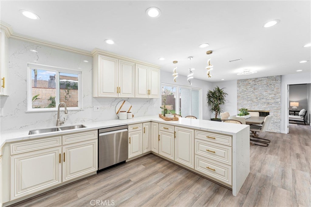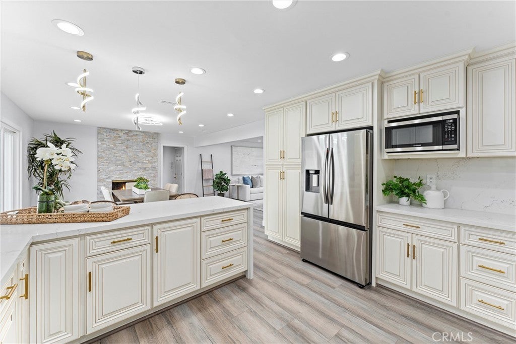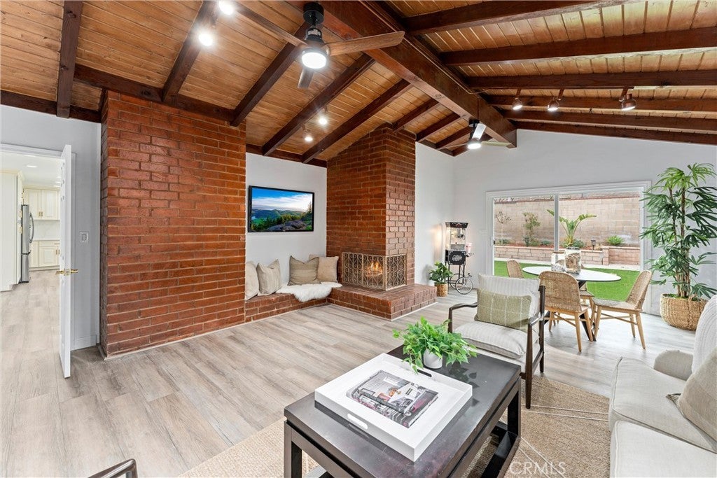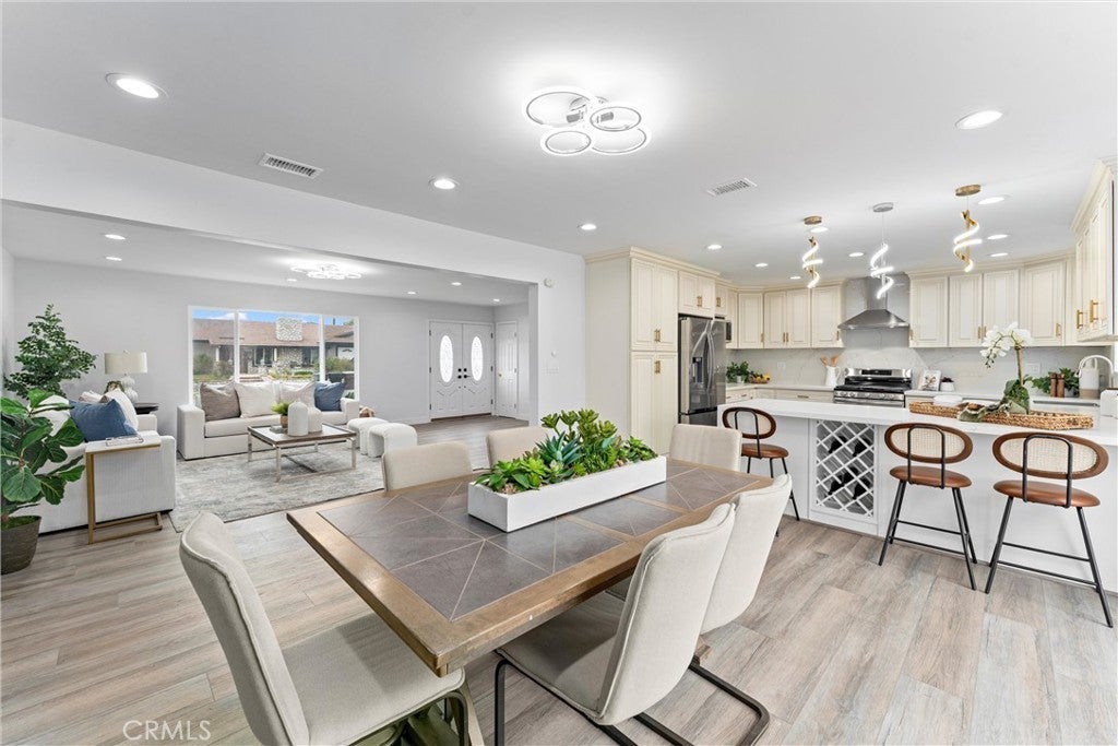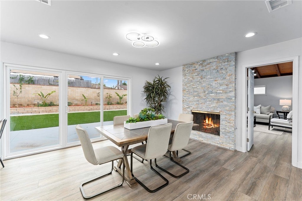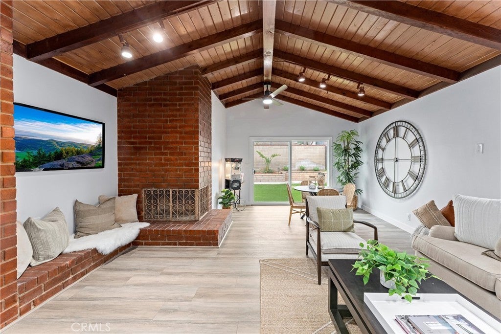 Welcome to your dream home in Yorba Linda! This stunning fully remodeled 4-bedroom, 3-bathroom residence offers the perfect blend of modern elegance and functional living. Designed with an open floor plan, this home seamlessly connects the living room, dining room, and kitchen, creating a bright and inviting atmosphere perfect for both relaxation and entertainment. The gourmet kitchen is a chef’s delight, featuring brand-new custom cabinets, a stunning waterfall Calcutta quartz countertop, and top-of-the-line appliances. The expansive family and recreation room is a highlight of the home, offering plenty of space for gatherings and featuring a cozy fireplace for those quiet evenings. The dining room also boasts a beautifully remodeled fireplace with stone veneer, adding warmth and charm to the space. The luxurious master suite includes an additional attached room, ideal for use as a private living area, home office, or nursery. All three bathrooms have been fully remodeled with modern finishes, providing a spa-like experience. Step outside to discover a large backyard with artificial grass, offering a low-maintenance outdoor oasis perfect for entertaining or simply enjoying the California sunshine. The home’s exterior exudes great curb appeal, with beautifully landscaped surroundings and modern design touches. Located in the highly desirable Yorba Linda community, this home combines luxury, comfort, and convenience in one exceptional package. Don’t miss the opportunity to make this stunning property your own—schedule a showing today and experience the best of Yorba Linda living!