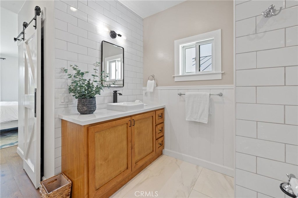 Welcome to 1703 S Ola Vista—a recently constructed coastal sanctuary in the heart of San Clemente, where elevated design meets effortless California living. Just moments from the sand, this five-bedroom, five-bathroom home blends modern elegance with a relaxed, beachside spirit. The home greets you with a bright, open floor plan, wide-plank Bellawood White Oak flooring, and thoughtfully curated designer finishes throughout. At the center of it all is a stunning gourmet kitchen, anchored by a dramatic Everest Quartz island with waterfall edges and bar seating. A full suite of premium appliances—including a 48” paneled Sub-Zero refrigerator, 6-burner Wolf cooktop, Sub-Zero microwave drawer, Bosch 800 Series dishwasher, and a 46-bottle dual-zone wine fridge—makes this kitchen as functional as it is beautiful. Custom cabinetry, designer tilework, and a farmhouse-style apron sink complete the space with style and intention. La Cantina accordion doors connect the main living areas to multiple outdoor decks, inviting in ocean breezes and creating the ultimate indoor-outdoor flow. The open-concept layout includes a spacious formal dining area with custom built-ins, and two main-level en-suite bedrooms—perfect for guests or multigenerational living. Upstairs, a bonus room provides the perfect secondary lounge, media room, or retreat. The primary suite is a private escape, featuring a cozy fireplace with reclaimed 19th-century barn beam mantle, private deck access, and a spa-inspired bath with dual vanities, walk-in closet, a freestanding soaking tub, and a large walk-in shower with oversized rain fixture and handheld wand. Additional highlights include a 10-year new construction warranty, eco-friendly hardscaping, an outdoor shower, and a detached two-car garage with epoxy flooring and EV charging. Located just a short stroll from world-class beaches, the San Clemente Beach Trail, and Avenida Del Mar’s shops and dining, 1703 S Ola Vista offers a rare opportunity to own a true coastal luxury residence.