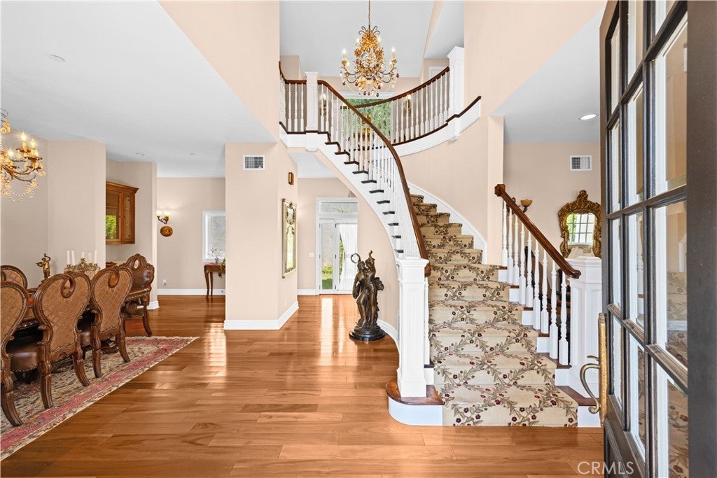 Exquisite Custom Masterpiece in Prestigious Bell Canyon. Step into timeless elegance in this Southern Colonial Estate, nestled within a private cul-de-sac in prestigious Bell Canyon's exclusive 24-hour guard-gated community. Designed with luxury, privacy and security at its core. This residence offers 4 spacious bedroom, 5 beautifully appointed Bathroom, a dedicated exercise room and a sophisticated home office adorned with rich custom woodwork. Double front balconies evoke Southern charm while capturing breathtaking sunset vistas. inside, the grand foyer welcomes you with soaring vaulted ceilings and a gorgeous layout that seamlessly connects refined dining and living spaces, anchored by a stately fireplace and expansive picture windows, The gourmet chef's kitchen is a showstopper featuring a massive island, Viking appliances, GE refrigerator/freezer, pillow-top travertine floors and marble countertops. Custom cabinetry and a sunlit breakfast nook flow effortlessly into the generous family room. Natural light fills every room enhancing the ambiance throughout. A downstairs suite offers the perfect retreat for guests, complemented by an elegant powder room, Upstairs, the luxurious primary suite boasts a cozy sitting area, fireplace, dual walk-in closet, private balcony and a spa-inspired bath. Two additional en-suite bedroom ensure comfort and privacy. The expansive backyard invites grand entertaining with ample space to design your dream pool and spa. Community amenities elevate the lifestyle, tennis and pickleball courts, a state-of-the-art fitness center, scenic hiking, horseback trails, a private park and vibrant neighbourhood events. Access to award-wining schools. This home delivers sophistication at every turn. This property isn't just a residence, its a private sanctuary that merges charm with modern luxury.