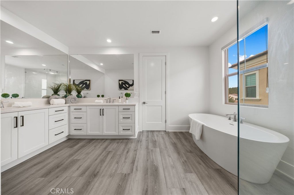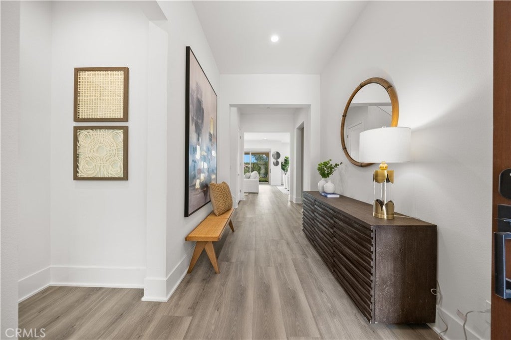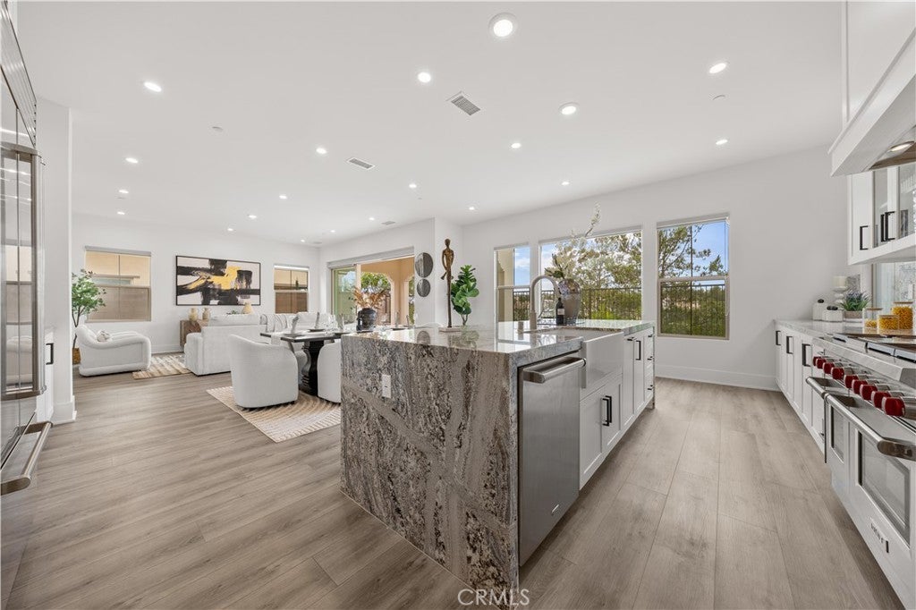 Built by Irvine Pacific – Quality You Can Feel. This luxurious Azul Groves residence is nestled within the exclusive 24-hour guard-gated community of the Groves in Orchard Hills. Set on a premium lot with no home directly behind and elevated for enhanced privacy and natural light, this home offers breathtaking views of the surrounding hills and sparkling city lights. Spanning 3,300 sq. ft., the open-concept floor plan boasts 10-foot ceilings, an airy and light-filled layout, and panoramic sliding glass doors that blend indoor and outdoor living seamlessly. The chef-inspired kitchen is outfitted with top-of-the-line Wolf and Sub-Zero appliances, a stunning polished granite waterfall island, and designer full-height quartz backsplashes—perfect for elevated entertaining. Upstairs, the expansive primary suite features panoramic mountain and city views, a spa-like bathroom with a freestanding soaking tub, a glass-enclosed walk-in shower, and a generously sized walk-in closet. Additional highlights include four bedrooms, three and a half baths, a first-floor guest suite, a spacious upstairs office/study, and an architecturally upgraded glass staircase. This home includes over $300,000 in premium upgrades, including 3.6kw paid-off solar panels, luxury vinyl plank flooring throughout, and more. Located on a quiet, interior street with no through traffic, it’s just steps away from the community playground, green lawns, and resort-style pool—a perfect spot to enjoy time with kids or pets. Enjoy life in one of Irvine’s most prestigious neighborhoods, served by the award-winning School District. Just minutes from Orchard Hills Shopping Center and fine restaurants. Easy freeway access. Come experience luxury, privacy, and convenience—this home is a rare find. Don't miss it!