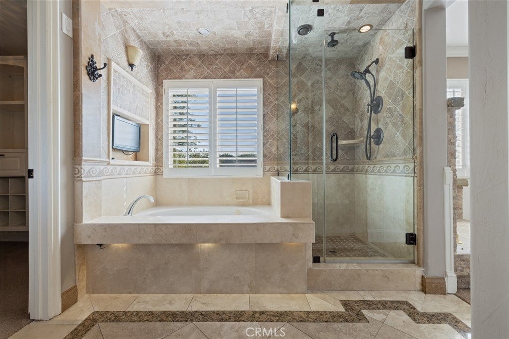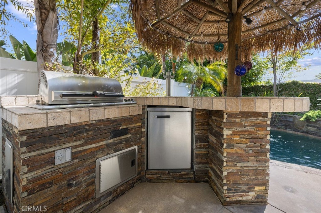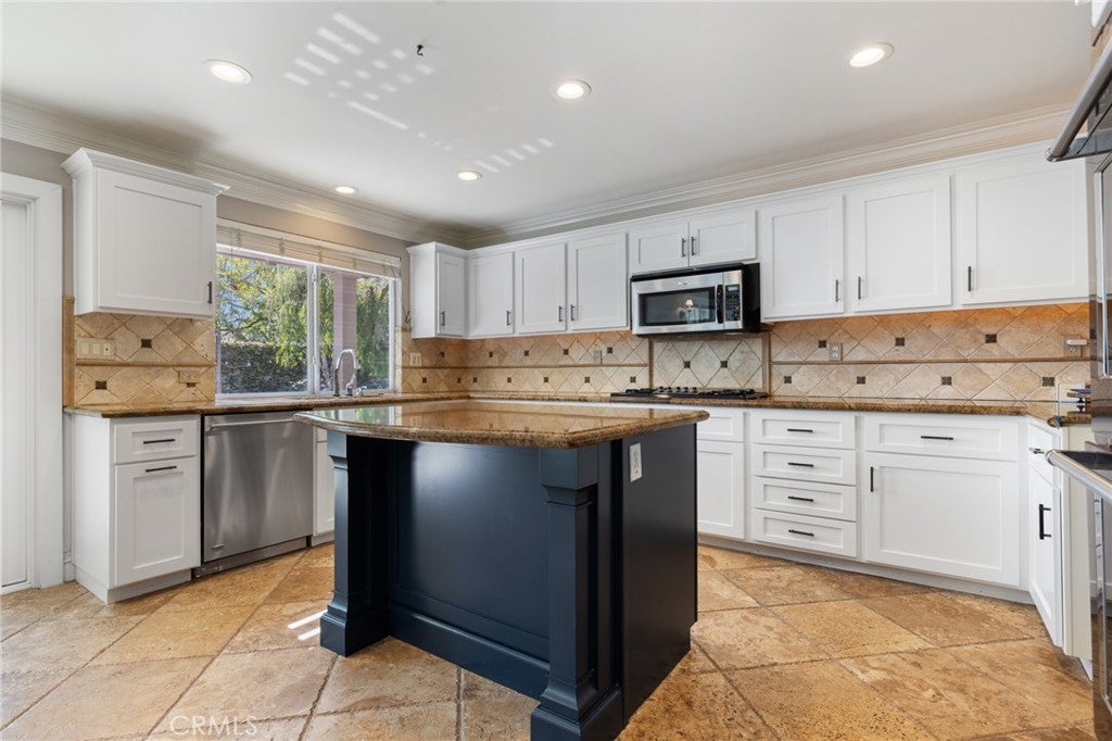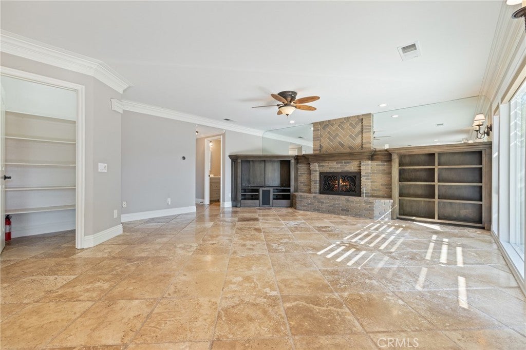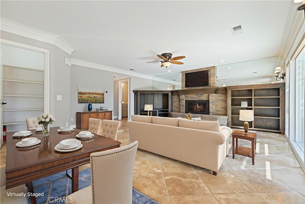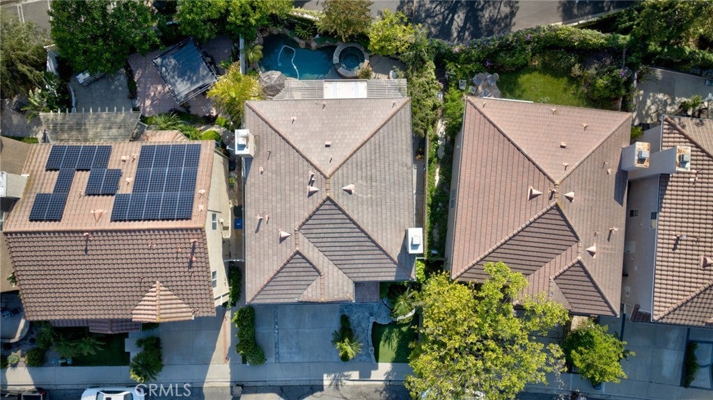 Located on a quiet cul-de-sac with no HOA, this beautifully upgraded, turnkey home offers 4 bedrooms and 2.5 bathrooms. The spacious primary and secondary bedrooms feature custom walk-in closets. The upstairs guest bathroom includes dual vanities and custom tile work, while the primary suite offers additional upgrades such as dual vanities, a jetted soaking tub, and a walk-in shower with dual shower heads. Interior features include wood shutters, crown molding throughout, and Travertine flooring in the downstairs living areas. The kitchen is equipped with double ovens, a touch-activated faucet, and ample workspace. Recent updates include new dual-zone HVAC systems with separate upstairs/downstairs controls, additional attic insulation, and a radiant barrier for energy efficiency. The home has been freshly painted upstairs and down, and features an updated built-in entertainment center with new stain, as well as a custom-built bar with hutch lighting and storage. A new XL picture window and matching sliding glass doors in the second living room enhance the indoor/outdoor living, complete with custom electronic blinds. In the backyard to enjoy a custom pergola with fan and lighting, Pebble Tec pool and spa with Wi-Fi controls, a built-in BBQ, and a gas firepit—all surrounded by lush landscaping. Additional highlights include low-maintenance front yard turf and a finished garage with epoxy flooring. This home is move in ready.