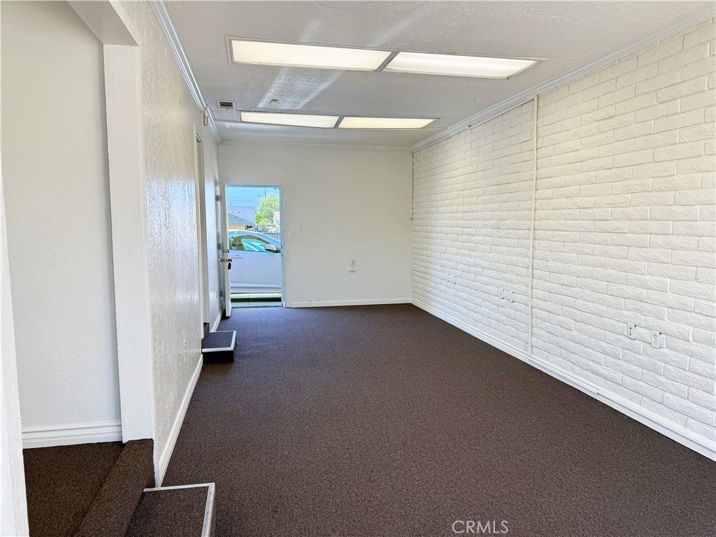 Well-maintained office space available for lease in a high-visibility Anaheim location near major streets and surrounded by established businesses, including a nearby supermarket. This move-in ready unit features central A/C, freshly painted walls, brand new carpet, and a functional layout that includes one private office, an open work area, and a private restroom. An interior brick veneer accent wall adds texture and character to the space. Secured front entry with decorative wrought iron fencing and gate offers added privacy and security while maintaining curb appeal. Rear parking is available for both tenants and visitors. Perfect for professional services, consulting, or small business use. Conveniently located with easy access to the 5, 57, and 91 freeways. Excellent opportunity to establish or grow your business in a central Orange County location.