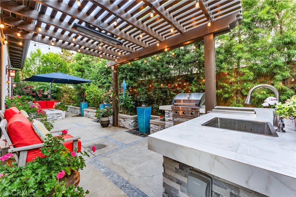 Experience elevated living in this exquisite 4-bedroom, 4.5-bathroom residence, masterfully upgraded with over $200,000 in refined enhancements. Homeowners are the original owners and had the builder, KB Homes, complete the conservatory upgrade during construction, adding additional square footage to expand the living space. 202 Geyser is the essence of modern luxury and comfort, blending thoughtful design with timeless sophistication. From the moment you enter, you’ll be captivated by model-quality finishes, including a desirable main-level guest en-suite and three additional upstairs bedrooms, each featuring its own private bath. The expansive great room exudes warmth with a designer fireplace and immersive 7.2 surround sound system—perfect for both relaxing and entertaining. The chef’s kitchen is a true culinary masterpiece, showcasing upgraded soft-close cabinetry, a custom-built pantry with a charming barn door, and sleek finishes throughout. A striking powder room with custom wood detailing adds to the home’s upscale character. Additional designer touches include custom draperies, bamboo window shades, plantation shutters, a built-in linen cabinet, and pre-wired ceiling speakers in the master suite, loft, kitchen, and dining areas. The finished garage is equally impressive, featuring epoxy flooring, custom built-in storage, and an EV charger. Step outside to your private Tuscan-inspired oasis—complete with a pergola and remote-controlled heater, a built-in BBQ island with sink and water heater, a gas fire pit, tranquil water features, and lush landscaping with drip irrigation. Enjoy the benefits of fiber optic internet and energy-efficient leased solar panels. This extraordinary home offers unmatched luxury and thoughtful upgrades throughout—an exceptional opportunity for the most discerning buyer.