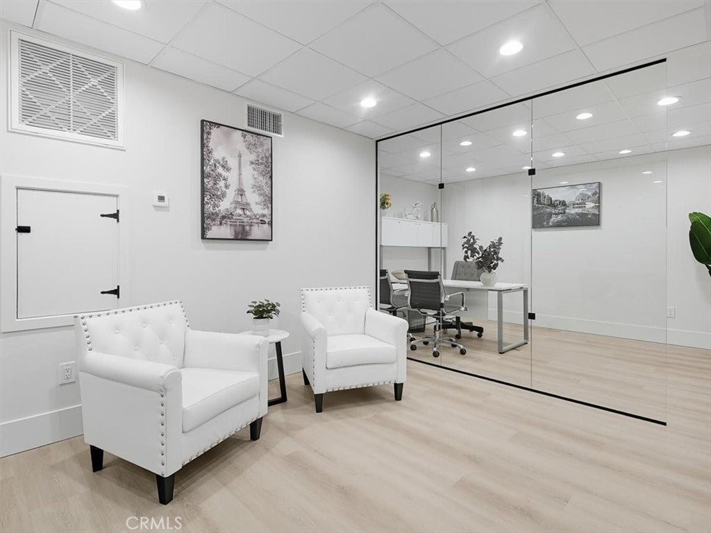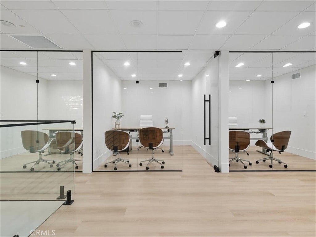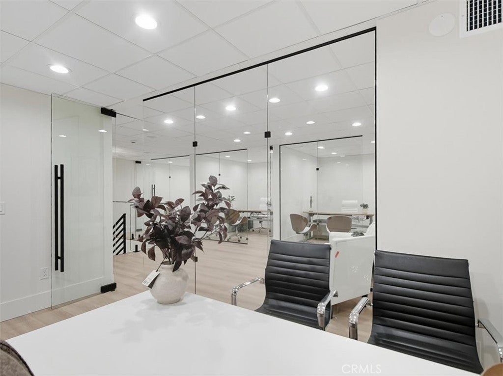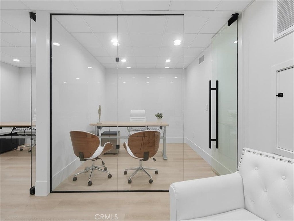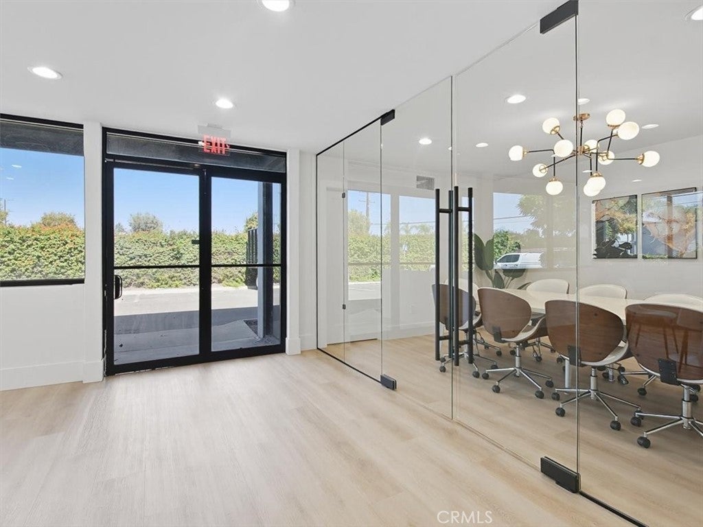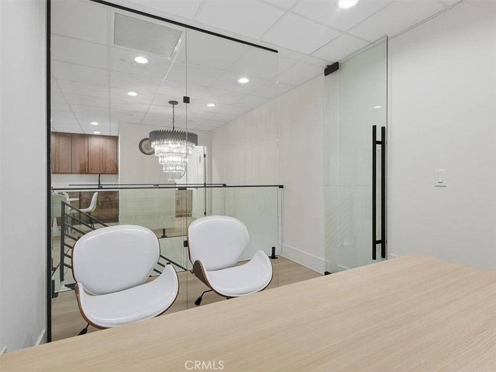 Step into a refined workspace that blends form, function, and aesthetic appeal. From the moment visitors arrive, the reception area’s upscale ambiance conveys professionalism. Glass-walled conference rooms allow for privacy without sacrificing transparency, while private offices offer quiet focus. Practical amenities—including two kitchenettes and ample parking—are matched by design-forward finishes, such as statement lighting and bespoke cabinetry. This space reflects a commitment to quality and is ideal for businesses looking to brand themselves through their office environment.