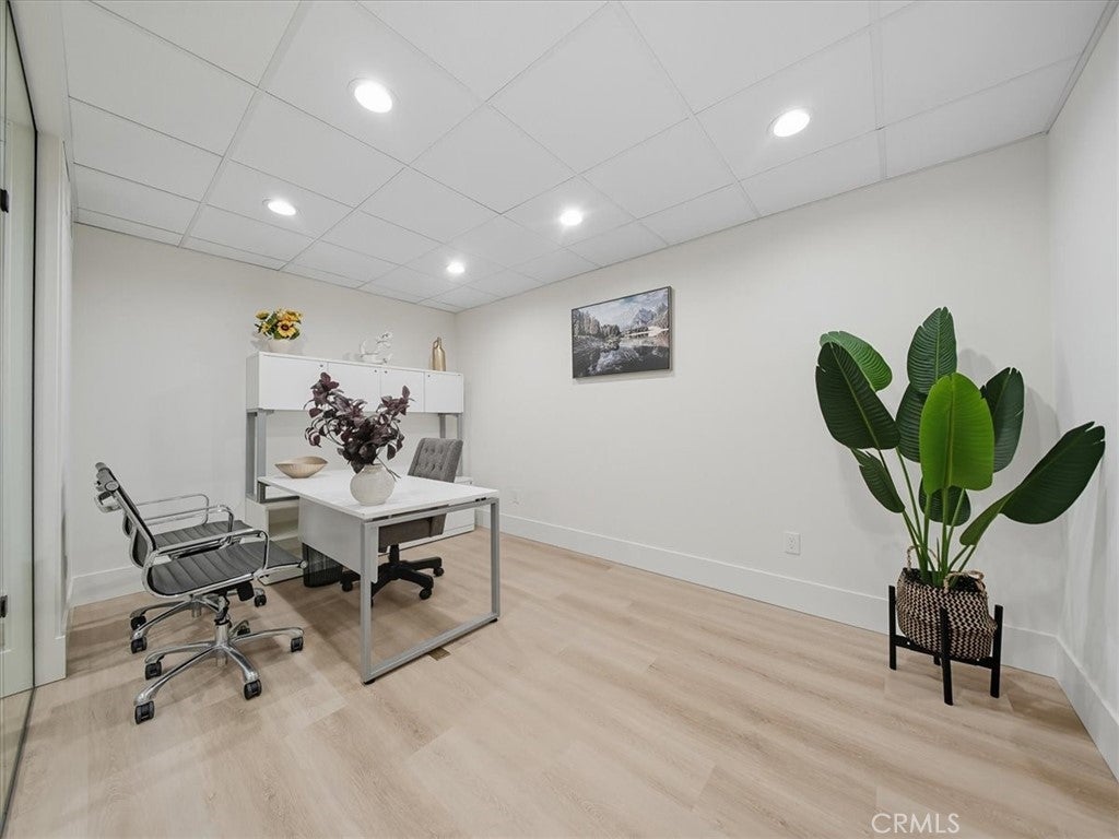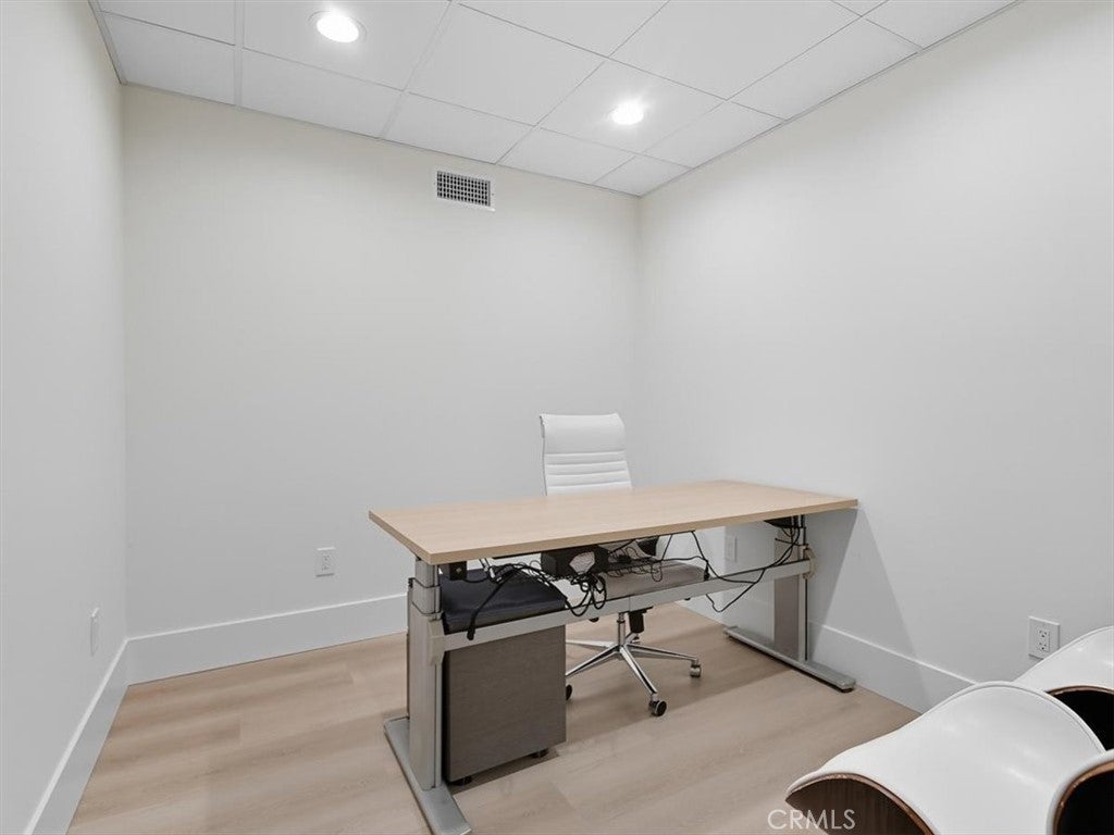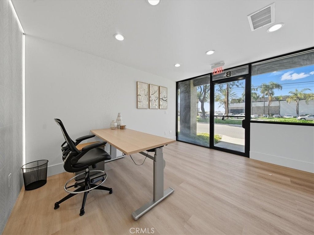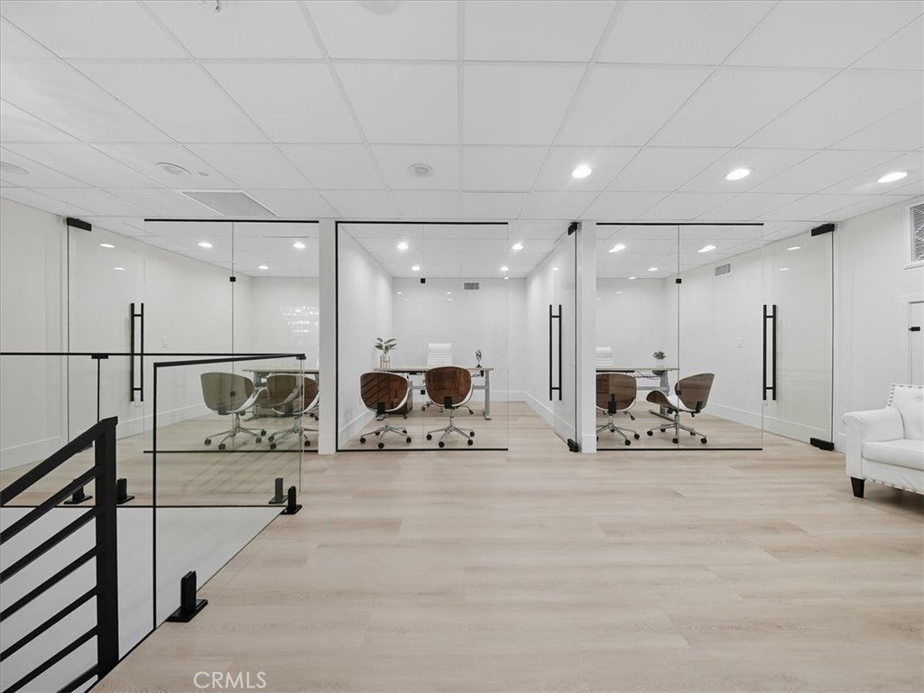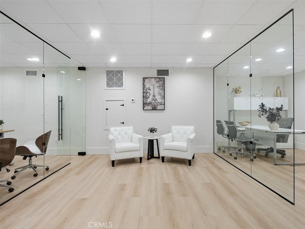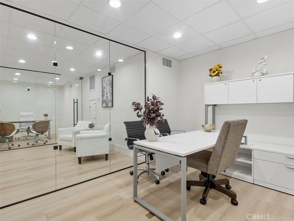 Step into a refined workspace that blends form, function, and aesthetic appeal. From the moment visitors arrive, the reception area’s upscale ambiance conveys professionalism. Glass-walled conference rooms allow for privacy without sacrificing transparency, while private offices offer quiet focus. Practical amenities—including two kitchenettes and ample parking—are matched by design-forward finishes, such as statement lighting and bespoke cabinetry. This space reflects a commitment to quality and is ideal for businesses looking to brand themselves through their office environment.