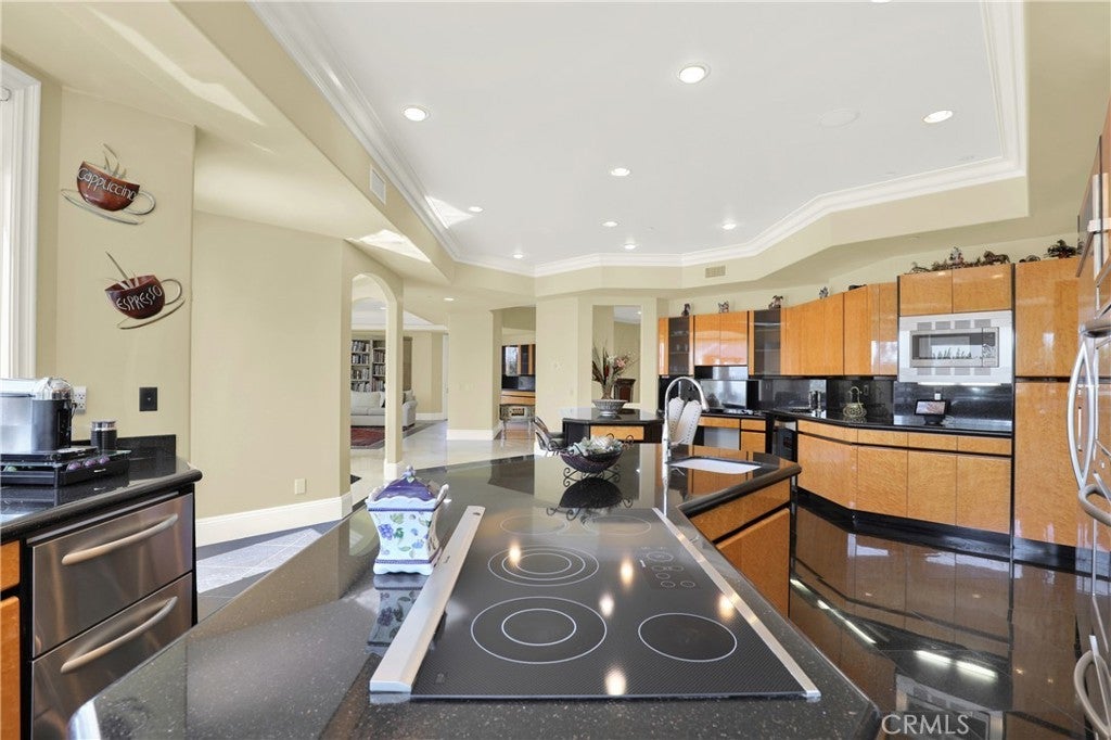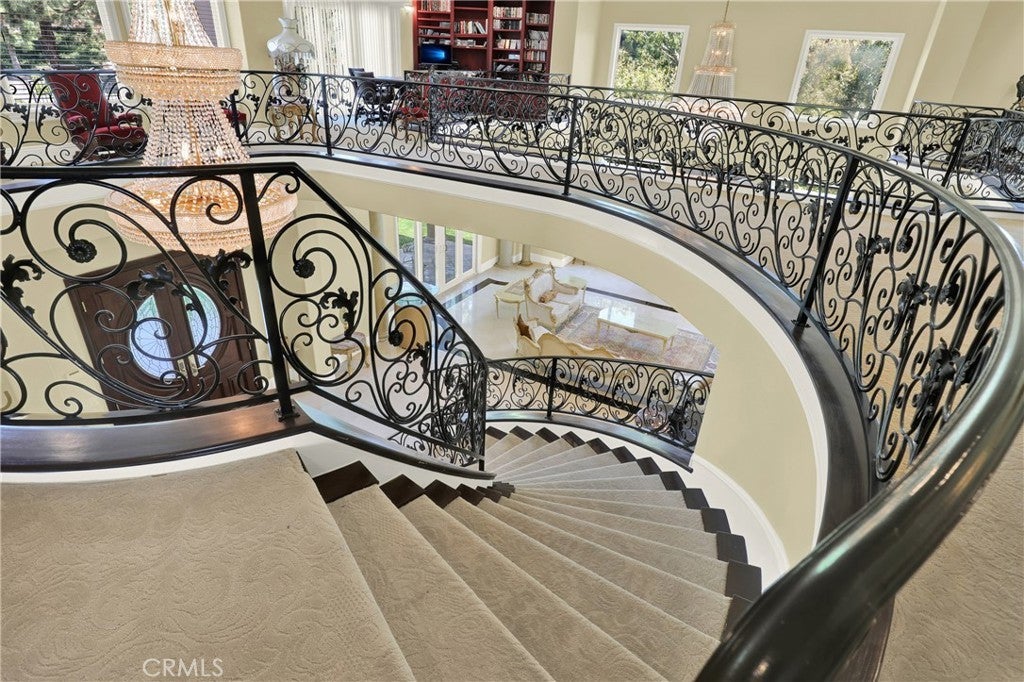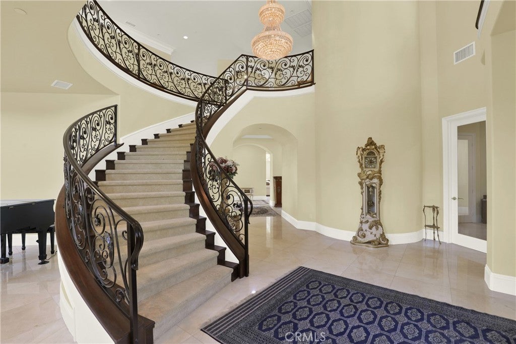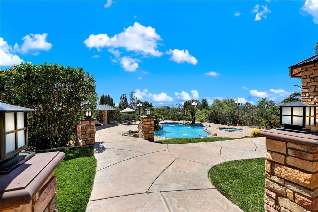 Exquisite Riverside Estate in Alessandro Heights – A Private Paradise Awaits Welcome to your own piece of paradise nestled in the prestigious White Gate community of Alessandro Heights, one of Riverside’s most sought-after neighborhoods. Tucked just off Overlook Parkway, this grand estate offers over 8,800 sq ft of luxurious living space, plus a private casita perfect for guests or multi-generational living. From the moment you step through the front doors, pride of ownership is evident throughout. Enter into a stunning grand foyer featuring a dramatic spiral staircase, Italian marble floors, and soaring cathedral ceilings adorned with opulent chandeliers. The formal living room, anchored by a stately fireplace, flows seamlessly into the elegant dining room, both appointed with custom Italian furnishings that evoke timeless sophistication. An arched hallway leads you to the heart of the home: a massive family room with a second fireplace, built-in bar, and a sunlit breakfast nook that opens to the lush backyard. The chef’s kitchen is a dream come true, equipped with dual islands, Monogram appliances, gleaming midnight sparkle granite countertops, and an abundance of custom cabinetry — perfect for both everyday living and grand-scale entertaining. The first floor also boasts a secondary family room for private gatherings or use as an additional bedroom, a spacious office with dual entry, a large laundry room, and a versatile bonus room just off the garage. Dual staircases provide easy access to the expansive second level, where you’ll find four ensuite bedrooms, including a showstopping primary suite with its own kitchenette, a spa-inspired bathroom with an oversized soaking tub, and a massive walk-in closet. Also, Furniture can be discussed with terms. Outside, the fully gated estate includes a private security gate, expansive driveway with ample parking, and an oversized garage—each bay with its own dedicated storage room. The meticulously landscaped backyard is an entertainer’s dream with multiple covered patios, a fully-equipped outdoor kitchen with BBQ, sink, fridge, and generous counter space, ideal for hosting events or relaxing with family. Descend to your own resort-style pool with beach entry and water features, all set within a tranquil, private setting. Call today to schedule your private, pre-approved tour!