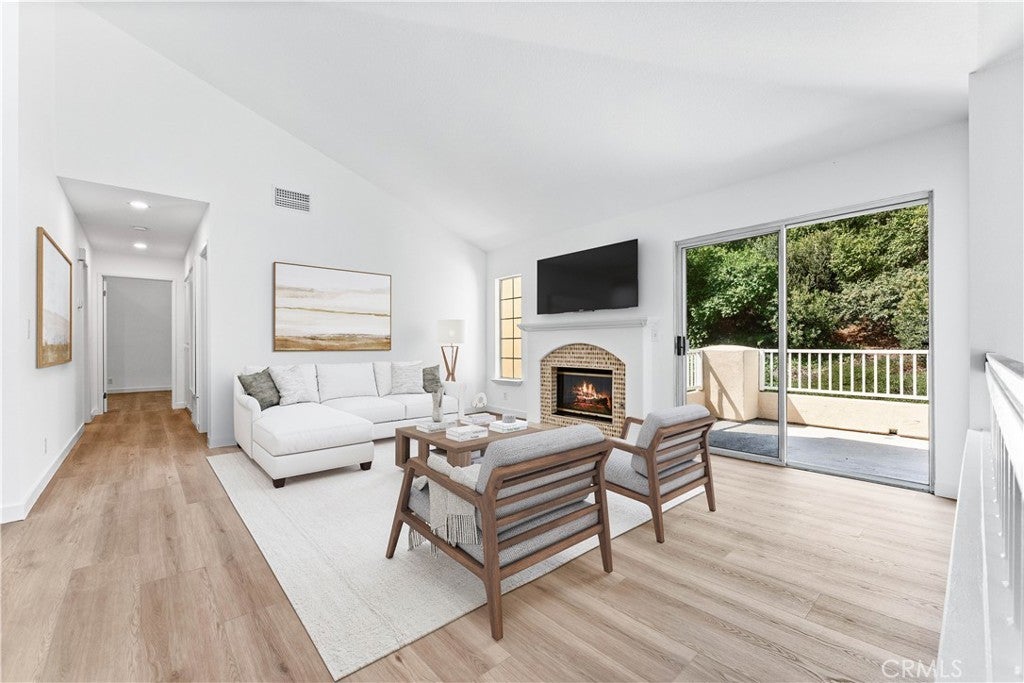 Experience elevated living in this beautifully upgraded 2-bedroom, 2-bathroom condo with a spacious top-floor loft—perfect as a third bedroom, office, or flex space. Privately situated within the community, this light-filled residence showcases soaring vaulted ceilings and expansive windows that bathe the open-concept layout in natural light. The inviting living room is centered around a cozy fireplace and features upgraded flooring throughout. The expanded kitchen is a chef’s delight, featuring granite countertops, brand-new stainless steel appliances, a stylish backsplash, and an oversized sink. The serene primary suite offers a peaceful retreat, complete with a charming alcove and tranquil views of the lush greenbelt. Step out from the family room onto your private balcony, ideal for relaxing or entertaining while enjoying the verdant surroundings. Additional highlights include a spacious two-car garage and access to resort-style community amenities, including a pool and spa. Ideally located near scenic parks, hiking trails, award-winning schools, premier dining, shopping, and entertainment—with effortless access to Orange County’s world-class beaches and luxury resorts.