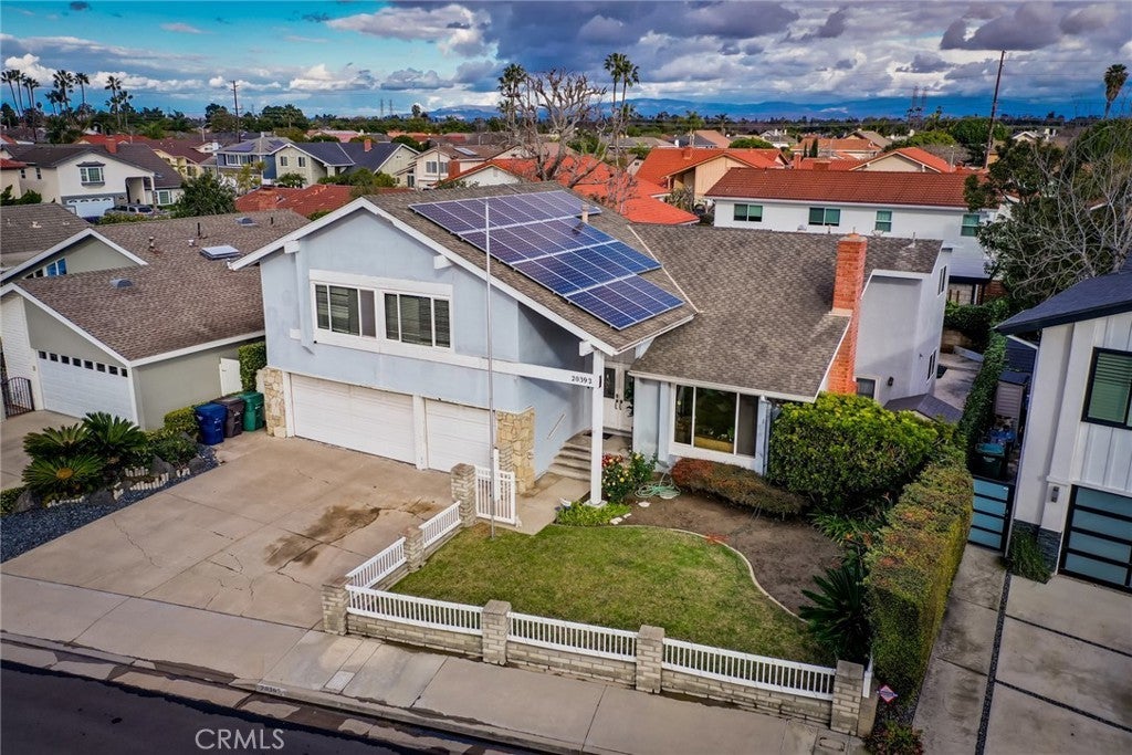 Largest floor plan in the neighborhood is expanded! Downstairs bedroom and full bath with private entrance. Perfect for home office! Beautiful and expanded kitchen combines with great room. Upgrades include espresso cabinets, quartz counters, double oven, island, and french doors to the side yard, patio slider door to the back yard, pool. Downstairs 1/2 bath. Wood or gas burning fireplace in the formal living room with high ceilings, picture window overlooking the front yard. Upstairs is a HUGE bonus room above the 3 car garage. Primary suite with high ceilings, walk in closet, en suite bathroom. 2 additional upstairs bedrooms, 1 with walk in closet. Upstairs Full bathroom is updated! Backyard with deep swimming pool & spa. Direct access to the 3 car garage. Leased Solar