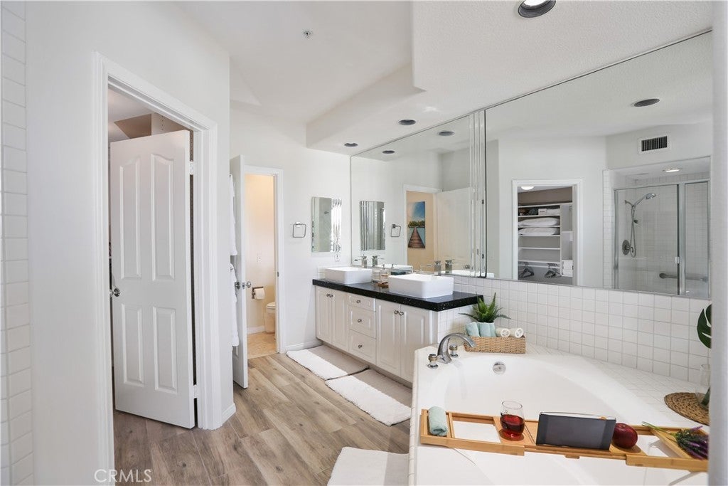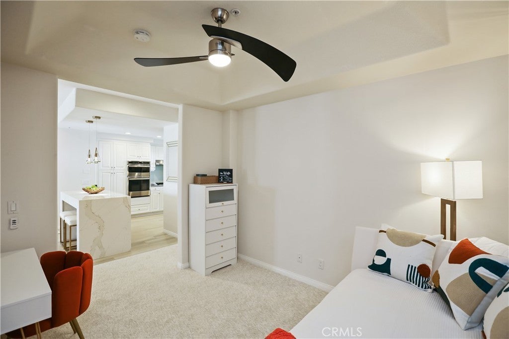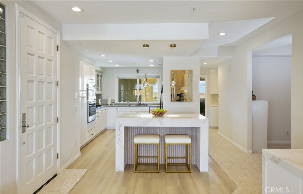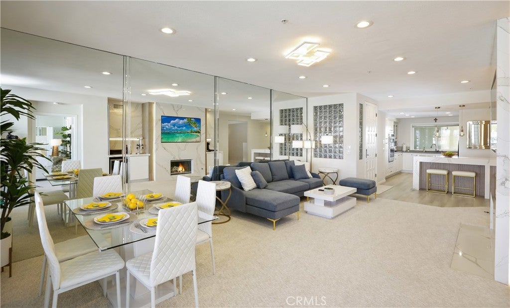 Live the Huntington Harbor lifestyle in this beautifully remodeled, fully furnished second-floor condo with sit-down marina views. This light-filled 2BR + den (optional 3rd bedroom) offers water views from the living room, primary suite, and private balcony—ideal for enjoying the holiday boat parade. The open-concept layout features a gourmet kitchen with marble island, modern cabinetry, and a custom coffee and wine station with built-in wine fridge, opening to the dining and living areas. The living room showcases a marble fireplace, recessed and mood lighting, and access to the resurfaced balcony. The primary suite includes harbor views, a walk-in closet, dual sinks, soaking tub, and separate shower. The den offers flexible use as an office, guest room, or optional third bedroom. Additional upgrades include luxury vinyl flooring, new carpet, fresh paint, two gated parking spaces, and guest parking. Short walk to the sand with nearby walking and jogging trails, plus easy access to restaurants, the yacht club, and Huntington’s pet-friendly beach. Furniture included and may be sold separately.