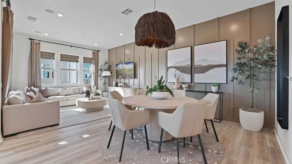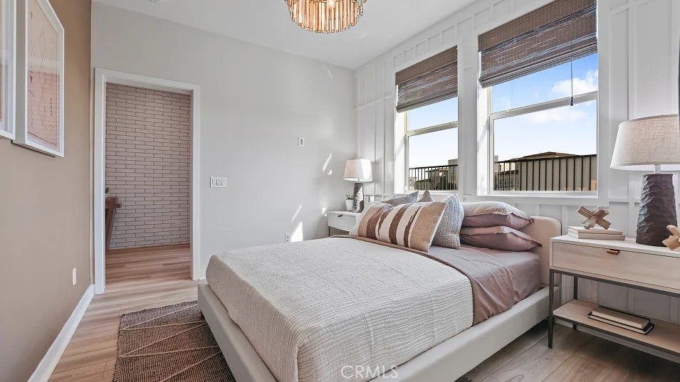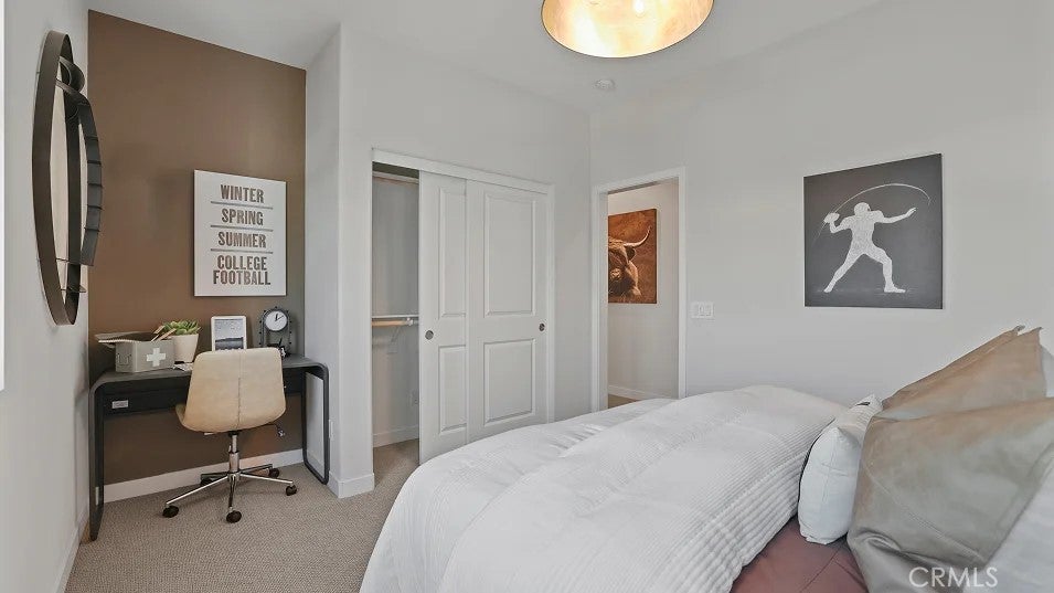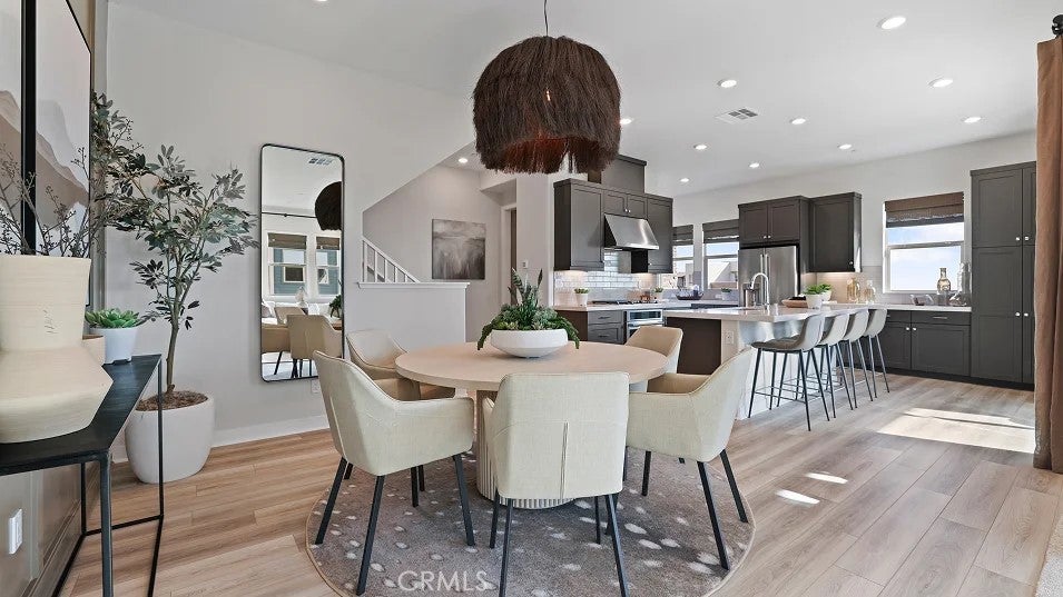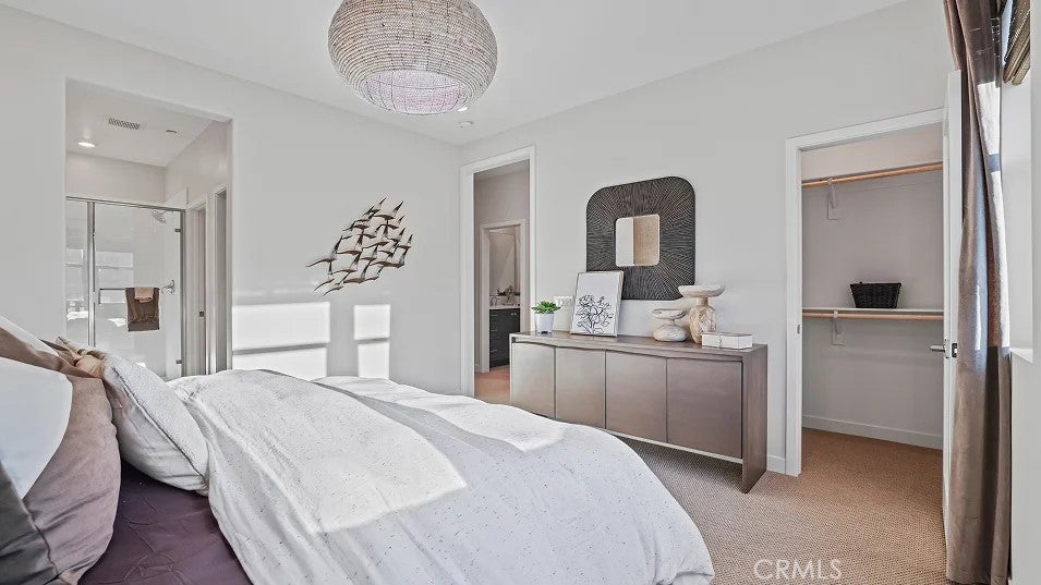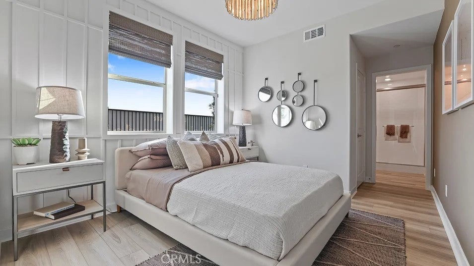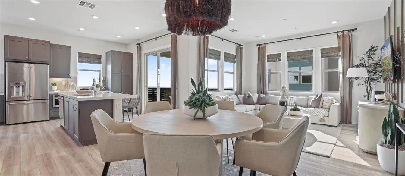 The first level of this three-story townhome is host to a bedroom that’s perfect for overnight guests or a home office. The Great Room, kitchen and dining room are arranged among an open floorplan on the second level that makes multitasking and entertaining a breeze. A deck complements the open living space. Three more bedrooms can be found on the top floor. Your own personal driveway is included. About the neighborhood: Metro Heights is a luxury gated masterplan community of new homes on the hills above Montebello, CA.