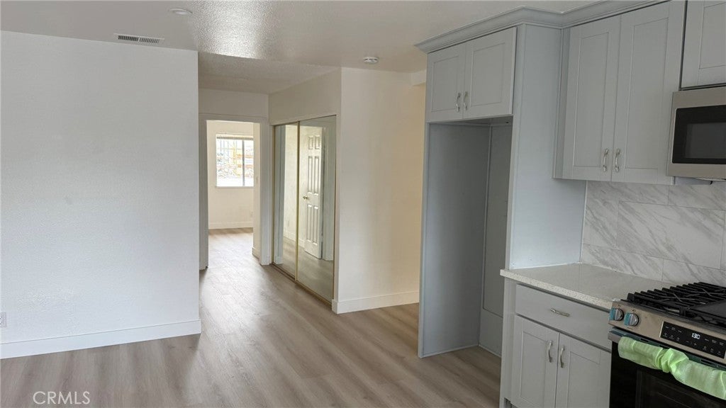 This beautifully remodeled 3-bedroom, 2-bathroom condo is located in the heart of Anaheim, just minutes from Disneyland and the Historic Packing District. This upper-level unit boasts an open floor plan with an abundance of natural light. The bright and airy kitchen boasts ample cabinet space and a dining area. The spacious living room opens up to a large private balcony, perfect for relaxing or entertaining. The primary bedroom features an en-suite bathroom with a spacious vanity and a huge mirror closet. The two additional bedrooms are generously sized and share an updated full bathroom. Freshly painted with vinyl plank flooring throughout, this home is move-in ready! Located in a friendly, gated community with fantastic amenities, including two pools, a jacuzzi, a clubhouse, and a playground. Laundry facilities located around the corner of the building add to the convenience. The property comes with one assigned carport and two additional parking passes. Don’t miss your chance to own this gem in a prime location. Close to freeways, supermarkets, shopping centers, Disneyland, and restaurants.