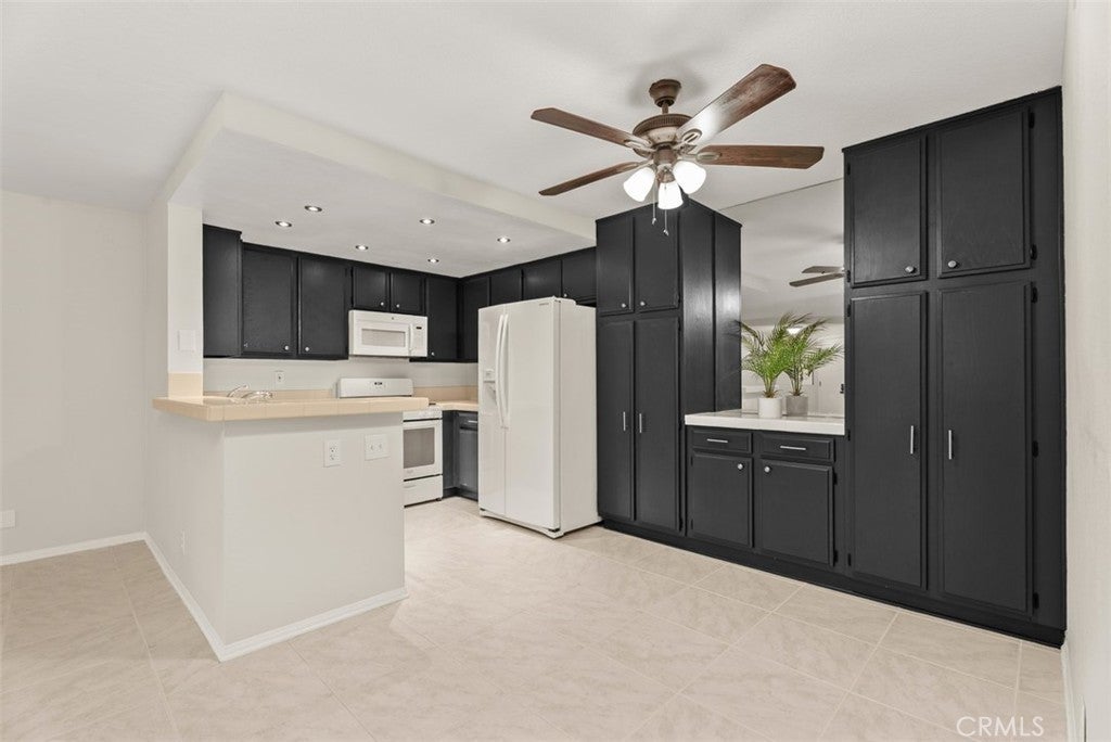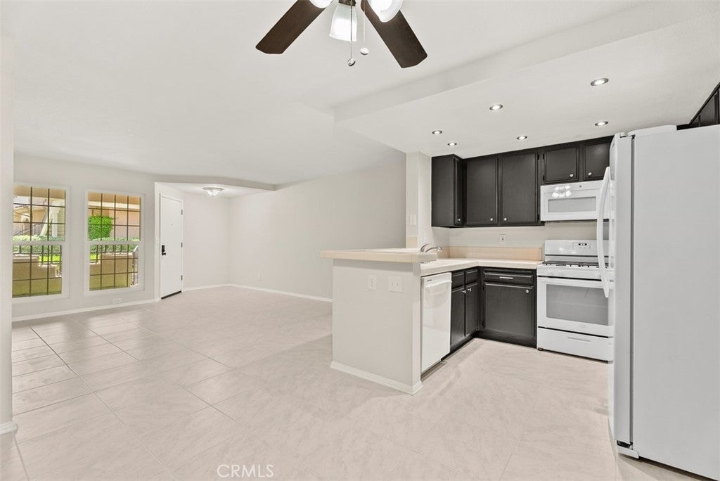 Breakfast Bar, Ceiling Fan(s), Open Floorplan, Recessed Lighting, Tile Counters, All Bedrooms Down, Main Level Primary, Walk-In Closet(s)