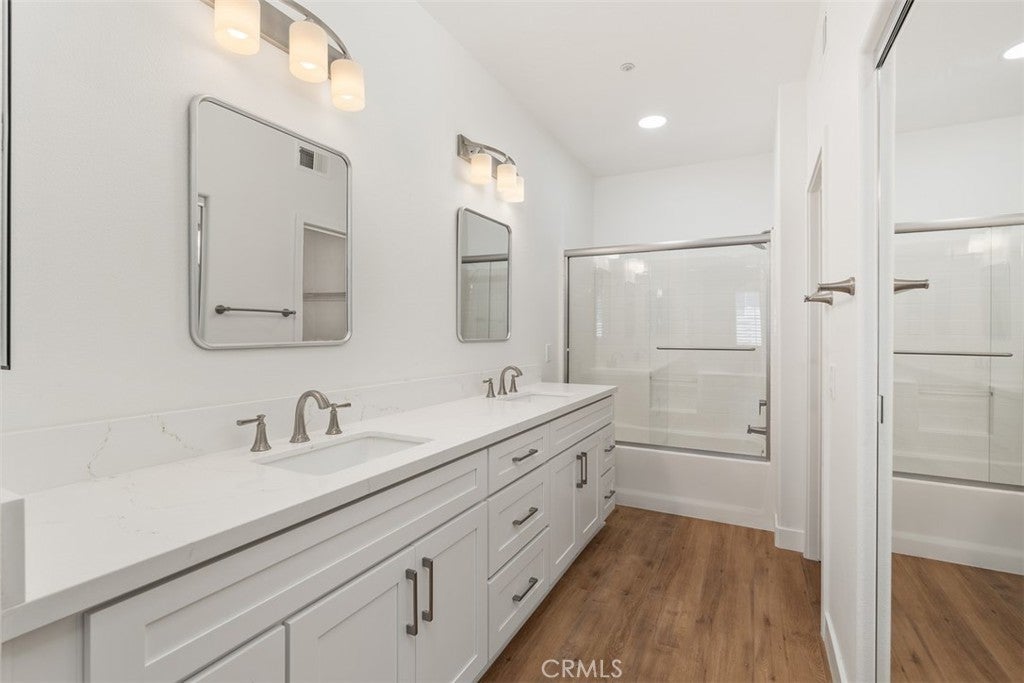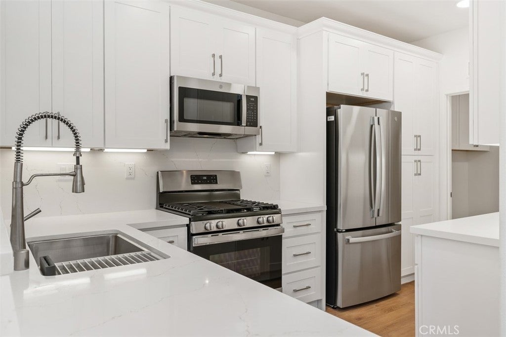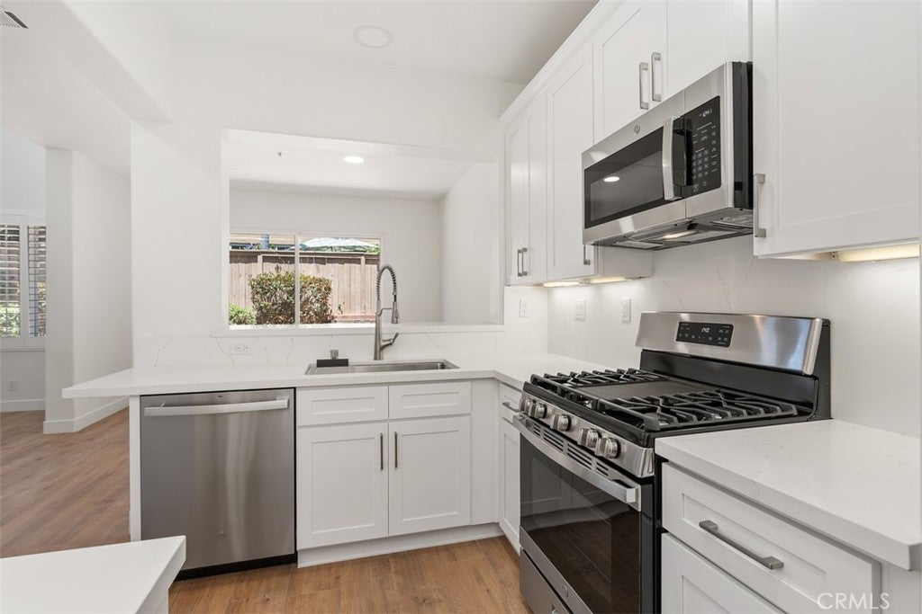 Welcome to your dream home in the heart of Irvine! This stunning three-bedroom, three-bathroom end unit townhome has been meticulously remodeled to perfection, offering a harmonious blend of modern elegance and comfortable living. Upon entering, you're greeted by the airy ambiance and sleek design, with wood laminate flooring seamlessly guiding you through the open-concept living space. The focal point of the home is the newly renovated kitchen, boasting crisp white cabinets, luxurious quartz countertops, and stainless steel appliances, including a stainless steel refrigerator, creating an inviting atmosphere for culinary adventures and entertaining guests. The cozy gas fireplace in the living area adds warmth and charm, making it the perfect spot to relax. With one bedroom conveniently located downstairs next to full bath, this home offers flexibility and convenience for guests or multigenerational living. The spacious laundry room provides ample storage and functionality, making household chores a breeze. The master bedroom features dual closets, ensuring plenty of storage space. Step outside to the expansive patio yard, perfect for al fresco dining, gardening, or simply unwinding in the California sunshine. As an end unit, you'll enjoy added privacy and tranquility in your outdoor oasis. New built in BBQ. This residence also features an attached two-car garage, providing secure parking and additional storage options. Situated in a gated community, you'll experience peace of mind and security, allowing you to fully enjoy the amenities and vibrant lifestyle of Irvine. Conveniently located near top-rated schools, parks, restaurants, and shopping destinations, this home offers the epitome of suburban living with urban conveniences at your fingertips. Don't miss your opportunity to experience the luxury and comfort of this remodeled townhome in one of Irvine's most coveted neighborhoods. Schedule your showing today and make this your new address!
