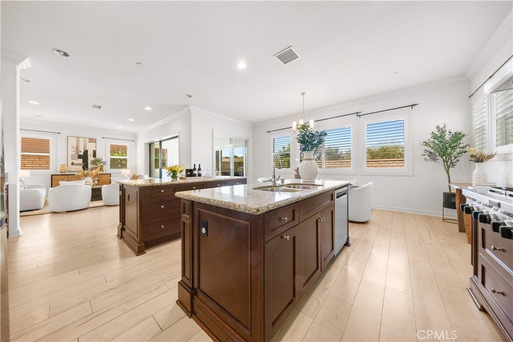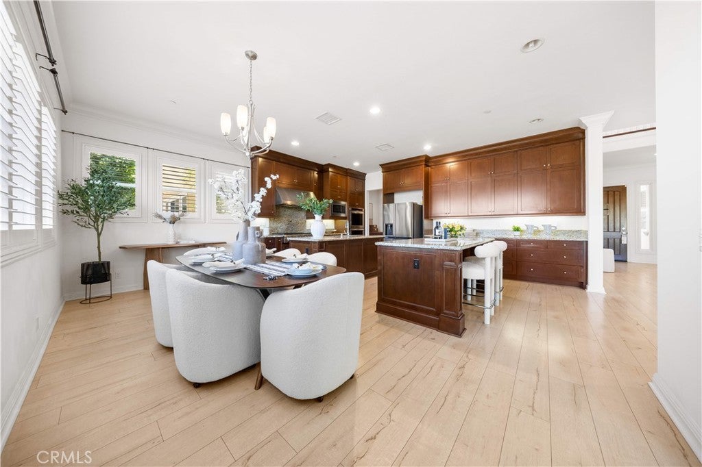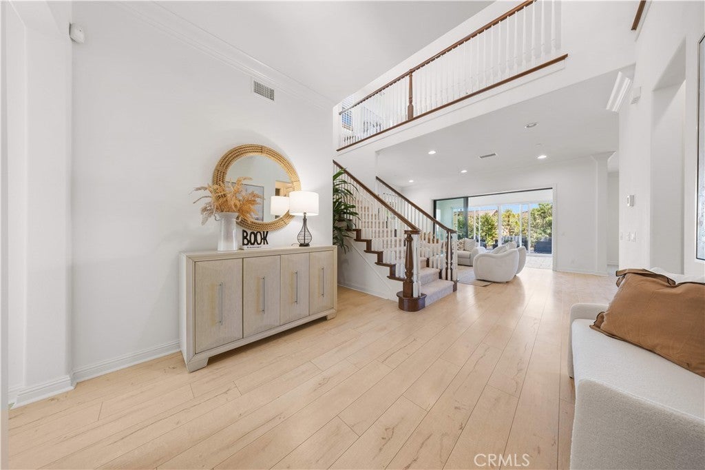 **Price Reduction!** NO MELLO-ROOS! Embrace glowing sunsets from the second floor and the peaceful, spacious loft! Welcome to this beautiful 5-bedroom, 4.5-bath home in the award-winning master-planned community of Baker Ranch, built by luxury homebuilder Toll Brothers. This home features a bright, open layout with soaring 10-foot ceilings on the first floor and 9-foot ceilings upstairs, creating a spacious and airy feel throughout.A beautiful California Room that adds both charm and an elevated living experience,its generous space a hidden bonus beyond the home’s measured square footage. The kitchen is truly the heart of the home – designed with double center islands, elegant granite countertops, double ovens, and a generous walk-in pantry. Large sliding glass doors open up to an enclosed California Room (approx. 250+ extra sqft on top of the original 3066 sqft), offering the perfect indoor-outdoor lifestyle. Upstairs, the primary suite is a true retreat – featuring dual vanities, upgraded marble counters, a separate shower, and a large walk-in closet. One bedroom with a full private bath downstairs makes it ideal for guests or multi-generational living. The backyard is professionally landscaped for low maintenance and makes a great space for entertaining friends and family. From the huge balcony and master bedroom, you can enjoy breathtaking views of sunsets, mountains, city lights, and even Catalina Island on a clear day. Community Amenities: Baker Ranch offers some of the best resort-style living in the area, including: 3 heated pools and spas, 10+ parks, basketball, tennis, volleyball, and bocce ball courts, Fitness trails, outdoor workout stations, BBQ areas, Clubhouses, dog parks, baseball and soccer fields, And miles of hiking and biking trails Prime Location: Conveniently close to shopping and dining, just minutes from Irvine Spectrum, and easy access to Hwy 5, 241, and 133.