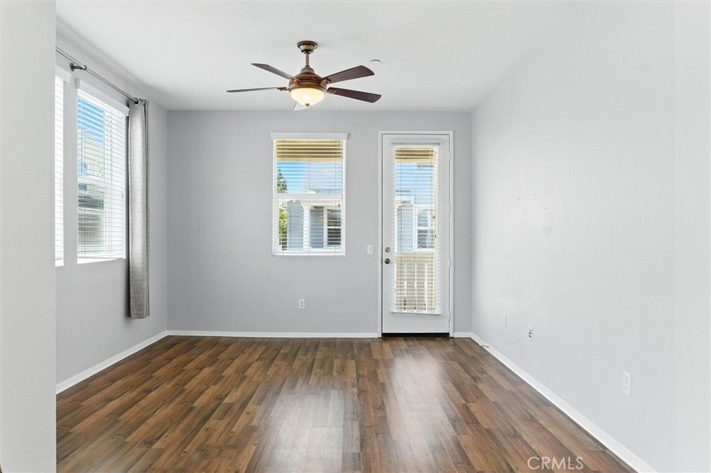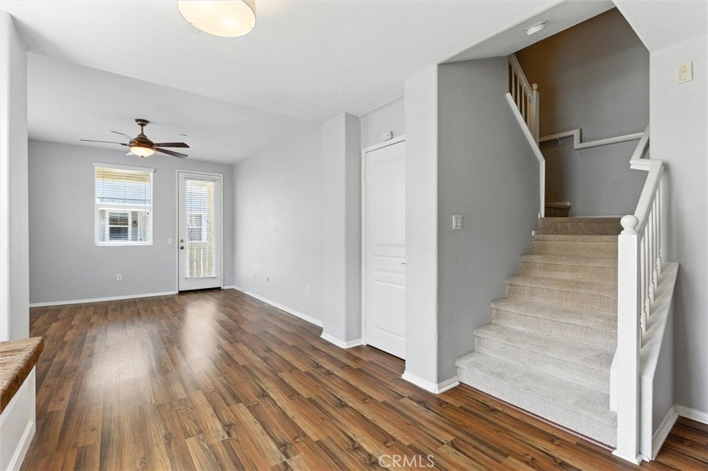 This stunning Valmont home features an open floor plan with laminate wood flooring on the main level, kitchen equipped with stainless steel appliances and granite countertops. Upstairs both spacious bedrooms include en-suite bathrooms and ceiling fans for added comfort. You’ll find a convenient stacked washer and dryer tucked into hallway closet, along with additional custom cabinetry for extra storage. The home also includes a detached two car garage with a direct access door near the stairs, plus easy access to guest parking. High Speed Internet included in HOA. Enjoy the exceptional Ladera Ranch lifestyle with access to pools, Jacuzzis, tennis courts, clubhouses, multiple parks, a skate park, and scenic hiking trails throughout the community.