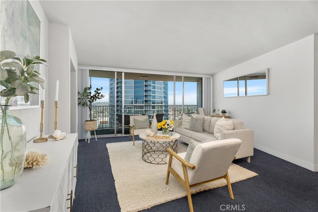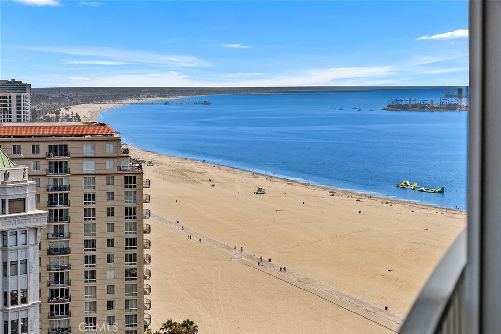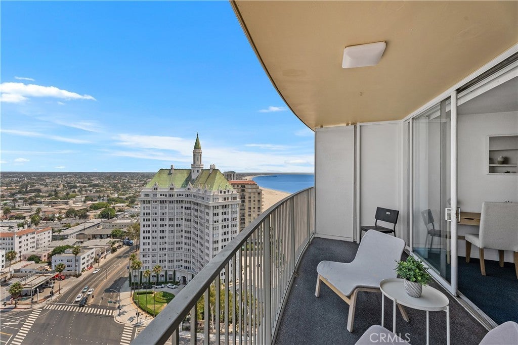 Enjoy stunning cityscape and partial ocean views from this beautifully renovated condo in the iconic International Tower on the Long Beach waterfront. This exceptional one-bedroom, two-bath unit offers floor-to-ceiling windows framing panoramic views, perfect for entertaining or relaxing in style. Picture dining al fresco on your private balcony as the city lights sparkle below, or watching the Long Beach Pride Parade right from your home. The interior features carpeted flooring, multiple closets for ample storage, and a convenient stackable washer and dryer. One assigned parking space is included. Located just moments from the beach, Shoreline Village, the marina, and vibrant downtown Long Beach, this home offers the perfect blend of luxury and convenience. Residents also enjoy premium amenities including a heated pool, fitness center, and 24-hour security and on-site management. This is a rare opportunity to live in one of the city's most desirable high-rises.