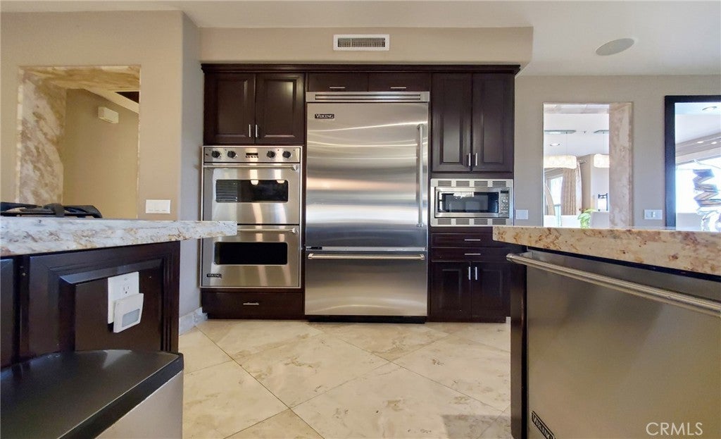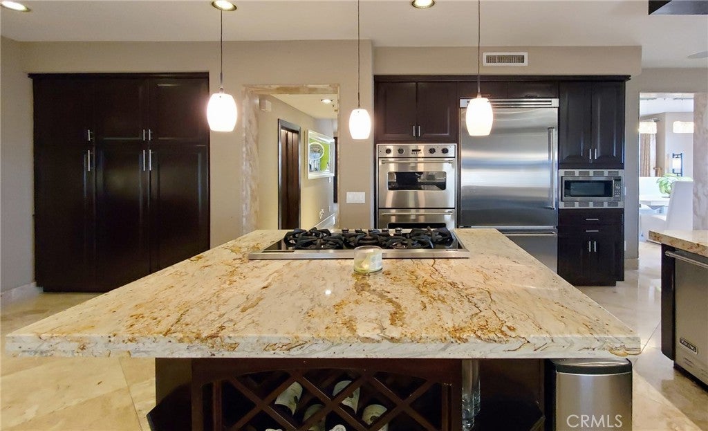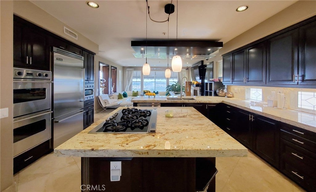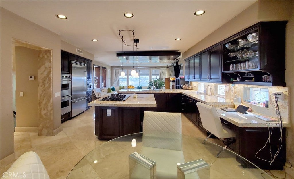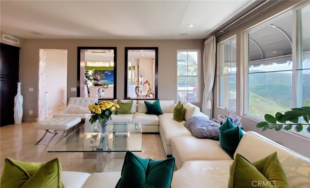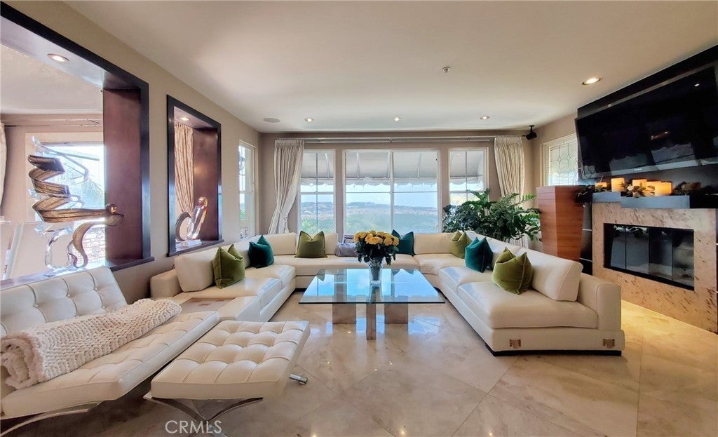 VIEWS, VIEWS, VIEWS. Welcome to 34 SUNSET COVE, the largest floor plan in PELICAN RIDGE, 'CIVITA'-' This fabulous home is located on the highest point in CIVITA, offering a private and quiet setting, dramatic view overlooking CRYSTAL COVE, pristine LOS TRANSCOS CANYON, and the beautiful PACIFIC OCEAN. On a clear blue sky day, the eyes can see as far as the Catalina Island. Spectacular sunsets can be viewed from the balcony without leaving the home. This beautiful executive home includes elegant amenities and luxury interiors at its best, with many uniquely designed and decorated features; such as 24ft X 24ft marble tiles flooring, engineered wood floor, a rare redwood staircase running from top to bottom, recessed lightings throughout, modern faucets hardwares, luxurious lighting fixtures, bathtubs walls are fully covered with granites, including the faces of bathtubs; granite countertops on all dark coffee color cabinets in kitchen as well as in all bathrooms. High-end stainless steel Viking appliances. The main level features decorated iron double door entry, living, dining, and family room with a cozy fireplace. Spacious entertainment room features a wet bar, a wine cellar can hold as many as 300 wine bottles, with access to the outdoor sea-water and heated pool, and a fireplace, quarter-inch glass panels partition run alongside the back. BBQ island features high end DCS grill and a small frid ready for just a chill out or a get-together occasion. Italian design stairs from the outside of the house, from bottom floor to main street level. The top level features a master bedroom with the retreat, the bathroom features a new tech 7 heads steam shower in addition to the bathtub, spacios office that can turn into an addition bedroom with adjacent half bath. Three car garages, 1 single and 1 double, with long panel hardwood. Two separate central AC/heat systems. Other amenities such as Olympic swimming pool, tennis courts and clubhouse are offer by the nearby New Port Coast HOA. A premium shopping center within 5 min driving features the Pavilion supermarket and Wells Fargo bank. Minutes to Fashion Island, John Wayne Airport, Crystal Cove and the world renowned 5 star resort of Pelican Hill. Easy access to free way. Look no further.
