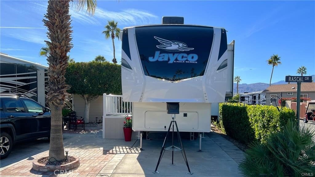 Listed Here is the Complete Package of Grant Deed Land in Desert Shadows RV Resort Packaged with this luxurious Jayco 28.5RSTS 5th Wheel! One of the best views in the resort! complete with a Storage/Shop Shed of the highest quality! Desert Shadows RV Resort offers 2 large & well-maintained clubhouses plus 3 additional satellite clubhouses, An indoor pool with a large spa and sauna, An olympic-size lap pool, A total of 6 pools, 5 spas and 3 saunas, Sunken, lighted tennis courts, 8 Pickle-ball courts, An indoor shuffleboard pavilion, 16,000-square foot San Jacinto room with floating hardwood dance floor, and a professional stage, plus a large kitchen, A 3,000-square foot “Our Gang” party room and lounge with a giant fireplace and kitchen, A huge party terrace with mountain views, A fully equipped fitness center, A dance studio, Library, Billiards room, Horseshoe pits, Several laundries, restrooms and bath facilities, Card & hobby rooms with Pottery Kiln, A putting green, Organized fitness activities, Daily activities including dances, dinners and entertainment, Wi-Fi and wired broadband Internet access. Close to everything! The Best Kept Secret in Coachella Valley! Must See this Resort! Luxurious 2021 5th Wheel available as a package!
