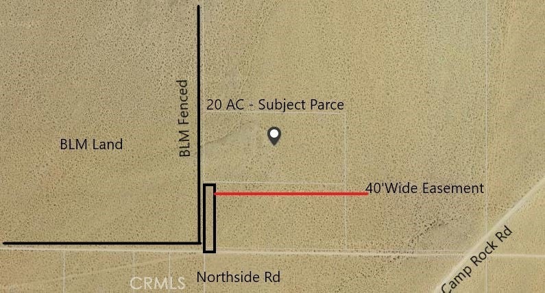 20 AC of quiet secluded land. Mostly flat, with a very slight upward slope to the NE. Excellent views for the valley and surrounding rock formation features. 160 AC parcel abutting on the west is recently fenced in BLM land, which adds privacy and seclusion. The main access road in Northside Rd, which runs East/West. The lot is accessed by recorded easement on the west 40 feet of the lot to the immediate south. The lot is rectangular in shape and is approximately 1/8 mile by 1/4 mile. Larger parcels such as this have a much wider land uses making this ideal for nearly any type of home or business operation. Jurisdiction for this property is the County of San Bernardino. ****NO STREET ADDRESS HAS BEEN ASSIGNED. Numerical is only a reference and is part of the APN****