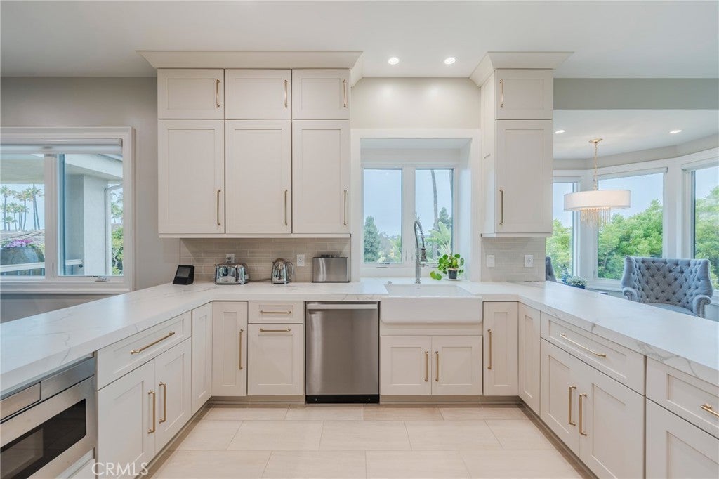 Welcome to your Upper-Level Luxury Penthouse, ideally situated in the Prestigious Guard-Gated Community of Sea Island. Enjoy breathtaking Views from every room—including Sunsets over Catalina Island, Upper Newport Bay (including the Newport Aquatic Center), the Newport Beach Country Club golf course, and sparkling city lights. This rare offering is the only building in Sea Island without common walls, allowing for significantly more windows and abundant natural light throughout. Enter through Gorgeous Custom double Dutch doors into a Grand Formal Entry that sets the tone for the Spacious, Elegant living that awaits. Spanning approximately 2,791 sq. ft. of Single-Level Living, this Gorgeous 3-Bedroom, 3.5-Bath Residence is an Entertainer’s Dream, featuring Soaring 10- and 12-foot ceilings and refined Designer finishes.The Chef’s Kitchen boasts Custom Cabinetry and hardware, Neolith Estatuario countertops, Sub-Zero column Fridge and Freezer, Wolf 36” 6-burner gas range, and a Built-in microwave drawer. The Open-Concept layout flows seamlessly between the Kitchen, Dining area, and Living room—ideal for entertaining. Each Bedroom features an En-suite Bath. The Oversized Primary Suite offers stunning Views and Patio access, a spacious Walk-in Closet with Custom Built-ins, and a Spa-inspired Bath with Dual Vanities, private Commode, Soaking Tub, and Large Walk-in Shower wrapped in Marble and Mosaic tile. The Second Bedroom is generously sized—ideal as a Secondary Primary Suite—with Views of the 13th hole and the quiet, smaller of the two community Pools. Its En-suite Bath includes a floor-to-ceiling marble subway tile Shower and Custom glass enclosure. The Third Bedroom, located at the front of the unit, features a Luxurious marble Walk-in Shower with multiple Shower Heads, Custom tile floors, and a Designer Vanity. Additional Highlights include a Stylish Guest Powder room with Gorgeous dimming sconces for ambient Mood lighting, triple-pane Casement Windows, LED recessed Lighting throughout, Professional-grade low-voltage AV wiring, in-ceiling Speakers, and an interior Laundry Room with pre-wiring for a private Elevator. Direct stair access leads to the attached 2-Car Garage.Community amenities include 24-hour security, Tennis courts, two Pools and Spas, and an Elegant Clubhouse. PRIME location near Scenic Walking Trails and just minutes to Fashion Island’s world-class Shopping and Dining.