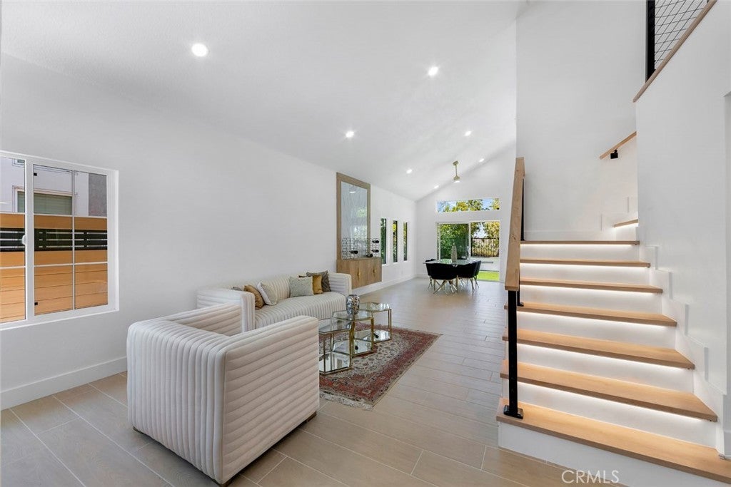 Presenting the pinnacle of Robison Ranch, this magnificent cul-de-sac property has been extensively upgraded. It now includes a permitted junior accessory dwelling unit (JADU), an additional 1.5 baths, a loft, and an expanded gourmet kitchen—adding approximately 500 square feet for a total of 2,613 square feet on of the largest home in the neighborhood. This eco-friendly home boasts top-rated energy efficiency and independence with recently added a fully paid-off solar system, a new energy-efficient air conditioning unit, a tankless water heater, double-glazed Energy Star windows, and new plumbing and electrical systems throughout the house. This masterpiece features a modern façade, a unique driveway, and tactile finishes, complemented by a wood looking maintenance free fence and a floating entrance with a castle-style custom modern pivot door. The expansive layout seamlessly flows from formal and private areas to a stunning backyard with a well-designed BBQ area, modern pergola, fire pits, and a soothing waterfall. The designer powder room includes a ceiling-mounted faucet on a floating vanity, illuminated by modern pendant lights and hidden LED lights that draw attention to the decorative tile on the accent wall. A beautiful addressable LED staircase leads to an upstairs loft with modern cable railing. The large master bedroom, with its vaulted ceiling and sound-insulated modern back paneling, features a large barn door opening to a master bathroom with a spacious walk-in shower, a relaxing Japanese jacuzzi tub with a dazzling view, and a well-planned water closet and master walk-in closet. The downstairs bedroom offers an ensuite bathroom and a sliding patio door for private outdoor access. The JADU includes a kitchenette with an integrated sink and dishwasher combo, plus a private bathroom with a passageway to the main house—making it perfect as an independent suite or part of the main home. The new chef-grade kitchen features Dacor® built-in appliances, a gem-looking waterfall island with microwave drawer and wine cooler, and stunning modern LED lighting. The impressive high-ceiling living room and dining room connect to a pleasant family room with a marble slab stone fireplace with large opening onto a quiet custom design backyard. The Robison Ranch community offers an unparalleled lifestyle with a private pool, playground, tennis, pickleball, basketball, and BBQ areas, along with easy access to top-rated schools, parks, shopping, and dining.