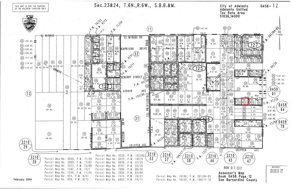 Discover the perfect blend of convenience and opportunity with this spacious 2.12-acre parcel (APN: 0458-126-52-0000, SB County, SE Corner Coordinates: 34.592645, -117.456219) located just minutes from Highway 395. Ideally situated near shopping centers, restaurants, and local schools, this prime location offers both accessibility and potential. Whether you're looking to build your dream home, establish a small business, or invest in future development, this property provides a versatile canvas in a rapidly growing area. Don’t miss out on this rare opportunity to own land with such a desirable combination of size, location, and value.