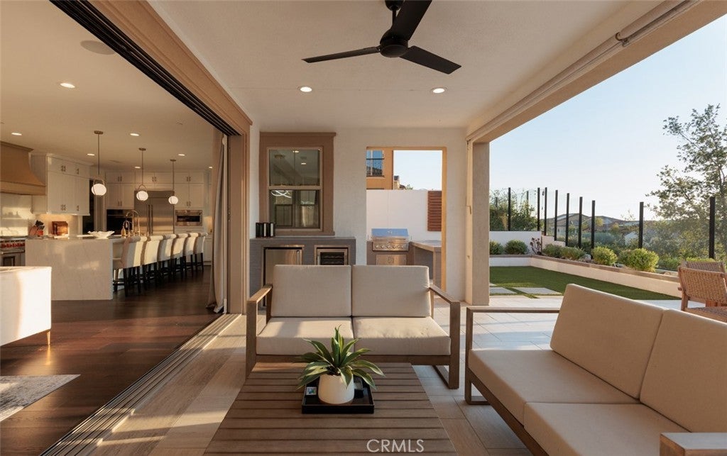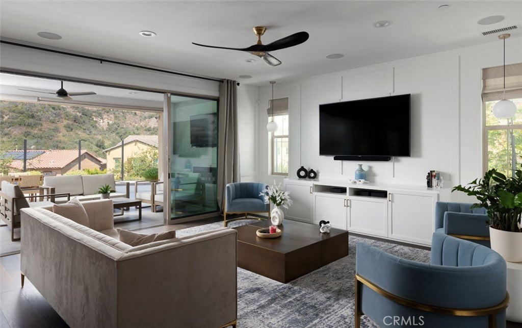 Elevated Luxury in the Hills of Mission Viejo - Welcome to 12 Cielo Prado, a rare Skyridge Collection Residence 2, built by CalAtlantic, redesigned in 2025. Available unfurnished or furnished—please inquire for pricing. On a prime corner lot with city lights and hillside views, it blends privacy, elegance, and indoor-outdoor living. In one of Mission Viejo’s exclusive hillside enclaves, this home boasts over $500,000 in upgrades. The flexible floor plan includes four bedrooms with a main-level suite, three bathrooms, a grand foyer, a bonus room, and a covered California Room. Inside, find Anderson Tuftex hardwood flooring, custom window treatments, Calacatta marble countertops, wainscoting, accent walls, designer lighting, ceiling fans, fresh paint, surround sound, a Falsken water system, and fireplaces indoors and out. The chef’s kitchen features a Calacatta marble waterfall island, full-height backsplash, shaker cabinetry with soft-close drawers, and premium appliances: Sub-Zero refrigerator, Wolf 6-burner range with griddle, double oven, microwave, Asko dishwasher, Sub-Zero beverage fridge, custom hood, and walk-in pantry. Outside, a wraparound backyard oasis with Ipe wood paneling and a water feature welcomes you. The backyard offers a California Room with roll-down shades, pre-wired flat-screen wall, linear fireplace, and ceiling fan. Enjoy a custom BBQ island, sink, wine fridge, lush landscaping, artificial turf, Sonos and Sonance sound, and a lounge alcove with fireplace. In the Saddleback Valley Unified School District, near Whiting Ranch, 241 Toll Road, Saddleback Church, Town Center Drive, and 20 minutes from Laguna Beach, this is Southern California living at its finest.