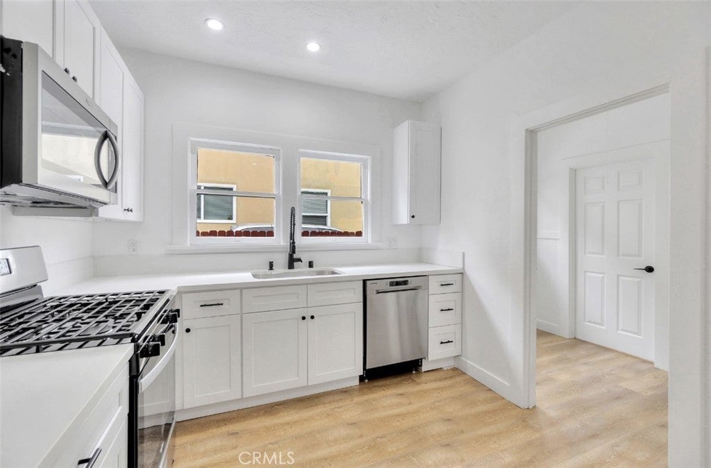 Gorgeous, Remodeled 2bed, 1 bath home in sought-after Plaza neighborhood of San Pedro. This beautiful craftsman architecture, offering a unique blend of timeless elegance and modern convenience. Meticulously remodeled, light, & spacious. Designed to provide a comfortable and stylish living experience. Step inside and be greeted by the sleek and modern white shaker kitchen cabinets, perfectly complemented by under-mounted sinks and top-of-the-line stainless steel appliances. The kitchen is a chef's dream, providing ample space for culinary creations and entertaining guests. Convenience is key with in-unit laundry facilities, ensuring ease and efficiency in everyday living. The thoughtfully designed floor plan offer plenty of natural light, creating an inviting atmosphere throughout. This duplex unit also offers practicality with a 1 car garage space (detached), allowing for easy access and secure parking. The long driveway with new concrete provides additional parking space for residents and guests alike. Nestled in The Plaza neighborhood which offers a vibrant community with a variety of amenities, including shopping centers, restaurants, parks, and more. Nearby schools and easy access to major transportation routes. Mind-blowing West Harbor project being built nearby with a massive $500 million private development replacing the famous but dated Ports O’Call with 42-acres of retail and 5 times the outdoor space of the Grove. Welcome home!
