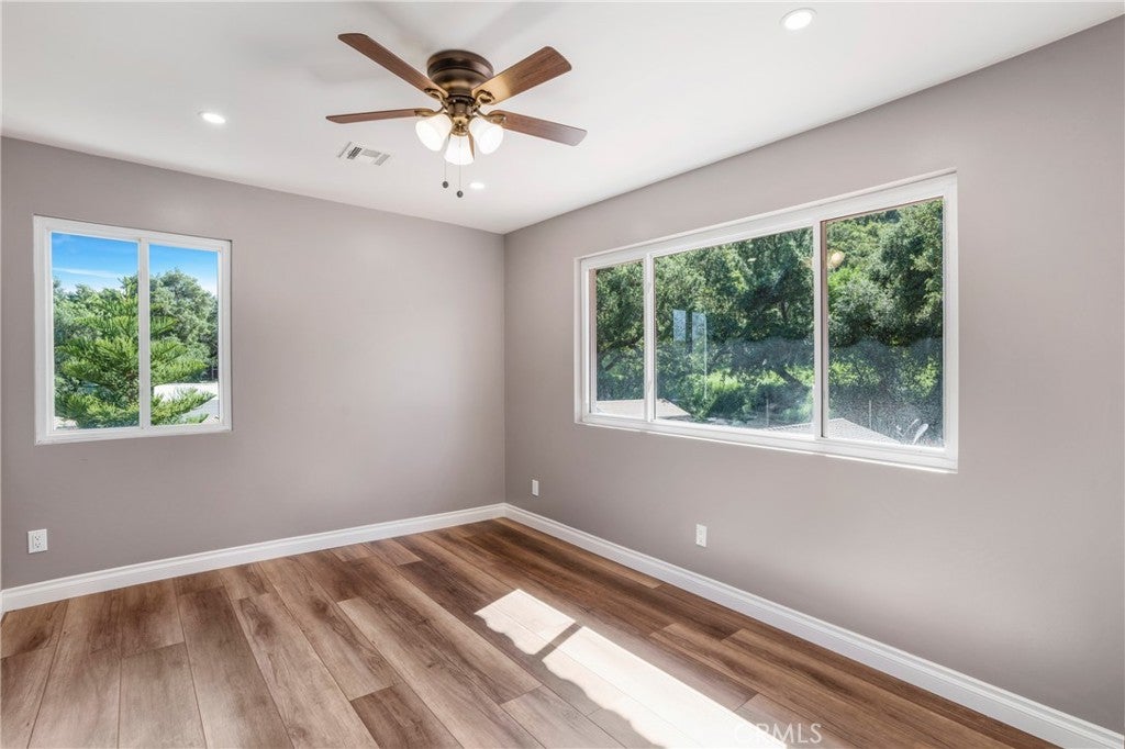 MORE FOR YOUR MONEY HERE! Beautiful 18,000+ sq ft Horse Property in Orange County on three lots! MAIN HOUSE with 3 Bedroom 2 bath and GUEST HOUSE with bath for a total of 4bd/3ba. The adjoining lot has a paddock and 13 stalls that consist of 3 box stalls and 10 pipe stalls with a breezeway. There is also a tack room, a grain and hay room and an additional locking storage room. TEN+ parking spaces, a couple covered spaces, PLUS 2-car garage. Adjacent to riding trails and open spaces, this property is perfect for equestrians and nature lovers alike. Located just minutes from "the city" this improved horse property features multiple lots and is nestled amongst rolling hills and oak trees. This pretty 2-story home boasts an oversized ground floor primary bedroom, a spacious living room, completely remodeled open concept kitchen and dining room with a real wood-burning fireplace with raised hearth. On the second level you'll find two additional bright sunny bedrooms and a gorgeous upgraded bathroom. There is also a great balcony with mountain views, perfect for morning coffee and waving to the equestrians sauntering by. In the backyard, tucked in the corner and draped in bougainvillea is a sweet little casita/guest house/ADU. If you enjoy entertaining, you'll love the sizable yard with built in barbecue and the wonderful covered patio with ceiling fans, beautiful brick arched patio windows and Saltillo tiles. Rare turnkey horse property at end of lane/corner lot. Plenty of parking and room for RV. Low Tax Rate, NO HOA, NO Mello Roos. Income producing, permitted Guest House tenants have now moved out. THREE LOTS, TWO APN numbers.