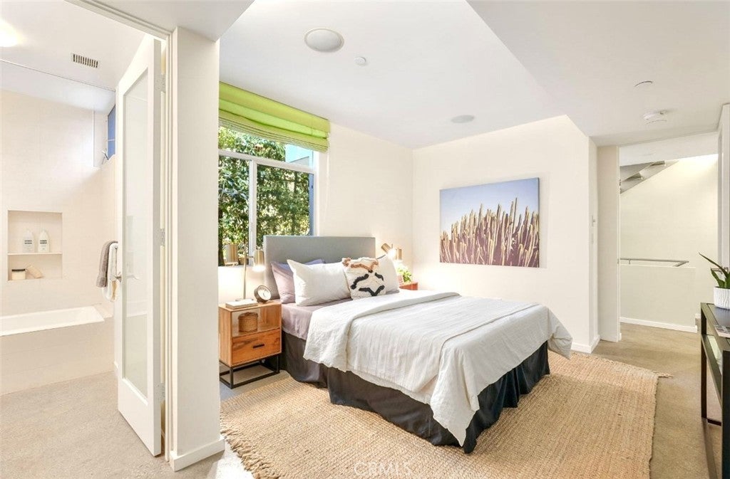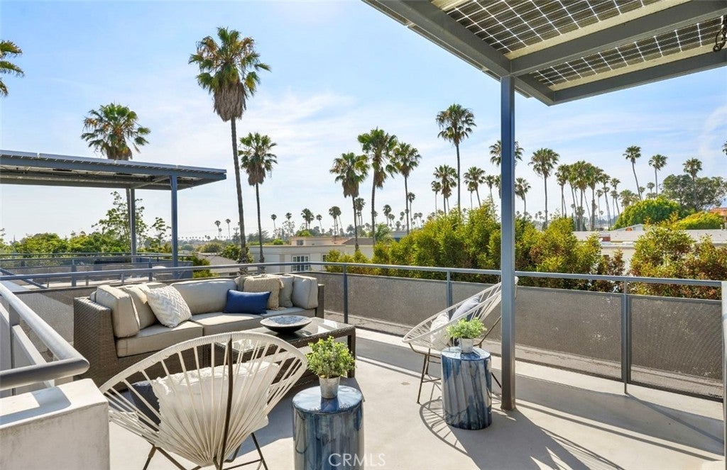 Nestled in the heart of Santa Monica, we welcome you to Santa Monica's First Sustainable Townhome Community. Experience modern eco-conscious living in this tri-level architectural masterpiece designed by award-winning architect Jesse Bornstein. Featured in the LA Times, this exclusive 5-unit townhome complex is ideally situated in the highly sought-after Wilshire Montana neighborhood, just blocks from Erewhon, Whole Foods, Trader Joe’s, Palisades Park, the Santa Monica Stairs, and the iconic Santa Monica Beach. Inside, experience a bright and spacious 2-bedroom plus loft, 2.5-bathroom home offers the perfect blend of luxury, sustainability, and convenience. The entry level features two generously sized bedrooms, each with ensuite bathrooms and custom California Closets. The primary suite opens to a serene private-use patio, ideal for gardening, yoga, or morning coffee. A stackable washer/dryer is conveniently located near the bedrooms. With an abundance of natural light, this level boasts dramatic ceiling heights, a stunning double-sided bio-ethanol fireplace, and an open concept layout perfect for entertaining. Enjoy the gourmet kitchen with Viking appliances, a formal dining area, a powder room, and a veranda for seamless indoor/outdoor living. Ceiling surround sound speakers elevate your movie nights. The loft level is comprised with a versatile space ideal for a home office, fitness studio, or creative retreat. Work your way up to sweeping panoramic views on the rooftop deck, showcasing DTLA’s skyline to the mountains and west to the Pacific Ocean. Additional highlights include a private direct-entry oversized 2-car garage, with Tesla EV charging station, fully paid solar powered system with 10 panels, secure, code-controlled access, and top-rated schools: Franklin Elementary, Lincoln Middle, and Santa Monica High. This one-of-a-kind sustainable townhome offers unparalleled living in one of Santa Monica’s most vibrant and walkable neighborhoods.