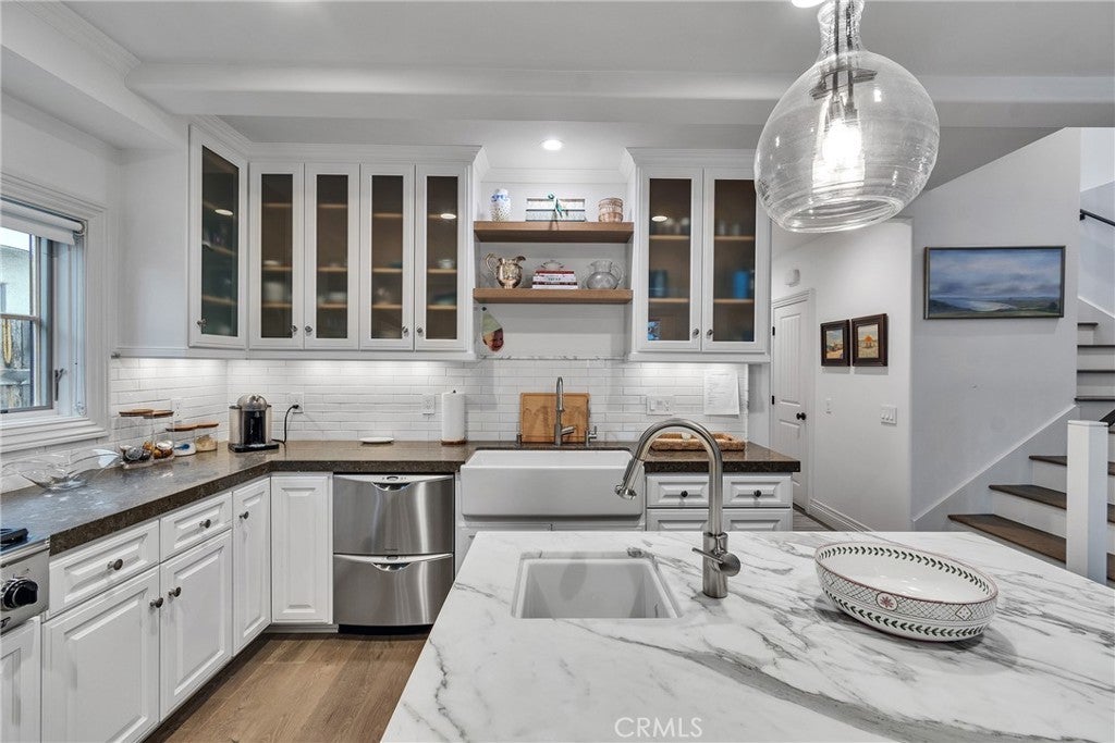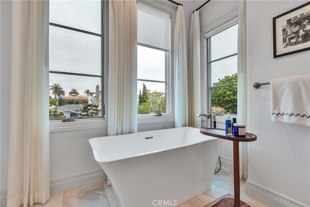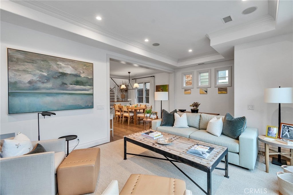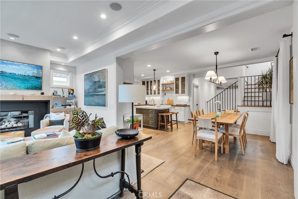 Located in the heart of Corona Del Mar Village, on one of the best streets, is this exquisite front unit 3 bedroom, 2.5-bathroom residence offering approx 2000 sq feet ( per tax)of casual luxury living,and meticulous attention to detail. As you step inside, you'll be greeted by an abundance of natural light and an airy ambiance, thanks to bi-folding glass doors that seamlessly connect the living room to the large front patio. Perfect for indoor-outdoor entertaining or simply soaking up the California sunshine. The living room boasts a cozy fireplace with custom cabinetry and mantle, creating a warm and inviting atmosphere for gatherings with friends and family. The open floorplan effortlessly flows into the dining room and kitchen, featuring designer-appointed finishes. Unleash your culinary skills in the gourmet kitchen, equipped with natural stone countertops, high end appliances, and a convenient breakfast bar. This home offers an oversized bedroom downstairs and full bath. The master bedroom suite, which has an expansive walk-in closet and a luxurious en-suite bathroom with dual vanities and a walk-in shower and custom soaking tub also has a balcony to view the sunsets. Other highlights of this stunning home include a 1 car garage with carport and patio off the back door leading to the garage. Located just a short walking distance from Grant Howard Park which is fun for dogs, and children in the play area and also features a community center. Renowned restaurants and easy access to Corona del Mar Village and the beach. Don't miss this fantastic opportunity to make this stunning home yours. TREMENDOUS PRICE REDUCTION