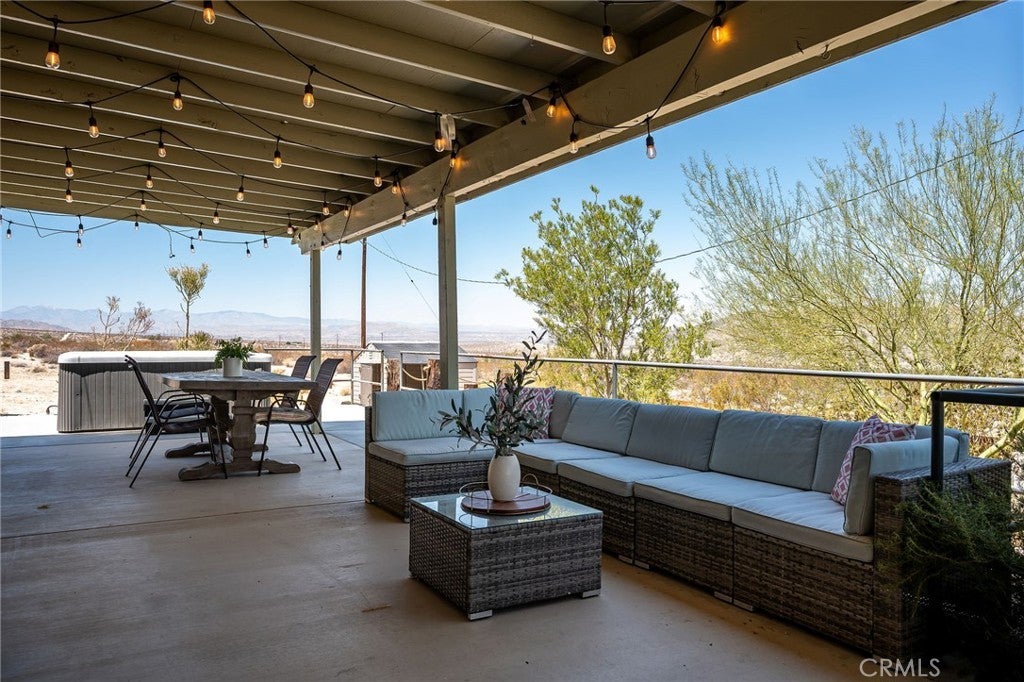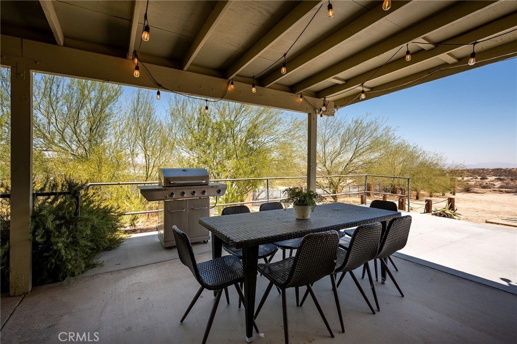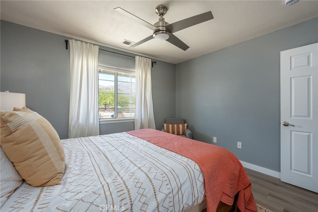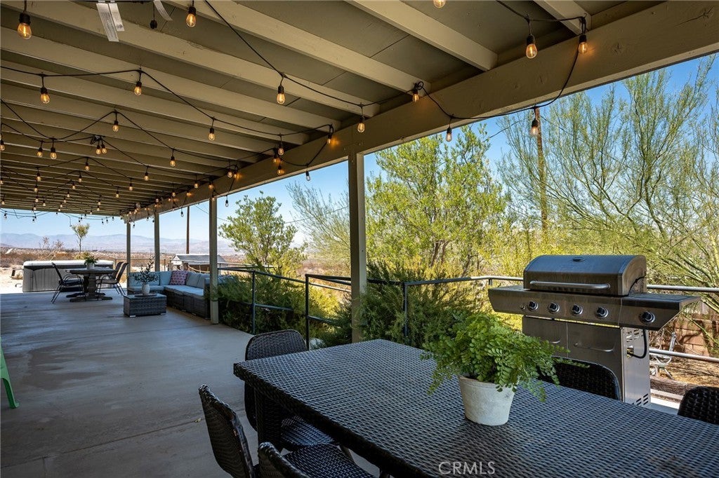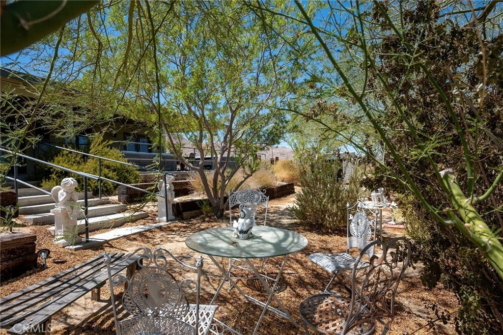 Welcome to your desert oasis in 29 Palms! Perfectly situated in the sought-after Sherman Heights area and just minutes from Joshua Tree National Park, this turnkey 4-bedroom, 2-bathroom home offers 1,663 sq. ft. of stylish living on a beautifully landscaped 1.25-acre lot. Whether you’re searching for a primary residence, weekend escape, or high-performing short-term rental, this property delivers comfort, design, and investment potential in one exceptional package. The open-concept living area, anchored by a cozy fireplace, flows seamlessly into the updated kitchen with custom cabinetry, breakfast bar, built-in microwave, and electric oven, while the dining area’s bay window frames sweeping desert views. The spacious primary suite features French doors to the patio, wood-look laminate flooring, dual vanities, and a luxurious soaking tub set beneath picture windows for stunning mountain vistas. Three guest bedrooms, indoor laundry, ceiling fans, dual-pane windows, central HVAC, and evaporative cooling ensure year-round comfort. Outdoors, mature Joshua trees, palm trees, cacti, and desert flora are arranged among rock riverbeds, walking paths, and multiple shaded seating areas, complemented by a putting green, hot tub, outdoor shower, and built-in BBQ island. The converted 2-car garage, now a game room with insulated doors, adds versatility. Currently operating as a successful STR, the home is offered fully furnished with potential annual gross revenue over $74,000 and cap rates up to 8.5% (self-managed) or 7.0% (professionally managed), making it an ideal choice for those seeking a proven income property, a serene getaway, or a unique desert home in one of the area’s most desirable locations.