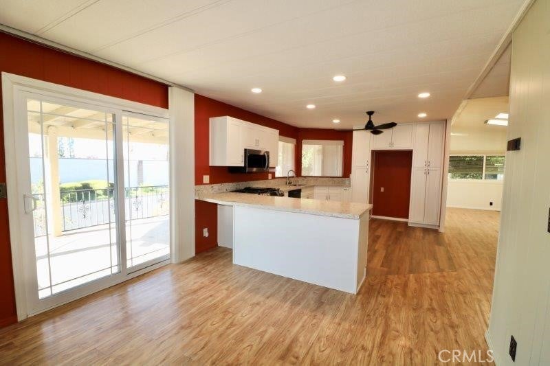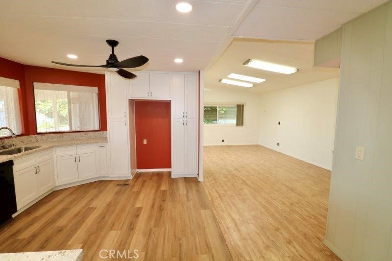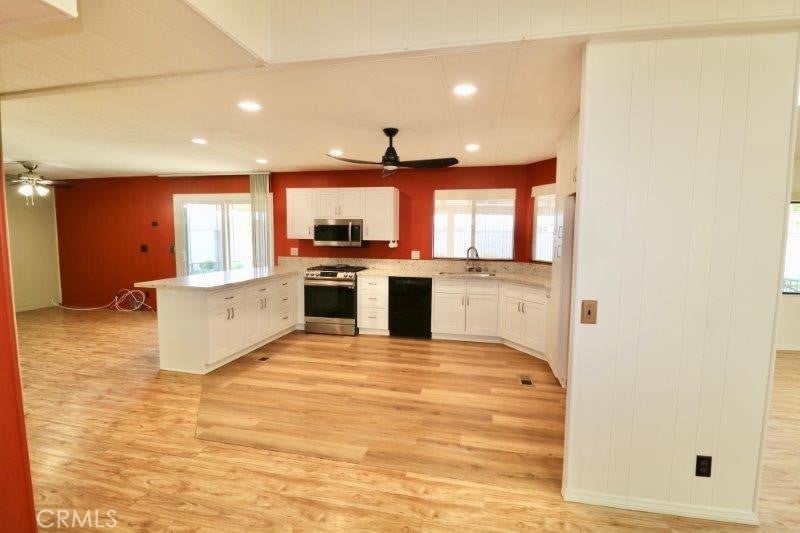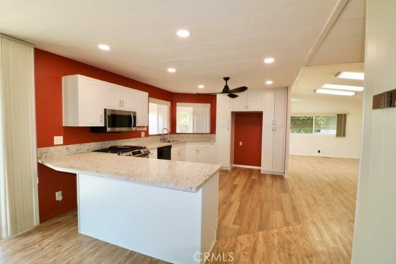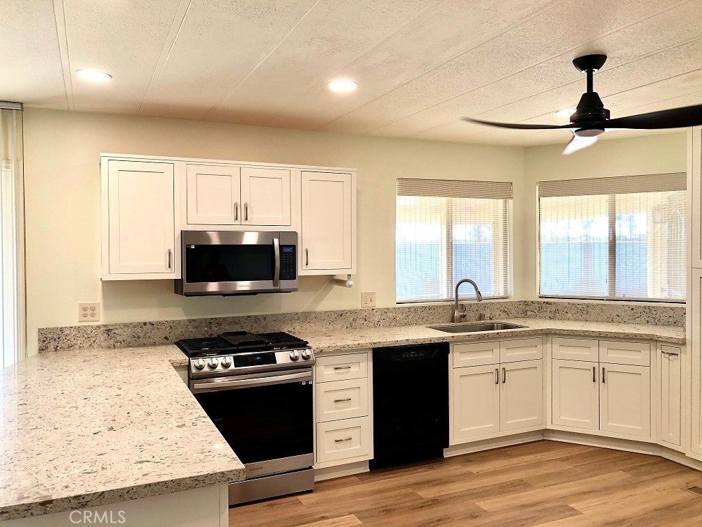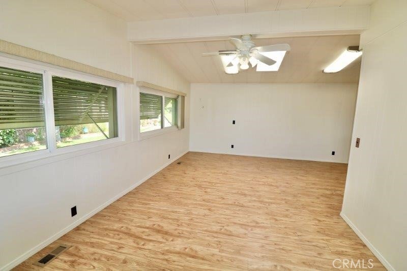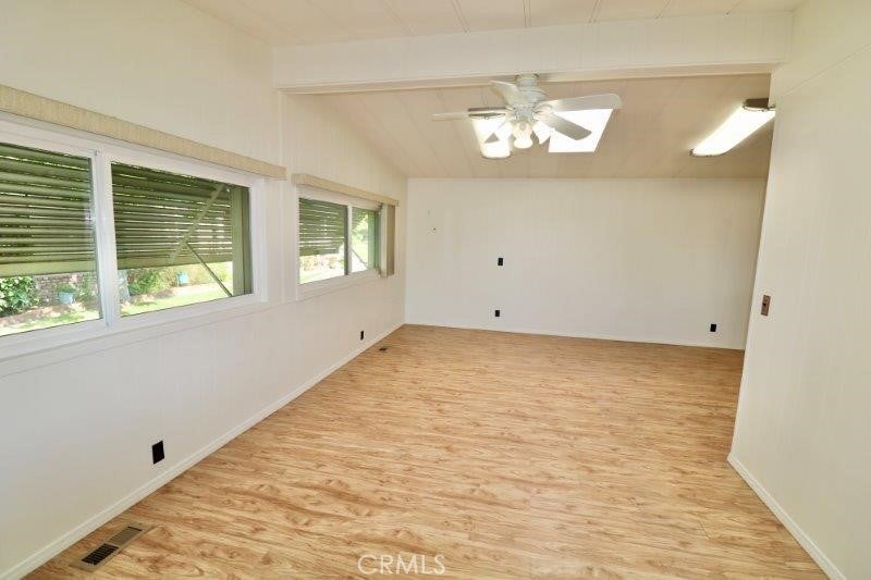 Senior Park Community 55+...Perfect opportunity to buy this beautiful updated home! This beautiful home features 2 bed / 2 full bath open floor plan, with laminate flooring throughout. A spacious living room features large windows allowing for plenty of natural light and a view of the lush greenbelt. The newly remodeled open concept kitchen features newer stainless-steel appliances, soft closing cabinets and beautiful quartz countertops. Just off the kitchen is the den which opens onto the patio area perfect for entertaining family and friends. The large master bedroom features two closets, in suite bath with dual sinks and tub shower combo. Located down the hall is the guest bedroom and full bath with walk in shower. Extras include, updated energy efficient windows, ceiling fans, large custom storage shed. Look no further schedule a tour today!