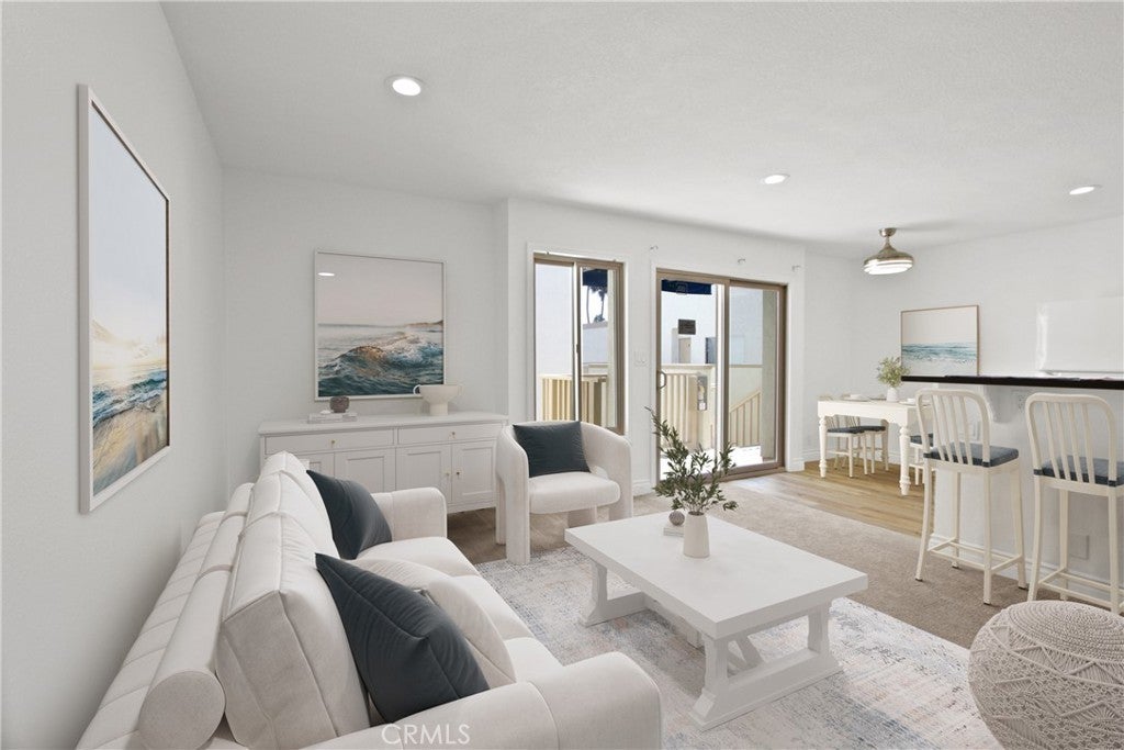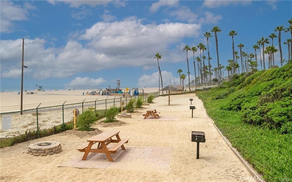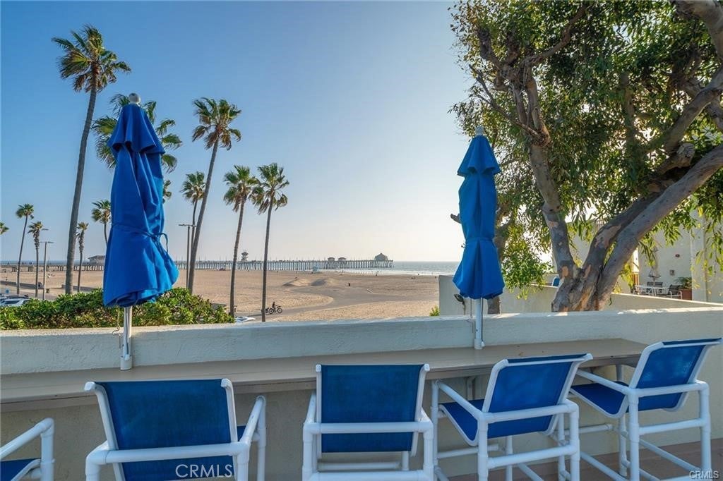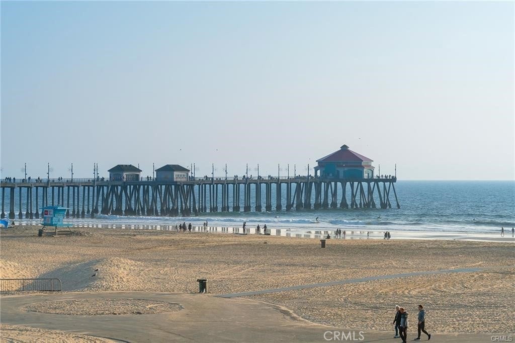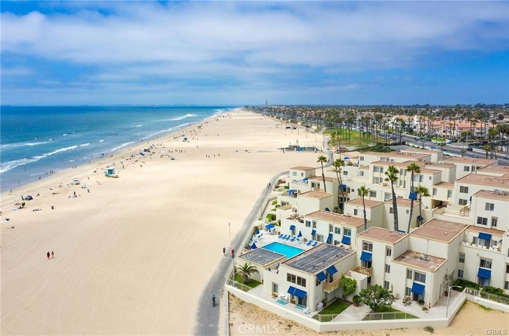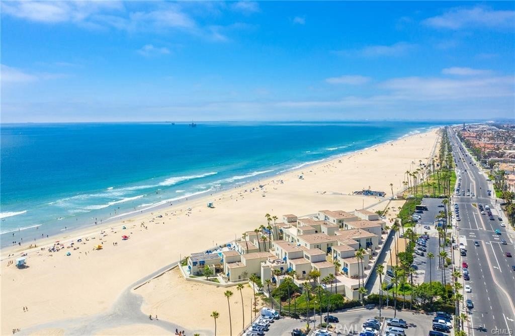 This exclusive lease opportunity offers the ultimate Beach House on the Sand in the heart of world-famous Surf City—Huntington Beach. Located in the coveted Huntington Pacific, the only beachfront development in the area, this exquisitely remodeled unit is just steps from the white sandy beach. Inside, you will find newer wide plank LVT flooring, plush carpet in the living room and staircase, an all-white kitchen with ample storage, a breakfast bar, and a dining area with a modern light fixture that converts to a ceiling fan. The main floor features a half bath and a deep under-stair storage closet, while upstairs boasts two generously sized bedrooms and a shared hallway bathroom. Fresh designer paint and upgraded baseboards add to the home's appeal. The guard-gated community offers resort-style amenities including beach access, pool, sauna, clubhouse with kitchen, panoramic ocean and sunset views, private BBQ areas, fire pits, multiple outdoor showers, two large laundry rooms, a workout gym, and assigned covered parking with a storage cabinet. Just steps from the HB Pier, top-rated restaurants, shopping, and luxury resorts—this is coastal living at its finest.
