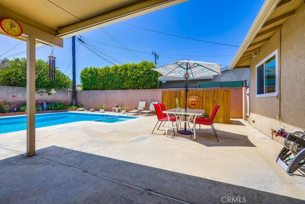 Well Maintained Pool Home on a Beautiful Tree Lined Street- Welcome to this charming 3-bedroom, 2-bath single-level home offering 1,299 sq. ft. plus over 300 sq. ft. of additional living space from a sunken family room addition completed in a workmanlike manner about 50 years ago. Enjoy a sparkling pool and spa, with a finished pool shed complete with wall A/C, a new pool pump, and a recently serviced spa heater are perfect for year round entertaining. Built in the mid 1950s, this property blends timeless character with everyday functionality. The kitchen offers ample cabinet storage and natural light. The primary bedroom has its own en-suite bathroom and large closet, while the other bedrooms are well sized for comfort and versatility. There are original hardwood floors under the carpeting, newer A/C, Heater, and dual pane windows help keep this house comfortable all year long. The direct access 2-car garage offers laundry hookups and convenience. Set on a beautifully tree lined street close to schools, parks, shopping, and dining, this well loved home is ready for its next chapter.