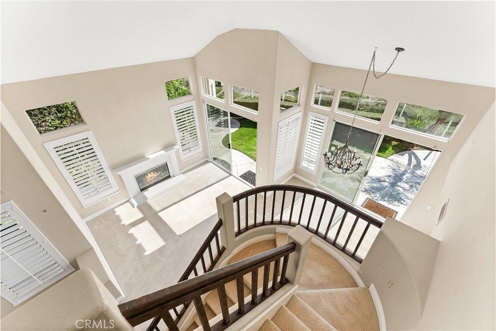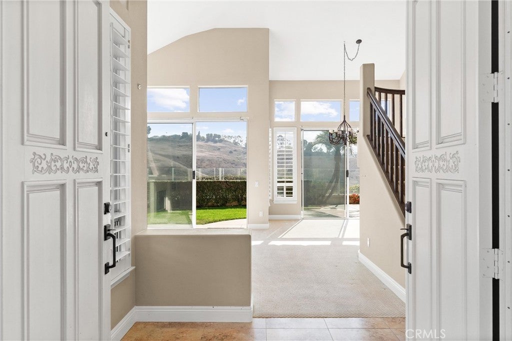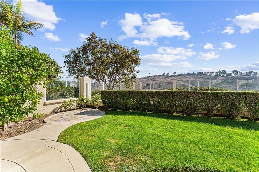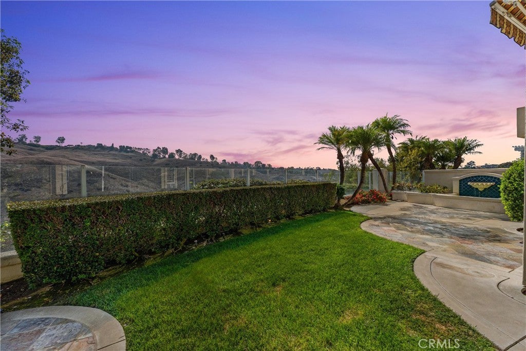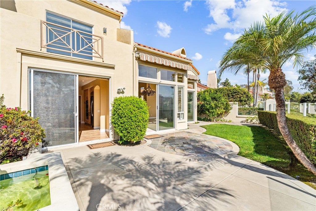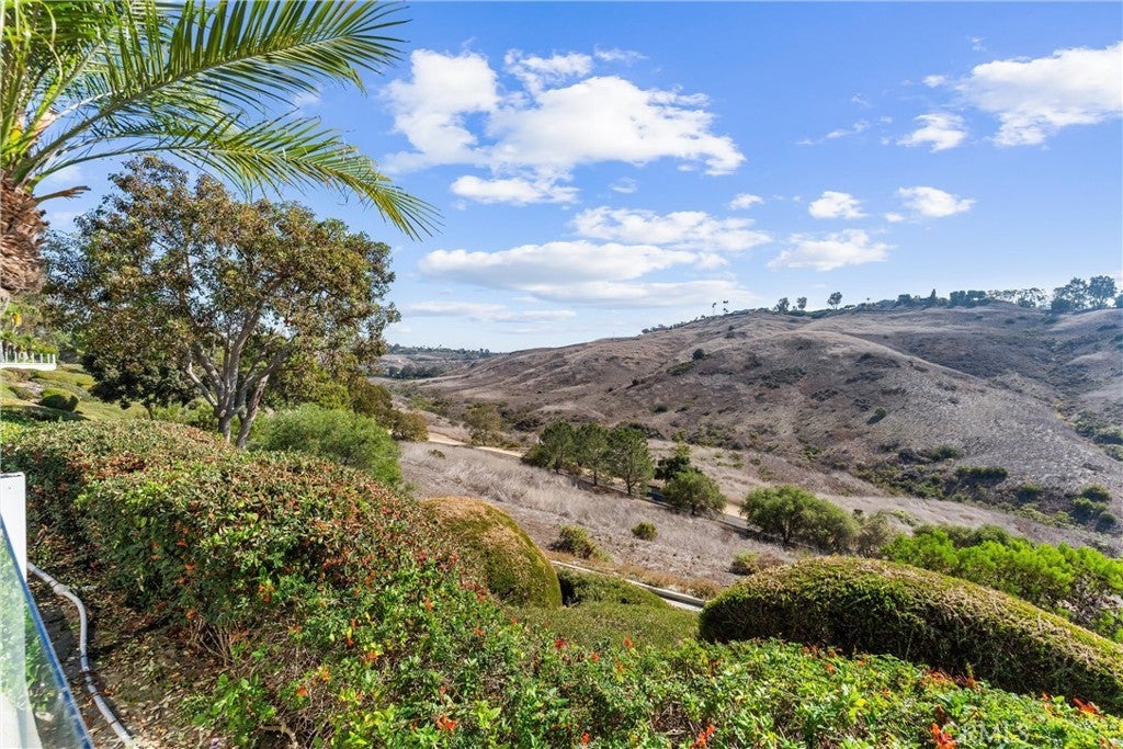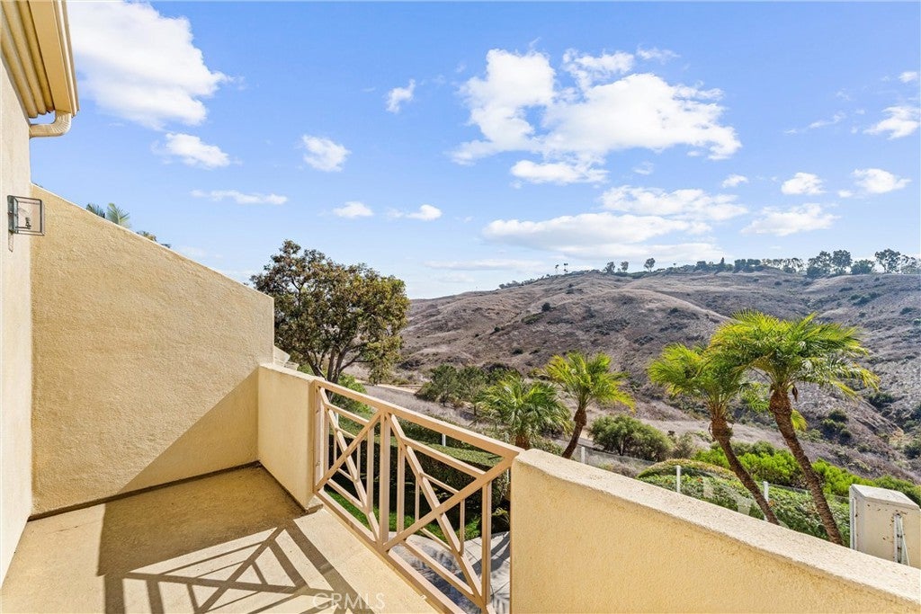 RESORT STYLE LIVING at its finest in the gated community of Siena in Marina Hills. This home is in an incredible location within the community. The private courtyard with a gentle water feature offers a warm welcome. Beautiful, PANORAMIC canyon views greet you as you enter through double doors. Soaring ceilings, abundant natural light and open floor plan blend indoor comfort with outdoor beauty. This 3-bedroom home includes a convenient downstairs bedroom or office and a full bathroom. The light-filled living and dining areas flow into the gourmet kitchen with lovely, stone backsplash, an abundance of cabinetry and stainless steel appliances, including a double oven and 5-burner cooktop. Upstairs, the primary suite is a serene retreat with stunning canyon and hillside views enjoyed from inside or from the private balcony with peek-a-boo ocean view. The spa-inspired bathroom features quartz countertops, dual vanities, walk-in shower, a freestanding soaking tub, along with upgraded mirrors and lighting. Closets are beautifully organized with custom built-ins. A spacious, secondary bedroom includes high ceilings, an en suite bathroom and custom closet drawers. The backyard offers resort-like tranquility with sweeping canyon vistas and soothing fountain. The expansive patio is perfect for entertaining, dining al fresco or simply enjoying the sunshine in peace and privacy. Additional highlights include: PEX repiping, inside laundry room with sink, plantation shutters, garage built-ins and a location which provides plenty of parking for guests. Residents of Siena enjoy access to a private pool and spa as well as full use of Marina Hills amenities including an Olympic-size pool, clubhouse, tennis and pickleball courts, bocce ball courts and beautifully maintained parks. Nearby walking, hiking and biking trails lead directly to the world-renowned Salt Creek Beach. Don’t miss the opportunity to call this exceptional property your new home!
