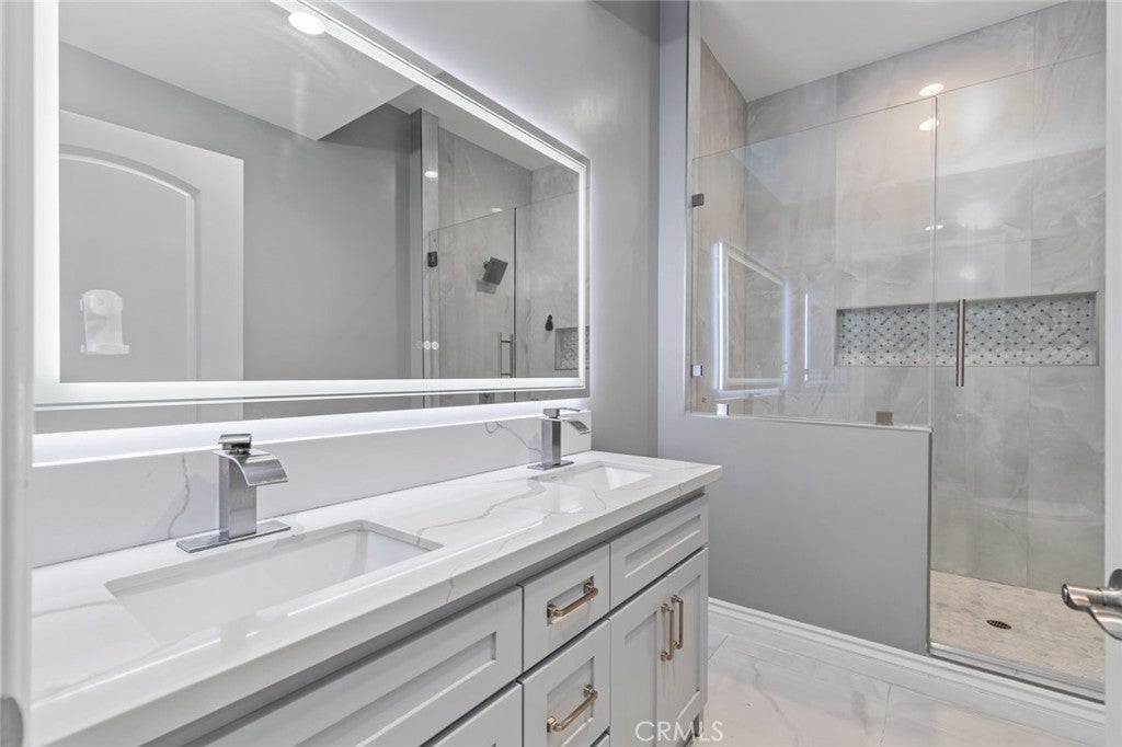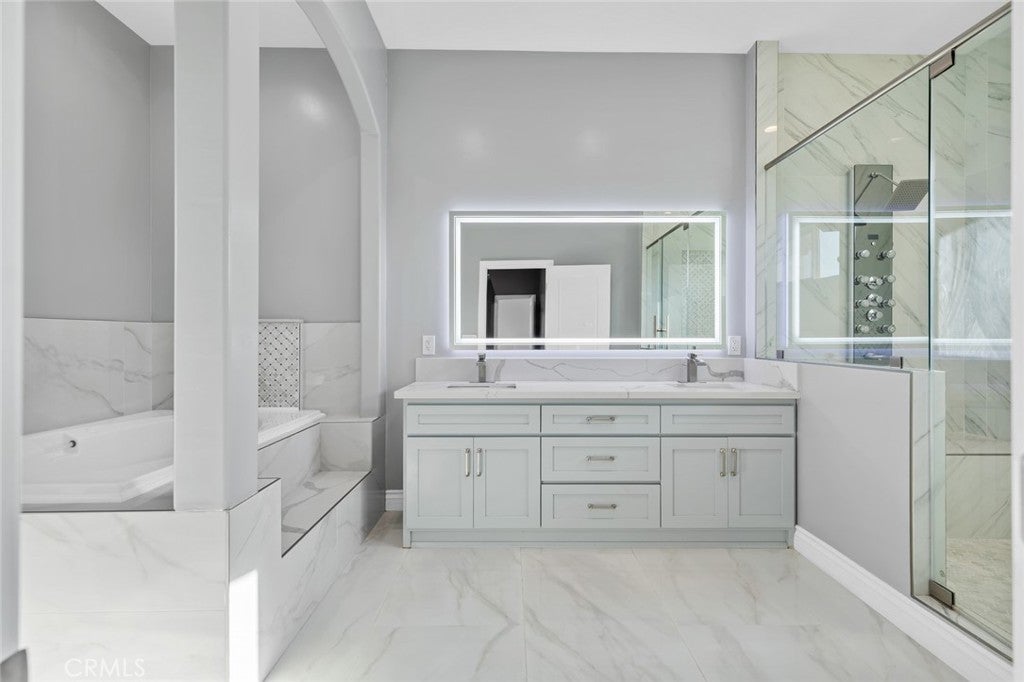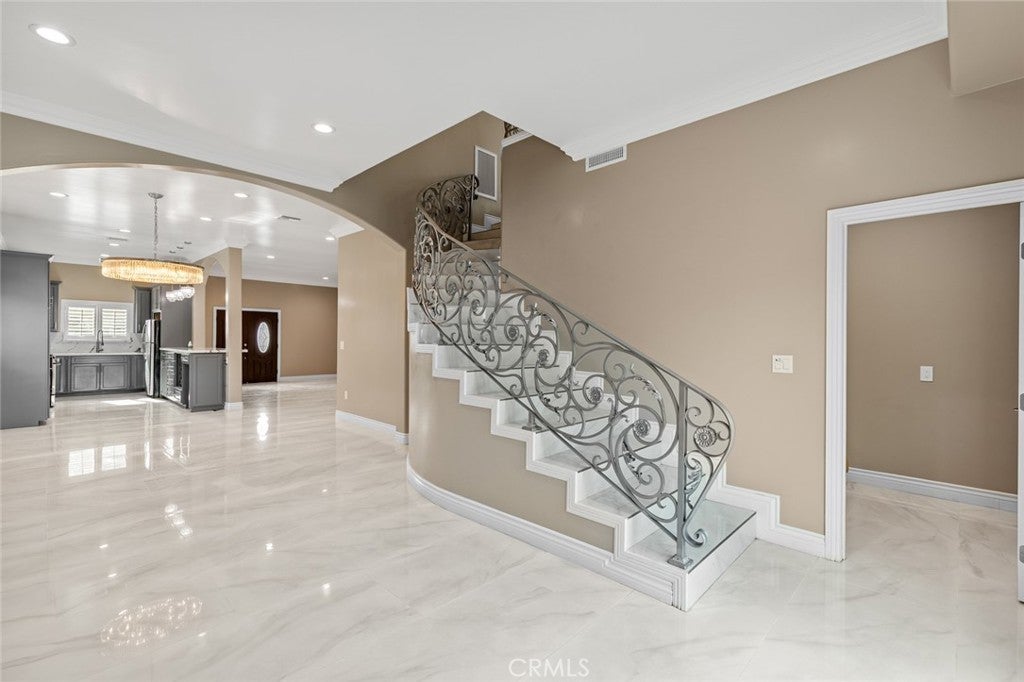 Motivated seller! This custom Two-Story Home beautifully remodeled residence, fully updated in 2022, is ideally situated between counties, offering convenient access to major shopping centers, schools, freeways, and just minutes from multiple airports. Step inside and be greeted by soaring high ceilings and an open-concept floor plan designed for both comfort and style, enhanced by large windows with custom shutters that fill the space with natural light. The main level boasts a bright and spacious living room, a beautiful kitchen with granite countertops, and an inviting dining area with chanticleer amble lighting perfect for entertaining. Also on the first floor, you’ll find a primary bedroom with a full bath, along with two additional bedrooms and another full bathroom. A custom-designed staircase leads to the second-floor Primary retreat bedroom, where you’re welcomed by an elegant sitting area with another beautiful chanticleer and a generous walk-in closet that flows into a spa-inspired spa & bathroom. Here, you’ll find luxurious features including massage faucets, creating the ultimate space for relaxation. With a total of 4 bedrooms and 3 full bathrooms, this home seamlessly blends modern elegance with functional design—ready to welcome its next owner.