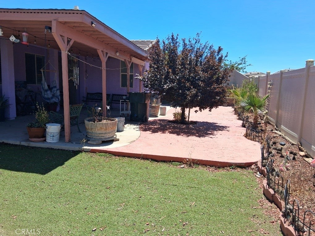 Highly Desired Move-In Ready Single-Story Home Step into this spacious single-story home featuring soaring ceilings and an inviting open layout. Enjoy a huge formal living room and a comfortable family room, perfect for gatherings. The customized bedroom wood closet offers ample space to organize your personal items, while the functional kitchen island makes cooking a breeze. Elegant plantation shutters run throughout the home, adding charm and style. Outside, the covered, stamped-concrete patio creates the ideal space for entertaining guests and enjoying your own private retreat, complete with mature fruit trees. Leased solar system with 12 panels at $91/month. Conveniently located near schools, parks, shopping centers, and freeway access — this home combines comfort, style, and convenience.