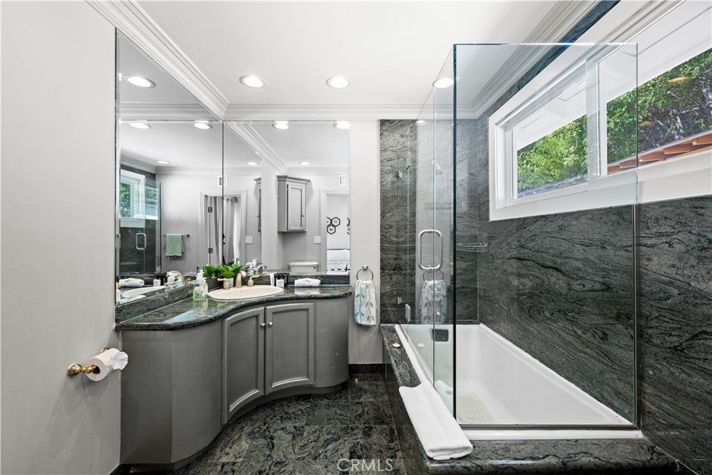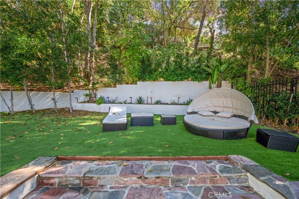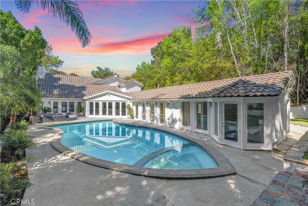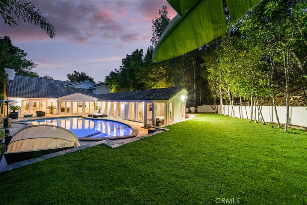 Welcome to 16221 Elisa Pl, an extraordinary furnished lease opportunity with luxury furniture that perfectly blends elegance, exclusivity, and comfort in one of Encino’s most coveted neighborhoods. Tucked away on a secluded half-acre, this 5-bedroom, 6-bathroom estate spans 4,483 sq. ft. of refined living. From the moment you arrive, a private, gated entrance opens to your own long private drive—shielding the property from view and leading to a custom motor court with a spacious driveway and ample guest parking. This dramatic sense of arrival ensures unmatched privacy and true estate living. Surrounded by lush greenery and breathtaking views, this tranquil retreat feels worlds away, yet remains just minutes from the vibrant heart of Encino. Inside, soaring ceilings, walls of windows, recessed lighting, and crown molding fill the home with light and sophistication. The furnished interiors, thoughtfully designed with luxury furniture, complement the chef’s gourmet kitchen—featuring premium appliances and two generous seating areas—ideal for everything from casual mornings to lavish dinner parties. The primary suite occupies the entire upper level, creating a private sanctuary with a versatile lounge/office space, oversized walk-in closet, spa-inspired bathroom, and an expansive private terrace with serene views. Designed for both relaxation and entertaining, the resort-style backyard showcases a sparkling pool, rejuvenating hot tub, and lush landscaping—all framed by absolute seclusion. Additional features include solar panel installation that significantly reduces the DWP power bill, a Ring security system, designer outdoor lighting, and a gated motor court. Located south of Ventura Boulevard, this prestigious address offers effortless access to upscale shopping, fine dining, top-rated schools, and places of worship—while preserving the rare privacy of a true hidden estate.