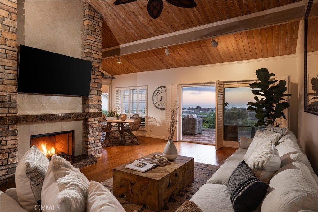 Welcome to Jasmine Creek, where panoramic sit-down ocean views meet modern luxury. Recently expanded and renovated, this coveted Plan 5 residence now features three en-suite bedrooms, including an oversized primary retreat. Vaulted ceilings and a reverse floorplan maximize the breathtaking vistas—Catalina and San Clemente Islands, Newport Harbor, Balboa and Newport Piers, and waves breaking along the coastline—all from the comfort of your living room. The open-concept design showcases hardwood and tile flooring, a custom stone fireplace, wet bar, and a chef’s kitchen with bespoke cabinetry and soft-close pull-outs. Entertain on the expansive balcony with retractable awnings, multiple gas hook-ups for grilling or heaters, and endless blue-water views. As evening falls, the view transforms into a vibrant show of lights, with the Pavilion and Ferris wheel at the Fun Zone glowing in shifting colors against the night sky. Additional features include energy-efficient central HVAC plus dual mini-splits, tankless hot water, commercial-grade landscape lighting, and a finished epoxy garage with built-ins and remote app-controlled access. Located in a private cul-de-sac less than a half mile from Corona del Mar Village, less than 1 mile to the beach, and just minutes from Fashion Island, this home blends convenience with prestige. Jasmine Creek offers 24-hour guard-gated security, six tennis courts, three pools with spas, a clubhouse, and over six acres of lush greenbelts. This is the rarest opportunity in Newport Beach—the lowest-priced true sit-down ocean view home on the market today. Come experience the lifestyle for yourself.