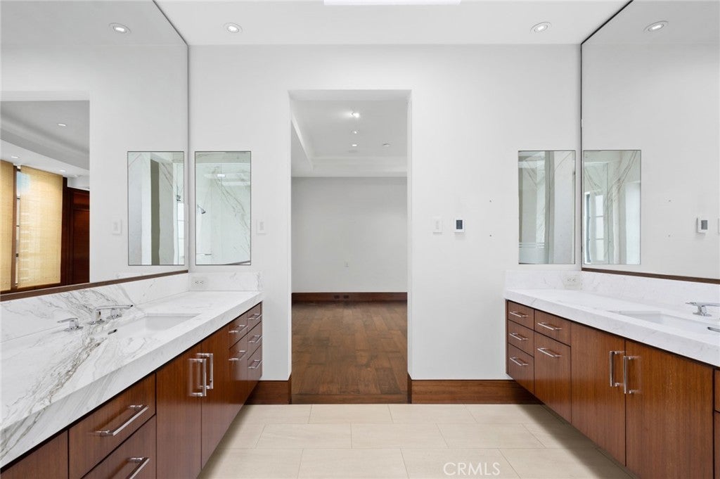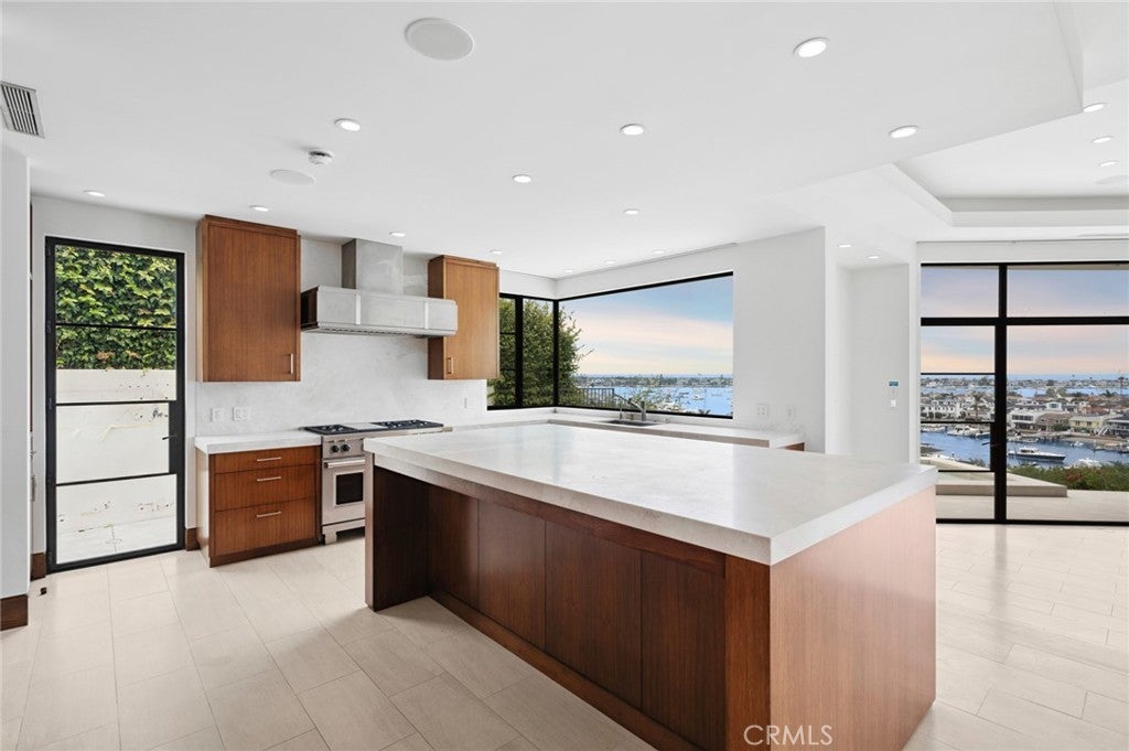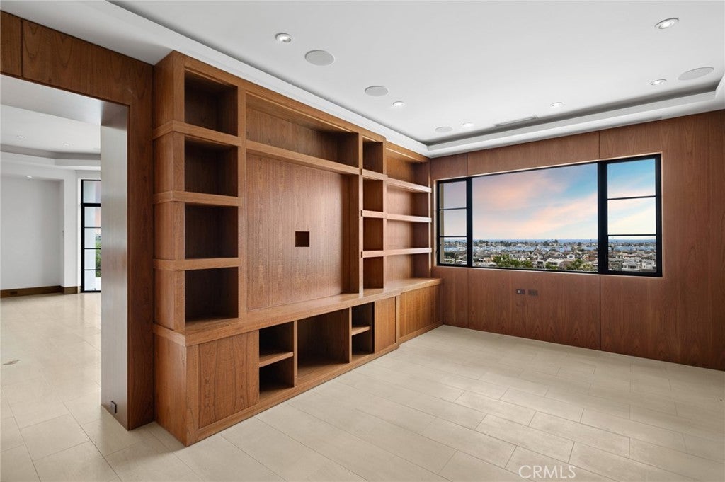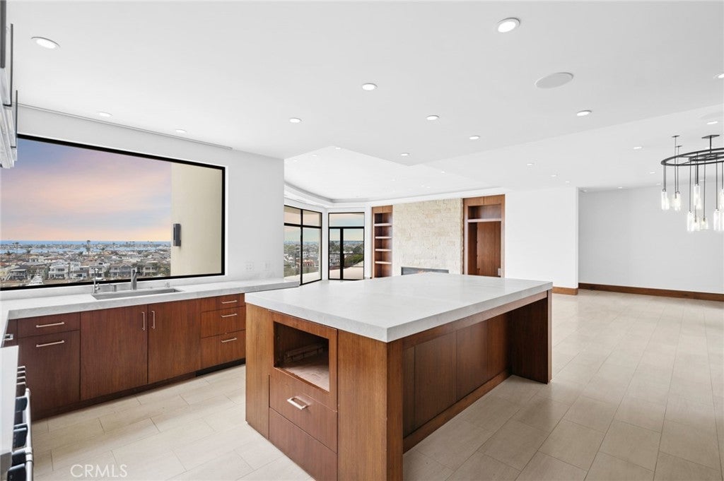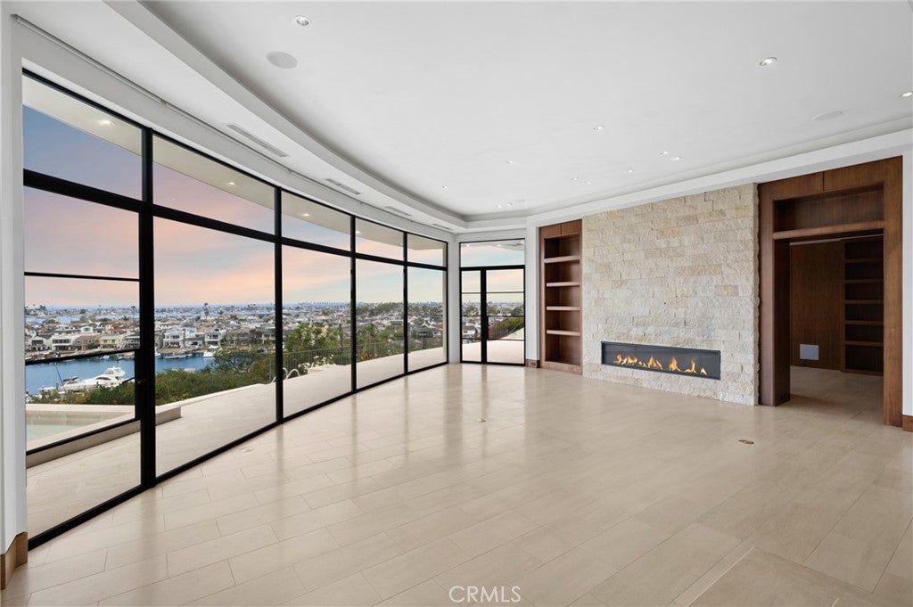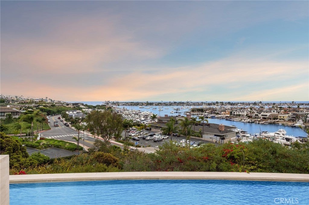 Located in one of the most coveted bluff-front locations in all of Newport Beach, this single-level contemporary estate captures unobstructed vistas stretching from the harbor entrance and Balboa Peninsula beaches to Catalina Island, Palos Verdes, and beyond. Expansive ocean horizons, vibrant sunsets, and sparkling city lights provide a captivating backdrop for everyday living. Thoughtfully designed with architectural precision, the residence showcases soaring ceilings, open living spaces, and the finest materials—cut limestone floors and walls, imported marbles, custom bronze doors and windows, and rich teak, walnut, and mahogany millwork throughout. The great room with its striking limestone fireplace and dining area opens seamlessly to the view terraces, covered alfresco lounge, lap pool, and spa, embodying effortless indoor-outdoor living. A gourmet kitchen is equipped with professional-grade appliances, marble countertops, a butler’s pantry, and walls of glass that draw the outdoors in. The private primary suite is a true retreat, appointed with curvilinear walnut-paneled walls, a spa-inspired marble bath, and a custom-fitted dressing room. Additional accommodations include a guest suite with ensuite bath, a den with bespoke built-ins, and a two-car garage. Set within the highly sought-after community of Irvine Terrace, this residence offers rare front-row living just moments from Newport Harbor, the Newport Beach Country Club, and world-class shopping, dining, and entertainment at Fashion Island.