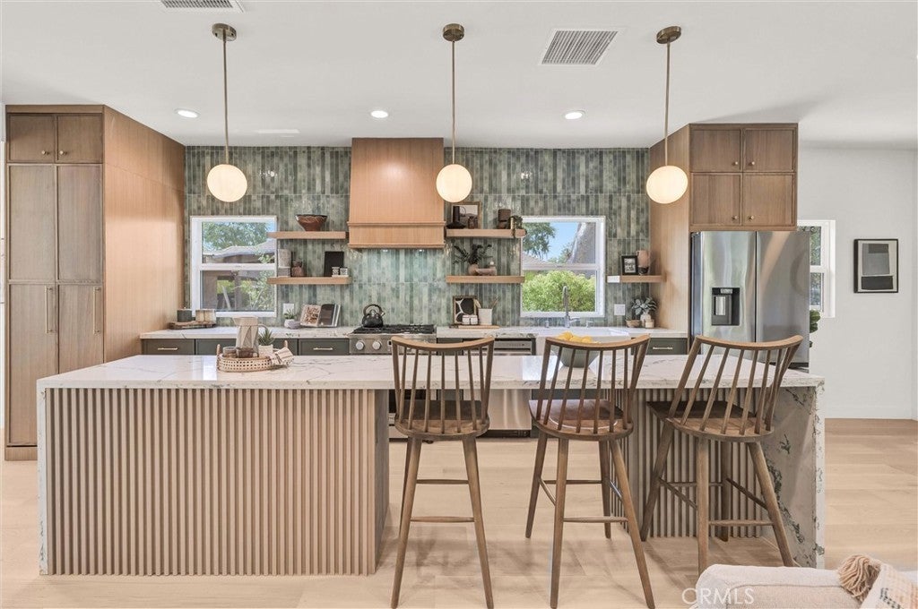 Located in the highly sought-after Madison Heights neighborhood, this beautifully remodeled 1,431 sq. ft. home offers an open floor plan that blends sophisticated elegance with modern convenience. With meticulous attention to detail, the residence features 3 cozy bedrooms and 3 bathrooms, each showcasing contemporary finishes. Upon entering, you’re welcomed by a spacious living room that flows effortlessly into the mid-century-inspired kitchen, which features with two-toned cabinetry, a large central island, and sleek quartz countertops. The open-concept design extends into the living and dining areas, providing a seamless space ideal for both entertaining and daily living. This home offers exceptional versatility with two master suites, while the third bedroom offers the potential to serve as a home office. Throughout the home, stunning engineered wood floors add sophistication and warmth to every room. Step outside into the backyard, where you'll find ample space for outdoor activities and an convenient side entrance to one of the ensuite. The detached 2-car garage with a bonus storage room in the back further enhances this home's functionality. Centrally located just minutes from top restaurants, theaters, parks, and entertainment options, this home is in close proximity to renowned schools including Caltech, Polytechnic School, Westridge School, Sequoyah School, and more. Don’t miss the opportunity to own this exquisite home in one of Pasadena’s most desirable neighborhoods.