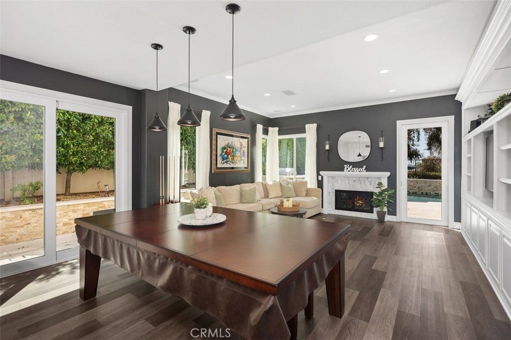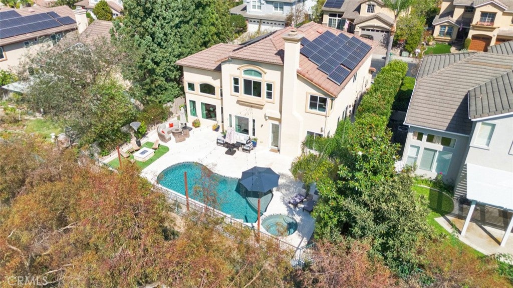 Beautiful Las Flores Home with Endless Upgrades, an Entertainer's Backyard and Amazing Sunset Views! This 5 bedroom and 3 bathroom home with a 3-car garage and a resort-style pool/spa boasts cathedral ceilings, wood laminate flooring, owned and paid solar, house fan, Anlin windows, electric blinds, remodeled kitchen, ceiling fans, recessed lighting, tankless water heater, water softener/carbon filter, repiped and more! The remodeled kitchen opens to the family room and includes a large island, stainless steel appliances, stone countertops, wood cabinets, water filter with reverse osmosis and plenty of storage. The family room includes a cozy fireplace, beautiful built-ins and opens to the huge backyard. The living room and dining room are very spacious with cathedral ceilings, custom chandelier and many windows for natural light. The downstairs bedroom is currently being used as an office with amazing wood cabinet built-ins. The beautiful staircase with wood railings leads you up to the secondary bedrooms and primary bedroom. The primary bedroom is very spacious with double doors, tall ceilings, large closets and a primary bathroom with dual sinks, large bathtub and walk-in shower. The 3-car garage includes epoxy flooring, two paid Telsa batteries, two 220 volt high efficiency EV chargers and air conditioning perfect for a gym. The entertainer's backyard is a dream with a granite BBQ island with seating, recently remodeled resort-style pool and spa with added additional lighting and a tanning shelf with in-pool umbrella, a relaxing fire pit with gas line, wired and installed speakers by Sonos and unlimited sunset views! This home also includes amazing community amenities: pool, tennis court, sport court, picnic areas and more! Close to schools, restaurants, parks, fwys and toll roads. This beautiful home has it all! (click onto the 360 icon under the map to see the amazing drone video)
