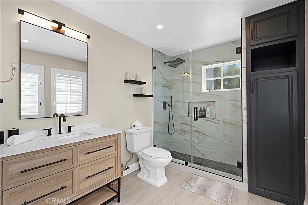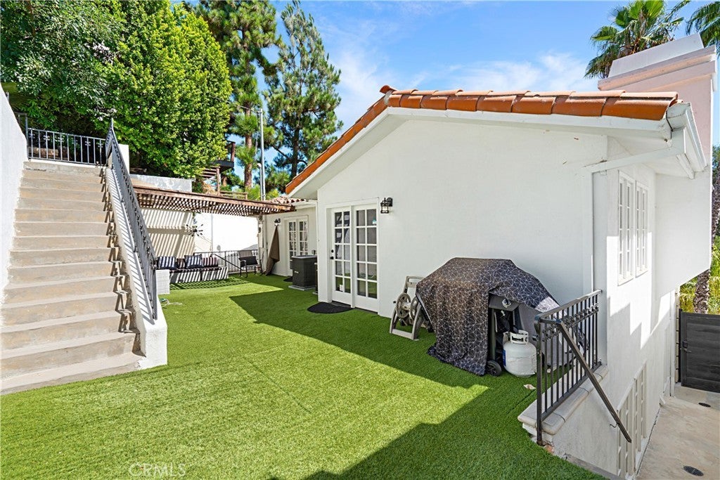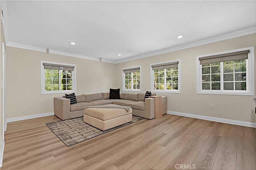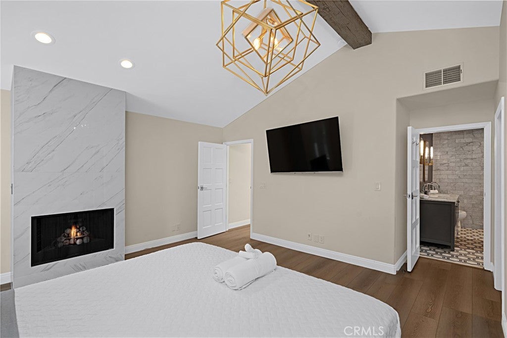This modern hillside residence in Woodland Hills offers 4 expansive bedrooms, each designed as a private suite with its own bathroom and closet. Three of the suites extend to balconies, with two providing direct access to the serene backyard, seamlessly connecting indoor and outdoor living. Spanning 3,154 sq. ft. across multiple levels, the home showcases soaring ceilings, abundant natural light, and a refined contemporary design. The property sits across from the Woodland Hills Country Club, surrounded by natural greenery and open views. A romantic multi-level yard, accessible from two of the suites, creates a tranquil setting for both relaxation and entertaining. Recently upgraded prior to its late 2023 purchase, the home reflects a sleek modern style with quality finishes throughout. Located within the highly regarded Los Angeles Unified School District, nearby schools include Serrania Avenue Charter for Enriched Studies (K–5), Woodland Hills Charter Academy (6–8), and William Howard Taft Charter High School (9–12).